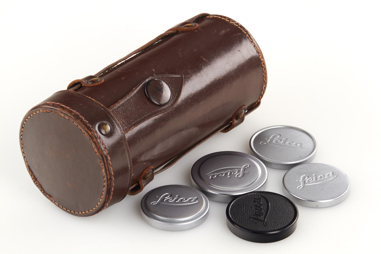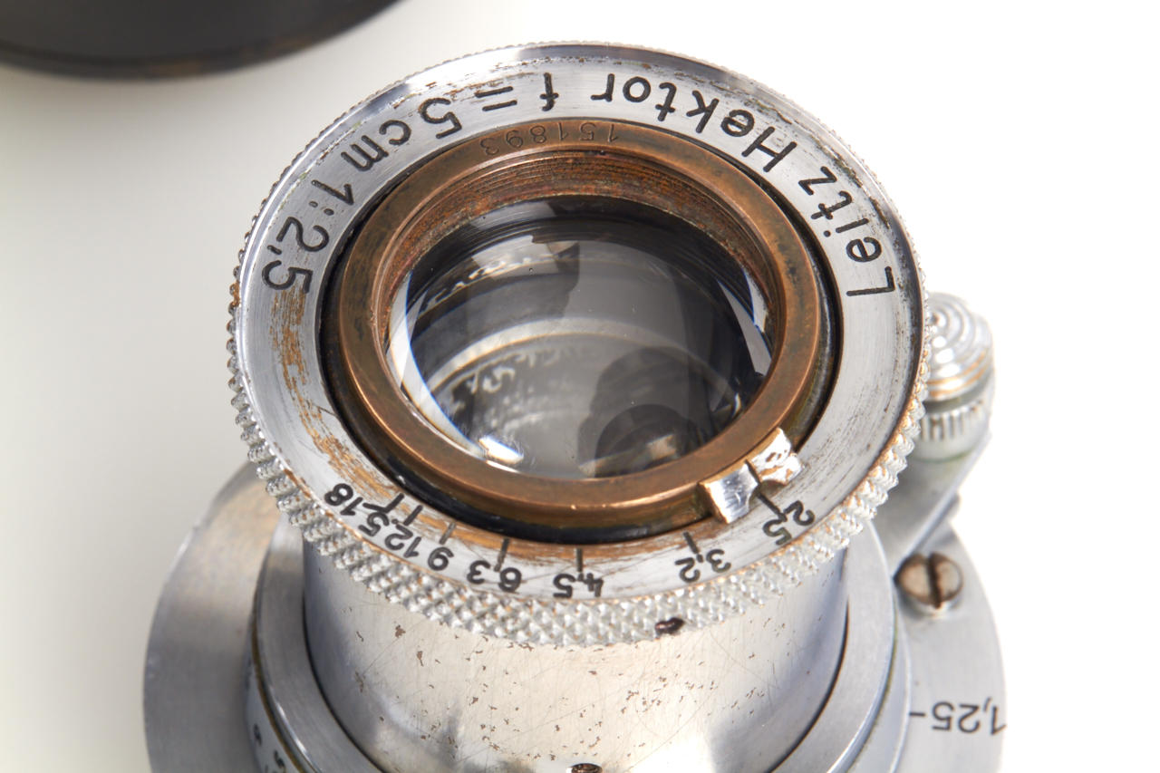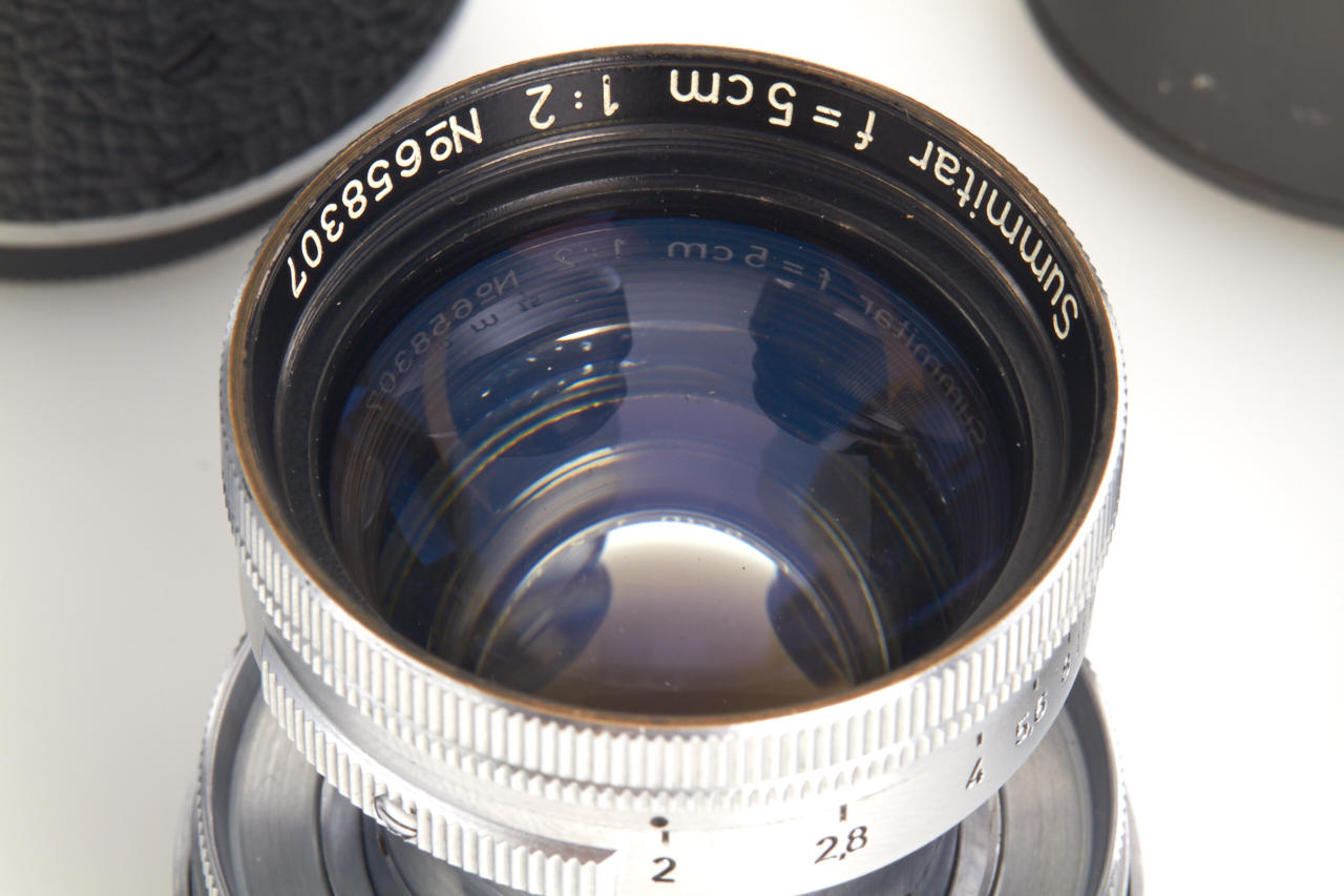 lot of 6 Leica lenses: uncommon chrome Hektor 2,5/5cm no.151893 (cleaning marks and minimal separation), near mint Summitar 2/5cm no.658307, rare uncoupled, black/nickel Elmar 4.5/13.5cm (unnumbered, optics coated after the war), together with black/chrome Hektor 4.5/13.5cm no.699886, chrome Hektor 4.5/13.5cm no.1407052 and chrome Elmar 4/9cm no.963519
