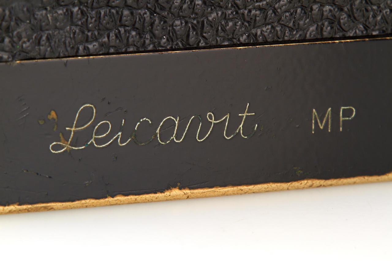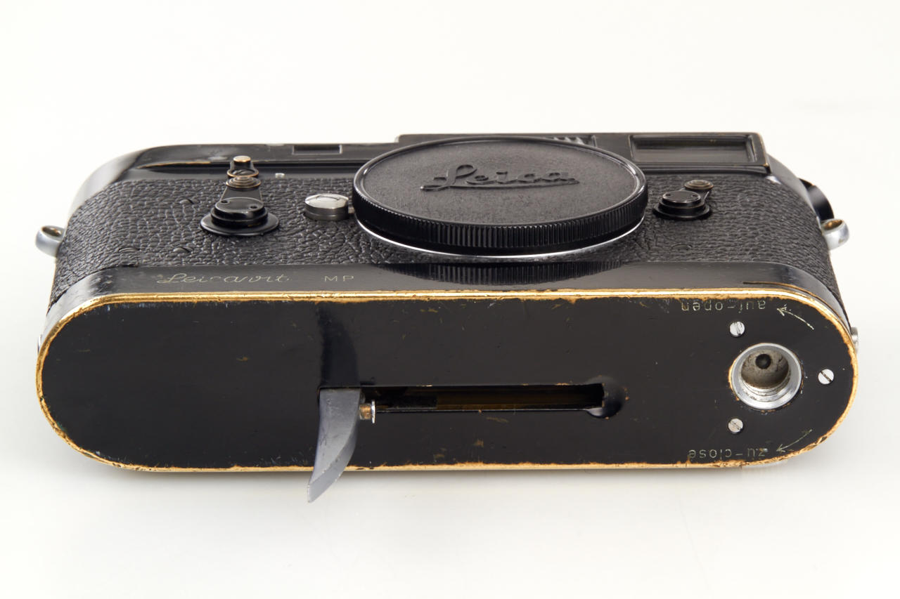 black paint body with nice patina in perfect working order, with black paint Leicavit MP in matching condition adapted with quick-loading system, front cap and standard black paint base plate - a very attractive set owned and used by famous German press photographer and 'World Press winner' Ulrich Mack