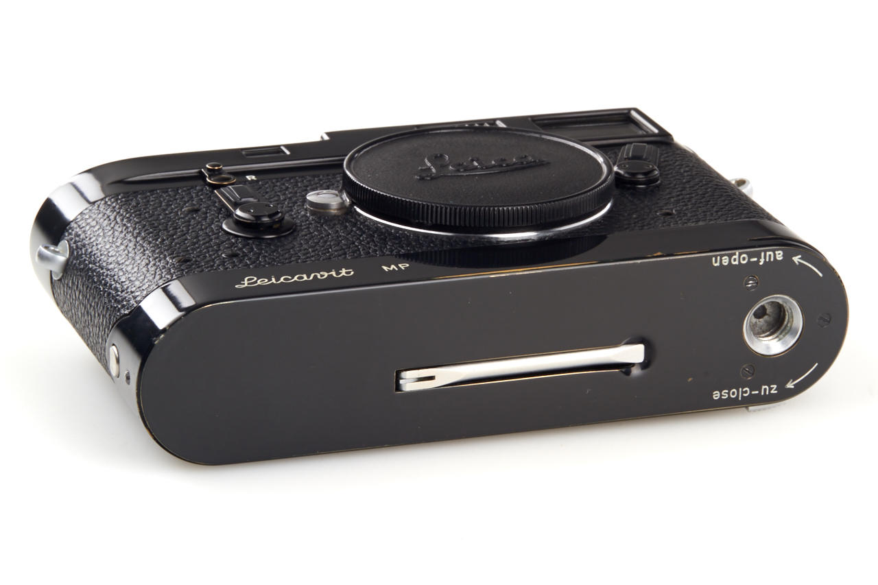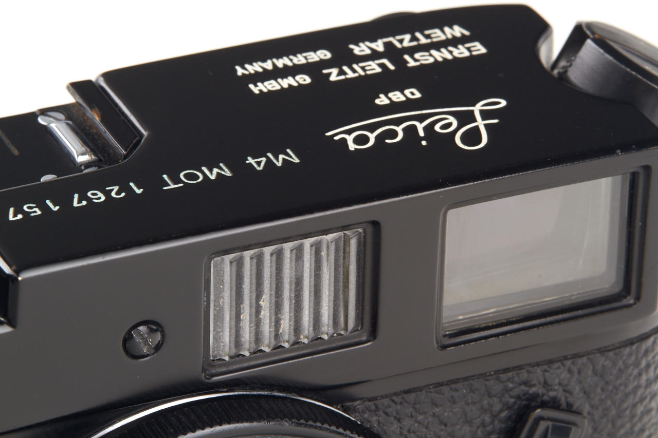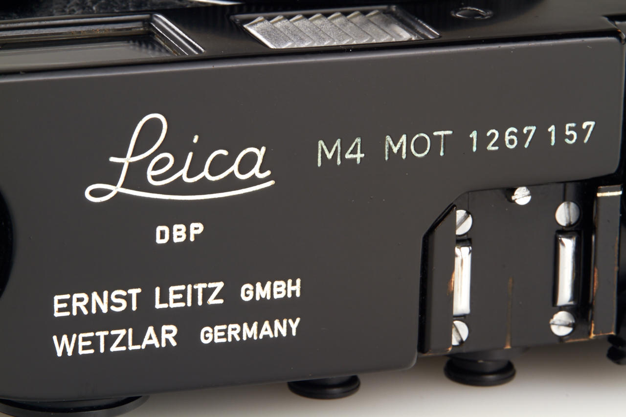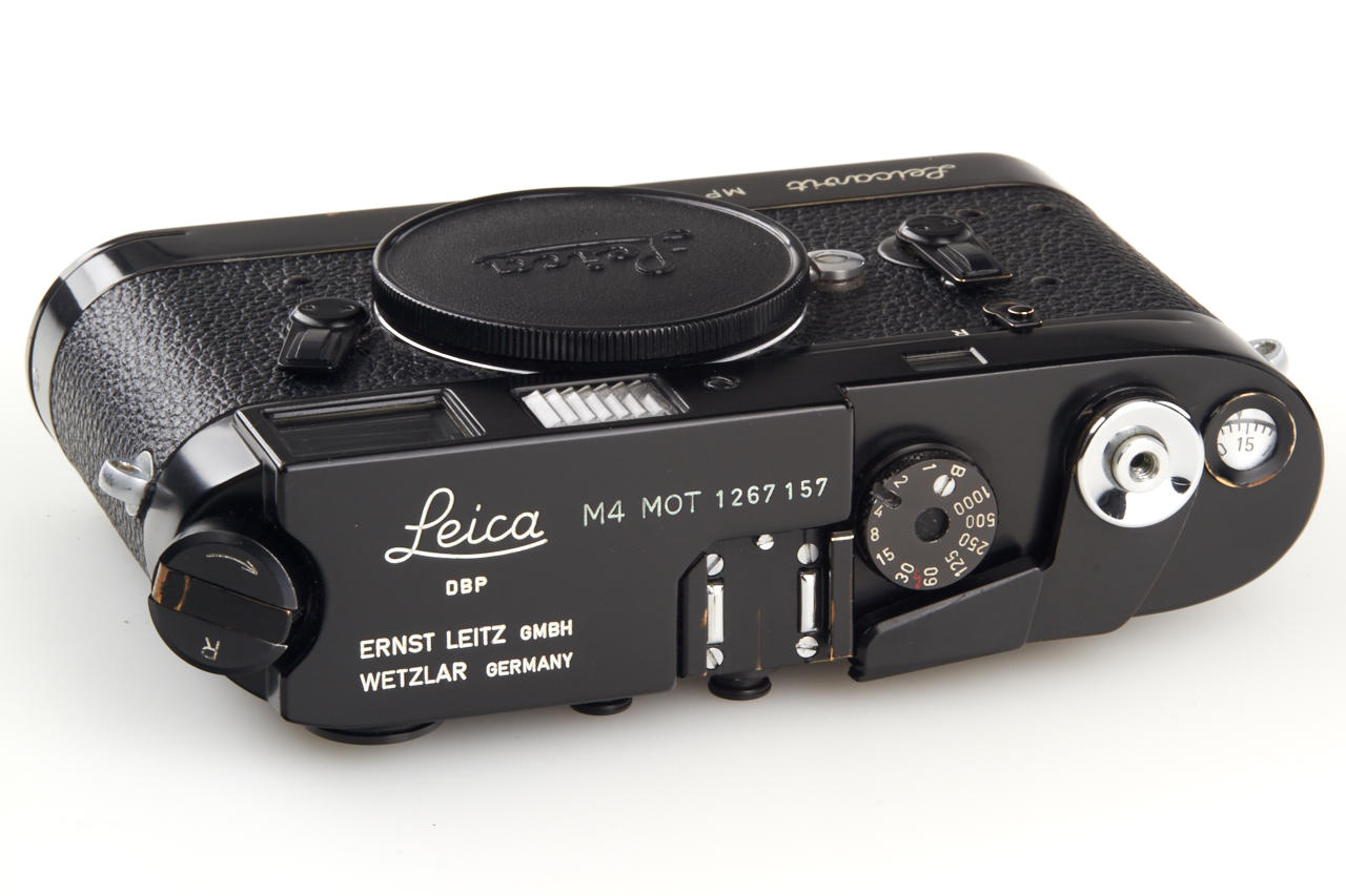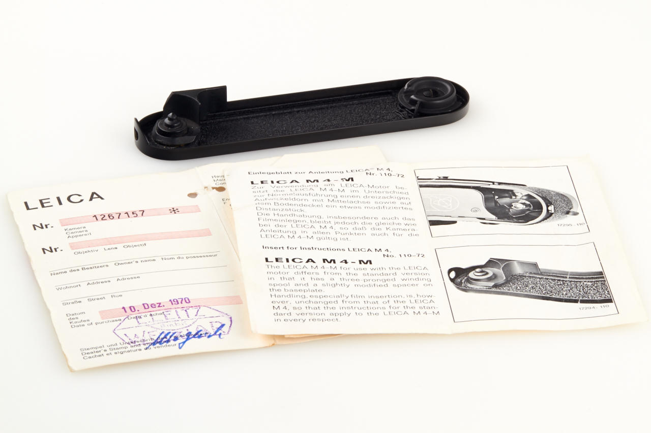 beautiful camera in almost mint and perfect working condition, Leica Service Card for the camera dated December 10th, 1970 and special instructions for Leica M4-M - with black paint Leicavit MP in A/B condition and the original black paint base plate