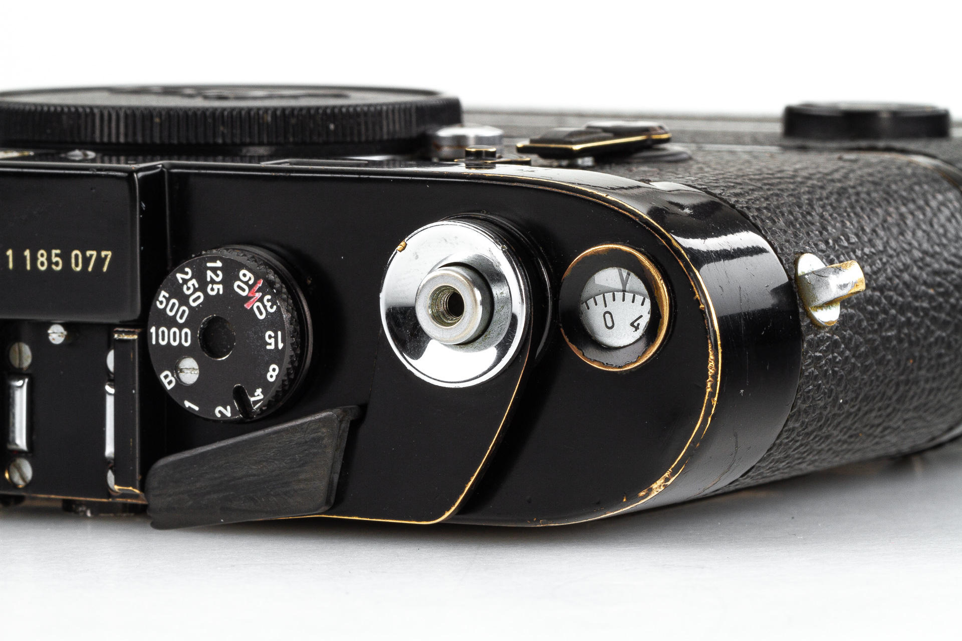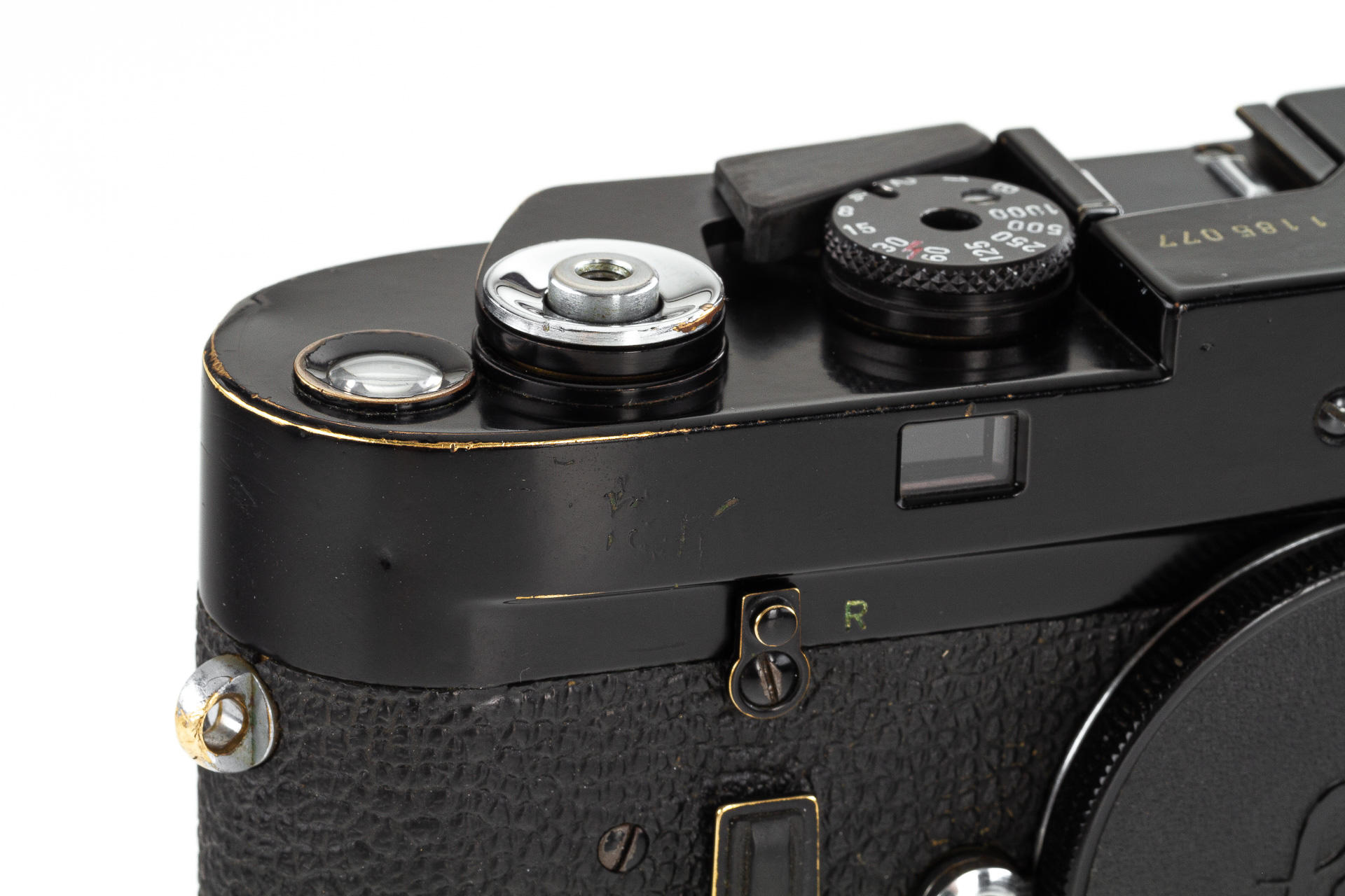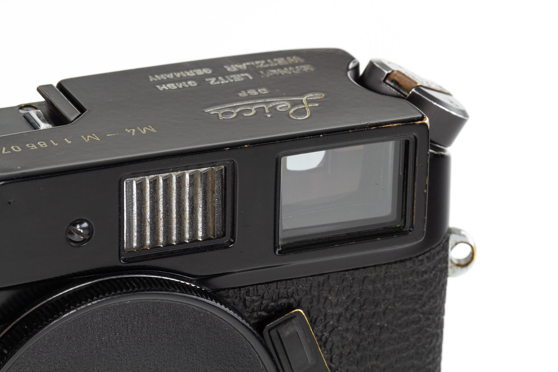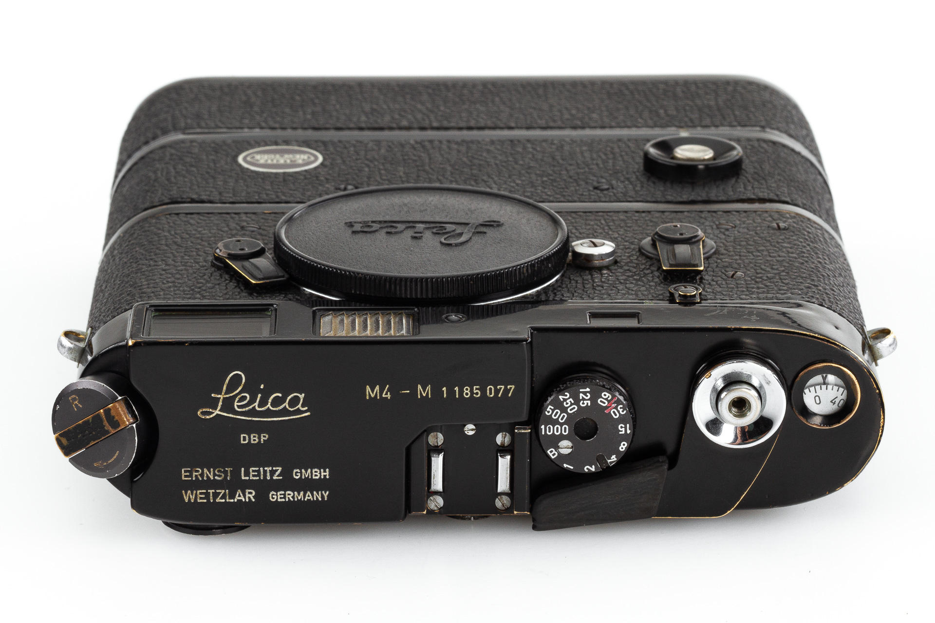 original M4 MOT black paint from the first batch of 150 cameras in good working condition, with matching E.Leitz New York Motor Drive 14000 no.2883 with "AA" battery pack, regular base plate