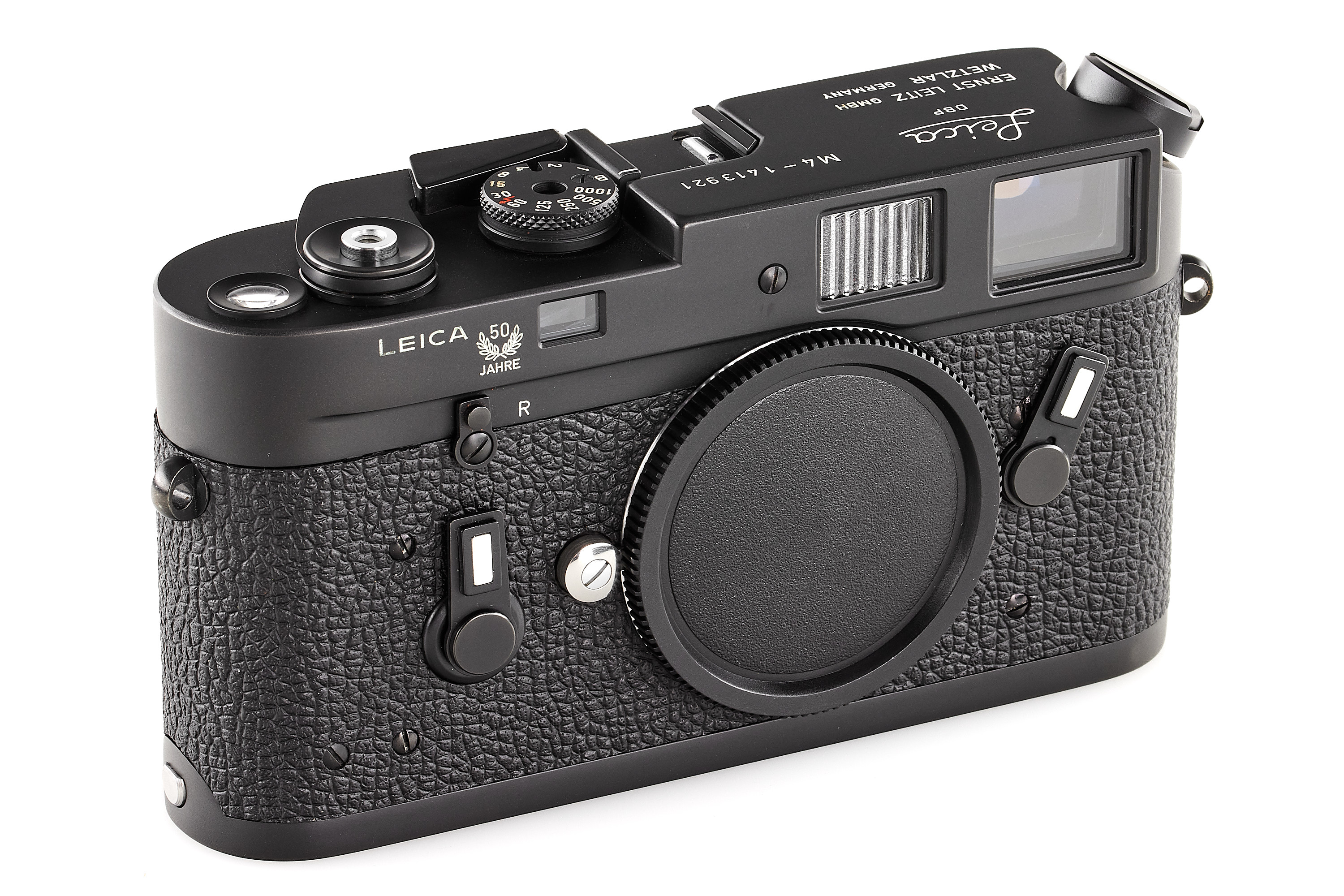 Special edition black Leica M4 issued to commemorate 50 years of Leica, in near mint condition and good working order, with body cap, body no.1413921, with matching maker's box.