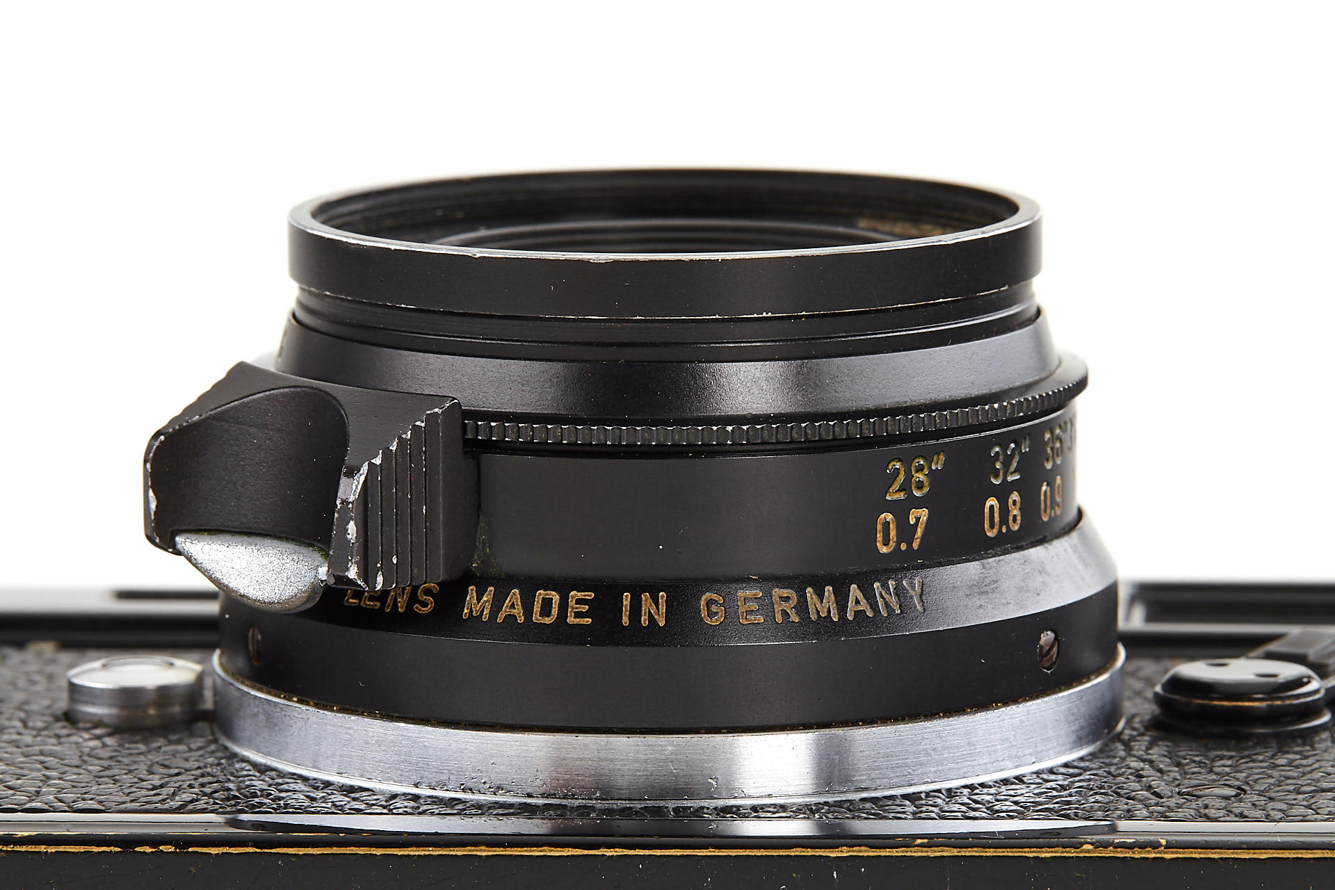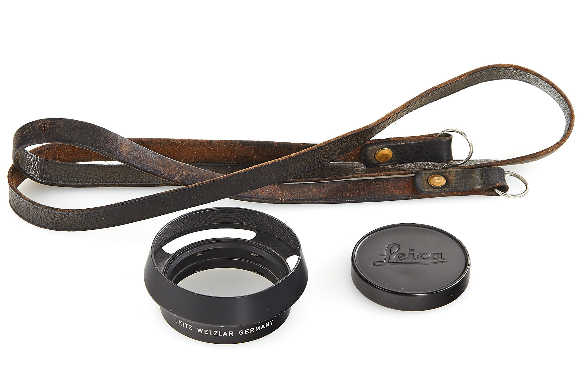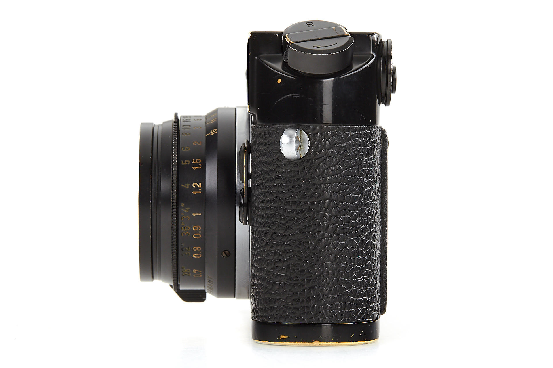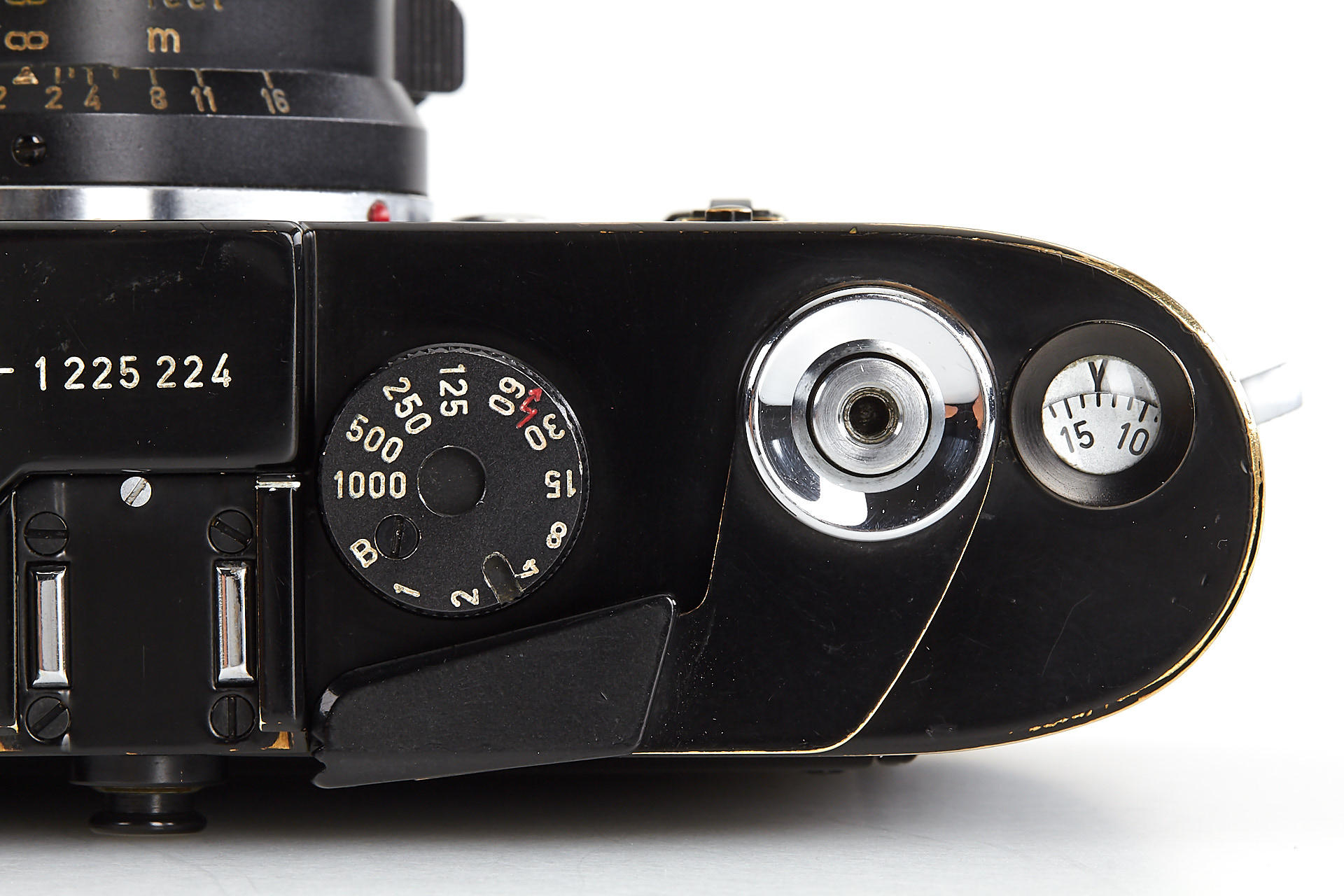 original black paint M4 in good condition (slight patina on the edges) and in working order, with rare black chrome 8-element Summicron 2/35mm no.2275755 (very good optics, with only a few hairline marks, 12585H hood, front cap), maker's box with matching camera number, M4 instructions, warranty card with matching lens and camera numbers