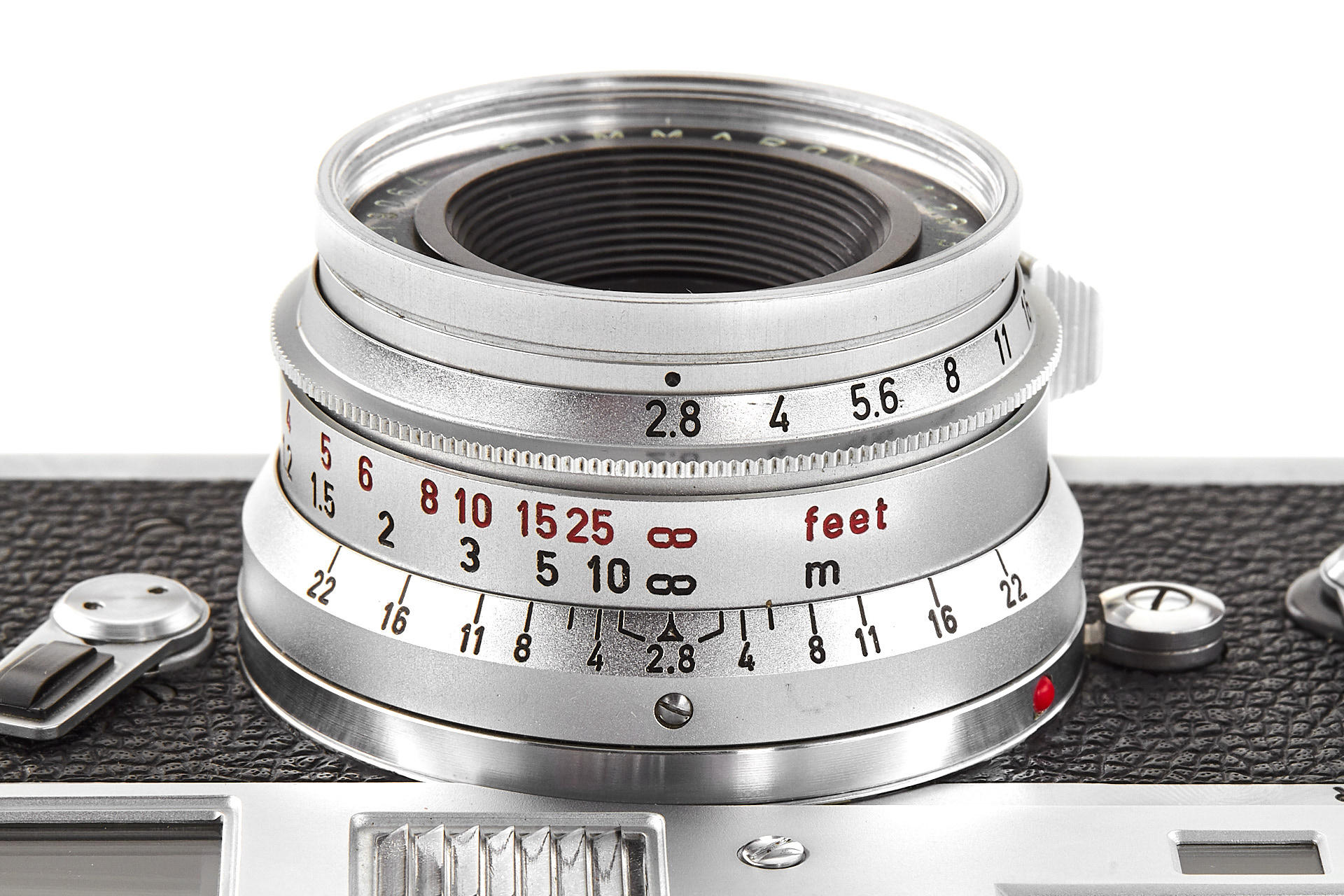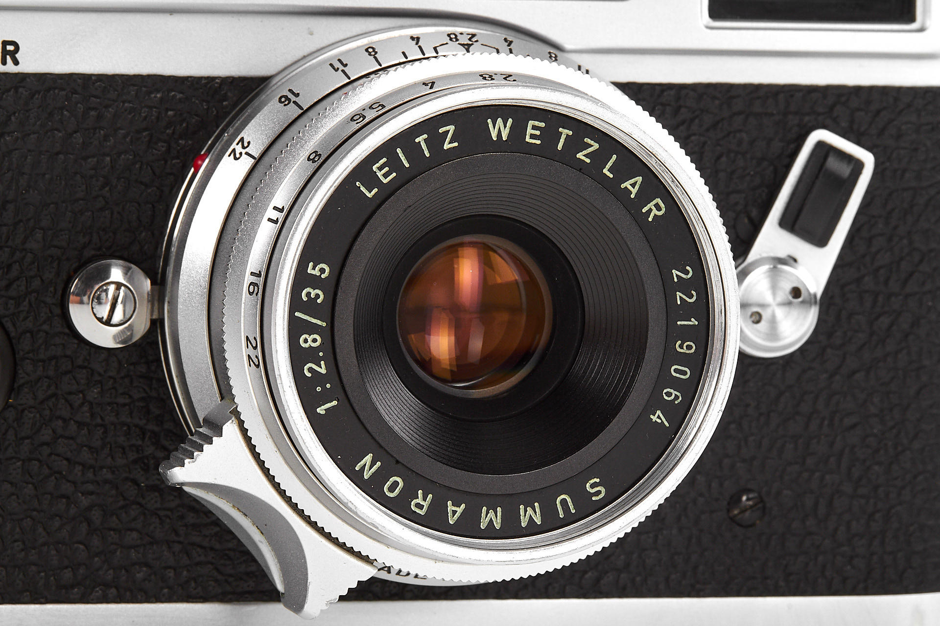 near mint body in good working order, with Summaron 2.8/35mm no.2219064 (near mint condition with clean optics, UV filter, front cap), black leather case