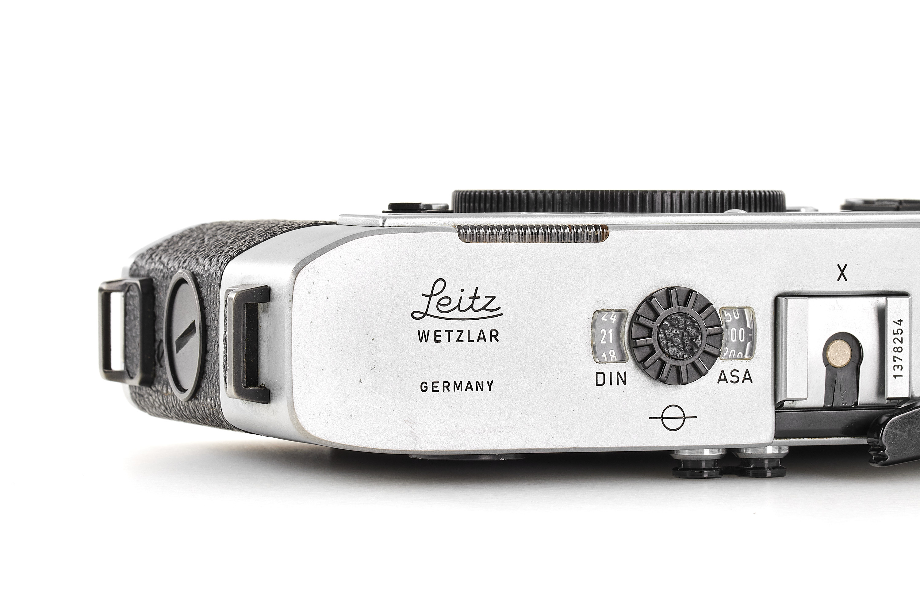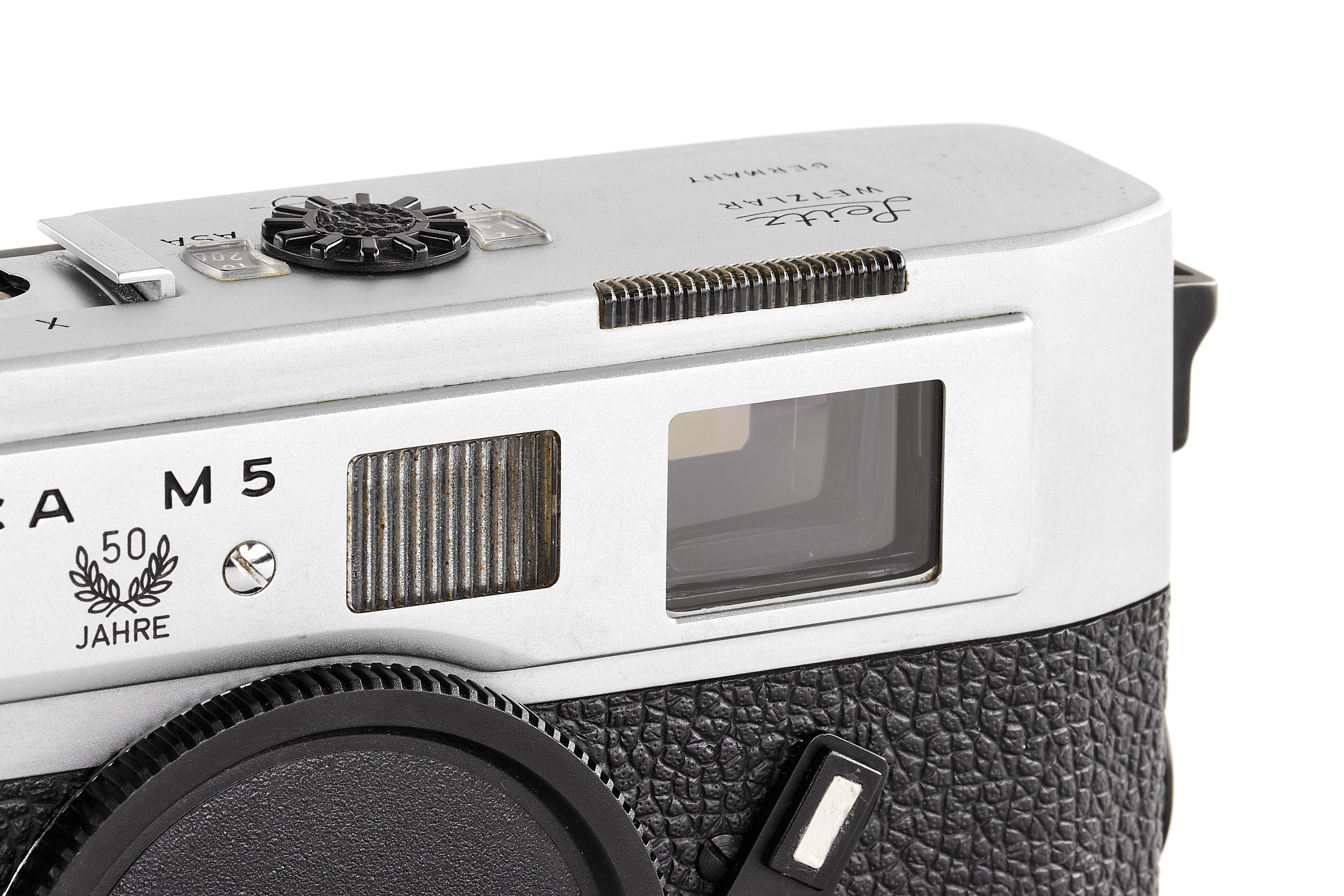 Unusual chrome version of the rare special edition celebrating the 50th Anniversary of the first production Leica, only 1750 units produced in Wetzlar, with special number '054-A' and '50 Jahre' engravings, serial number no.1378254, 3 strap lugs, in near-mint condition with body cap.