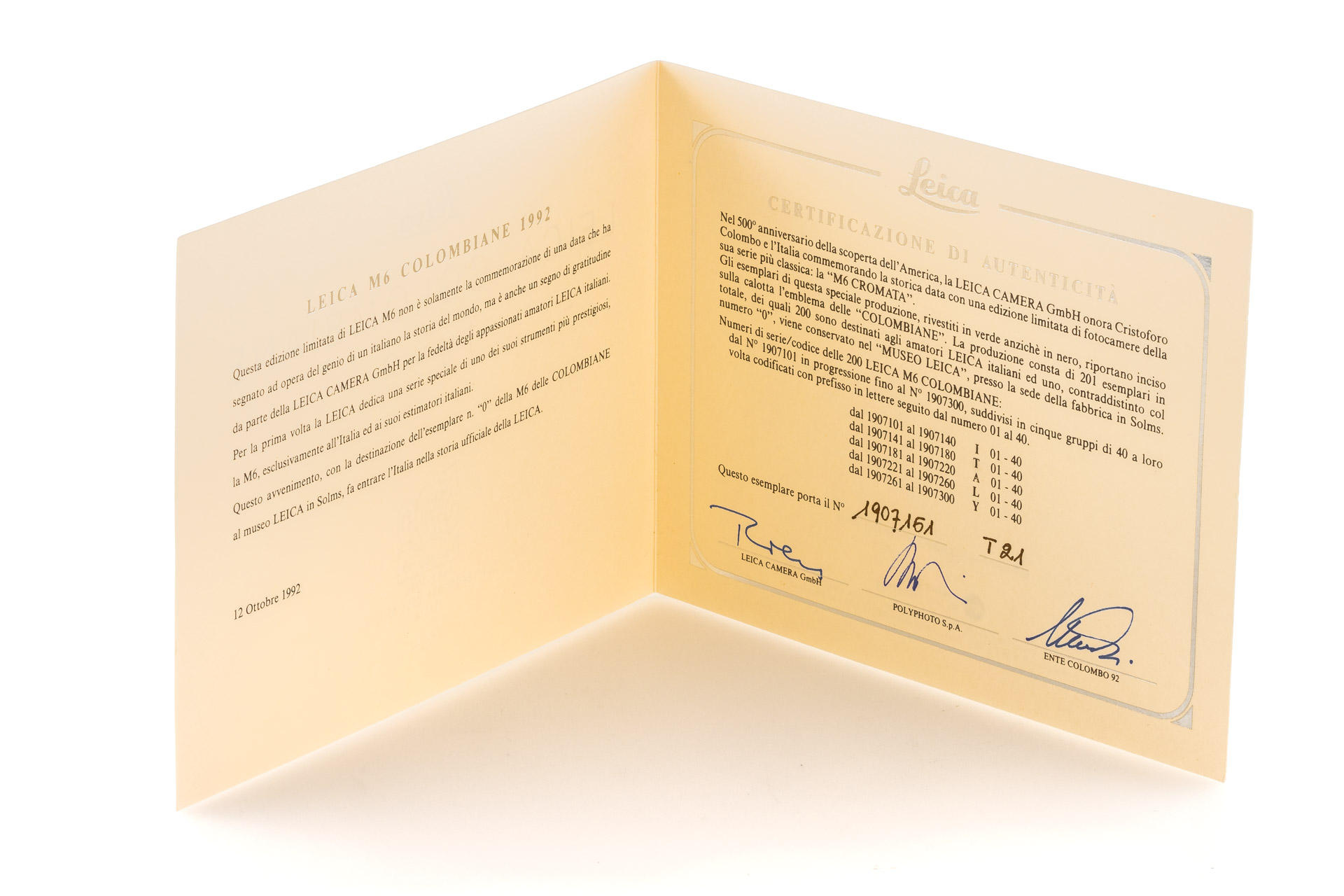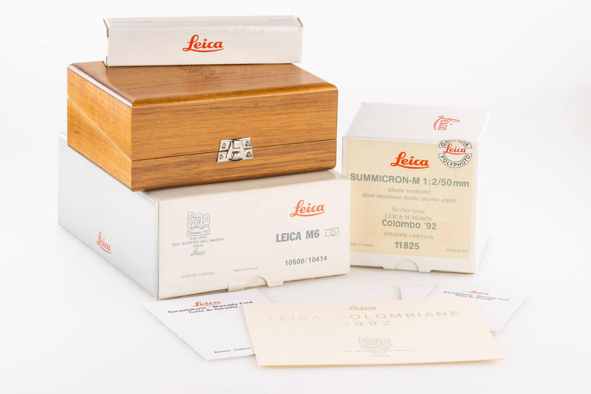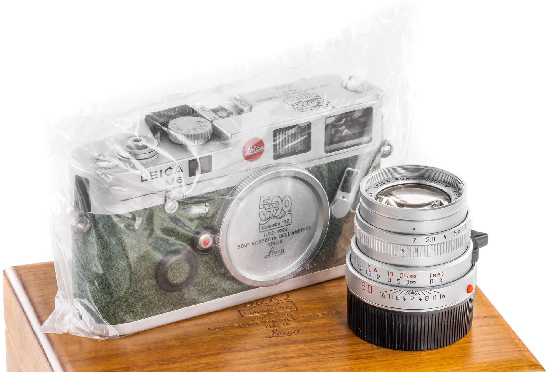 special edition limited to 200 cameras only, made to celebrate the 500th discovery anniversary of America by Christopher Columbus, body no.1907161, with matching 2/50mm Summicron 11825 no.3623661, both with special number T 21, in unused condition, camera still in sealed plastic bag, complete with all papers, accessories and boxes