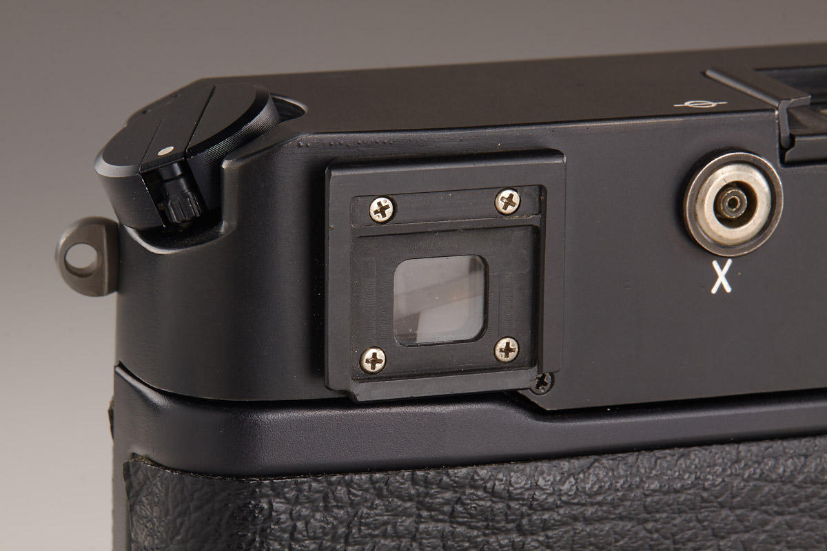 Rare Leica M6 “electronic“ prototype with typical serial number 1234567 in nice condition with functional shutter (/100), complete with prototype motordrive no. 00008 and extremely rare Leica prototype lens Elmarit - M 28mm f/2.8 with built-in sunshade, of which only two examples are known to exist. Lens with clean optics and prototype number 5001632. LITERATURE Günter Osterloh, 50 Jahre Leica M, Königswinter 2004, p. 66-69; Lars Netopil, VIDOM Nr. 91 (Leica Historica e.V., 2006), p. 6-11. By end of the 1970s it was one of the most important challenges for the Leitz designers, to integrate a TTL metering into the Leica M camera. Leitz designer Peter Loseries had the idea of using the Leica R4 with its Seiko shutter as a basis. Mirror box and pentaprism were taken off and instead a rangefinder was set on. The result should be a Leica M with TTL metering, optinal automatic exposure and a large camera rear door opening horizontally. The R4 databack, as well as winder and drive should be compatible. What sounds so simple, in fact was almost an entirely new design. For various reasons this camera never went into commercial production. Only a few complete sample units do exist, one of which is offered here. Gegen Ende der 1970er Jahe war es die größte Herausforderung der Leitz Entwickler, eine TTL Belichtungsmessung in die Leica M zu integrieren. Leitz Konstrukteur Peter Loseries kam auf die Idee, das Hauptchassis der Leica R4 mit ihrem Seiko-Verschluss als Basis für eine neue Leica M Kamera zu verwenden. Spiegelkasten und Pentaprisma wurden abgetrennt und ein Entfernungsmesser aufgesetzt. Das Ergebnis sollte eine M-Leica mit TTL Belichtungsmessung, zuschaltbarem Zeitautomat und großer horizontal aufklappbarer Rückwand werden. Datenrückwand sowie Winder und Drive der R4 sollten verwendet werden können. Was so simpel klingt, entsprach tatsächlich einer fast vollständigen Neukonstruktion. Aus verschiedenen Gründen wurde diese Kamera nie in Serie gebaut. Es existieren nur wenige komplette Versuchsmuster, von denen eines hier angeboten wird.