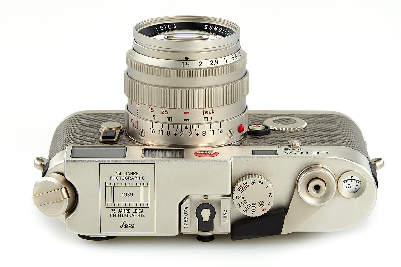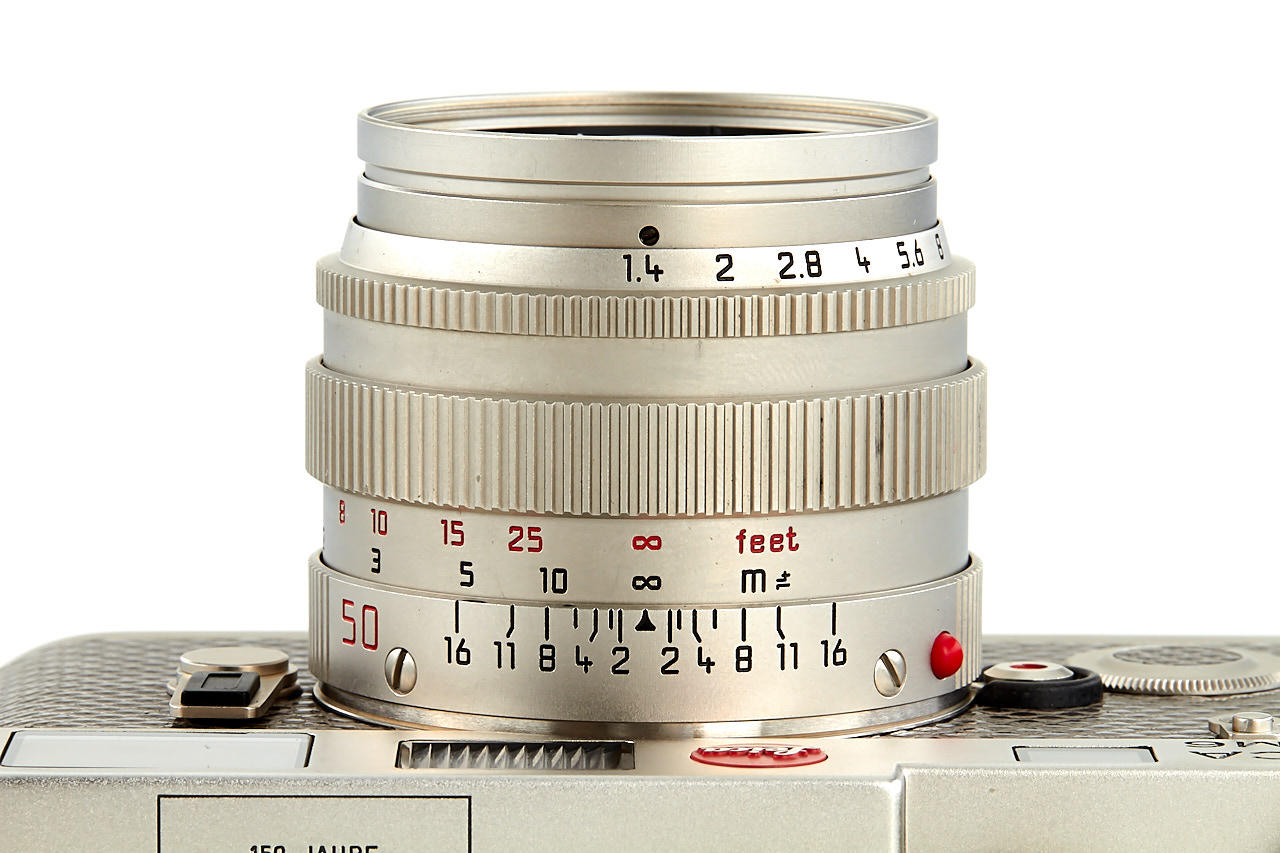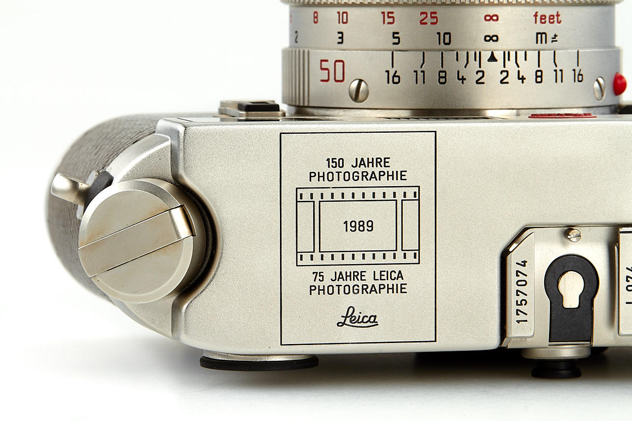 special edition issued for 150 years of photography and 75 years of Leica photography, body number 1757074, platinum Summilux-M 1.4/50mm no.3481994, in near mint condition, with wooden presentation box, all accessories, papers, maker's box