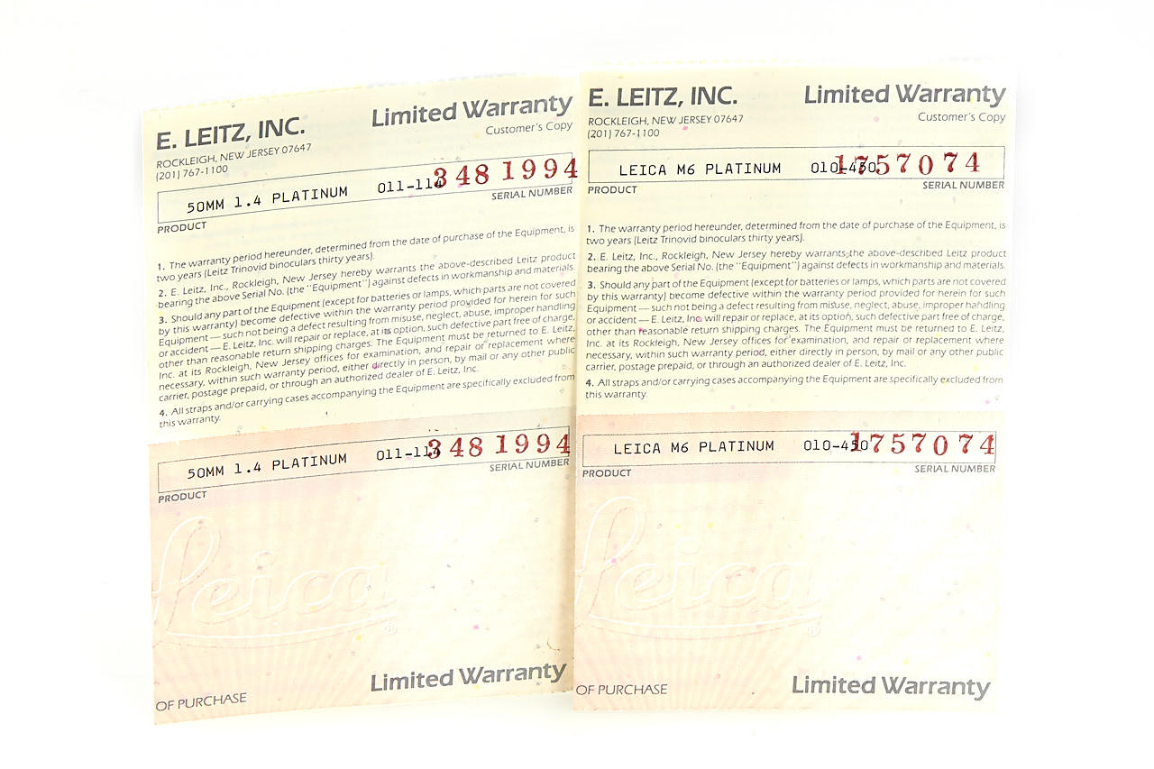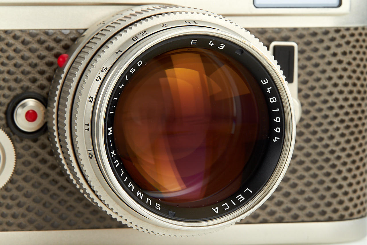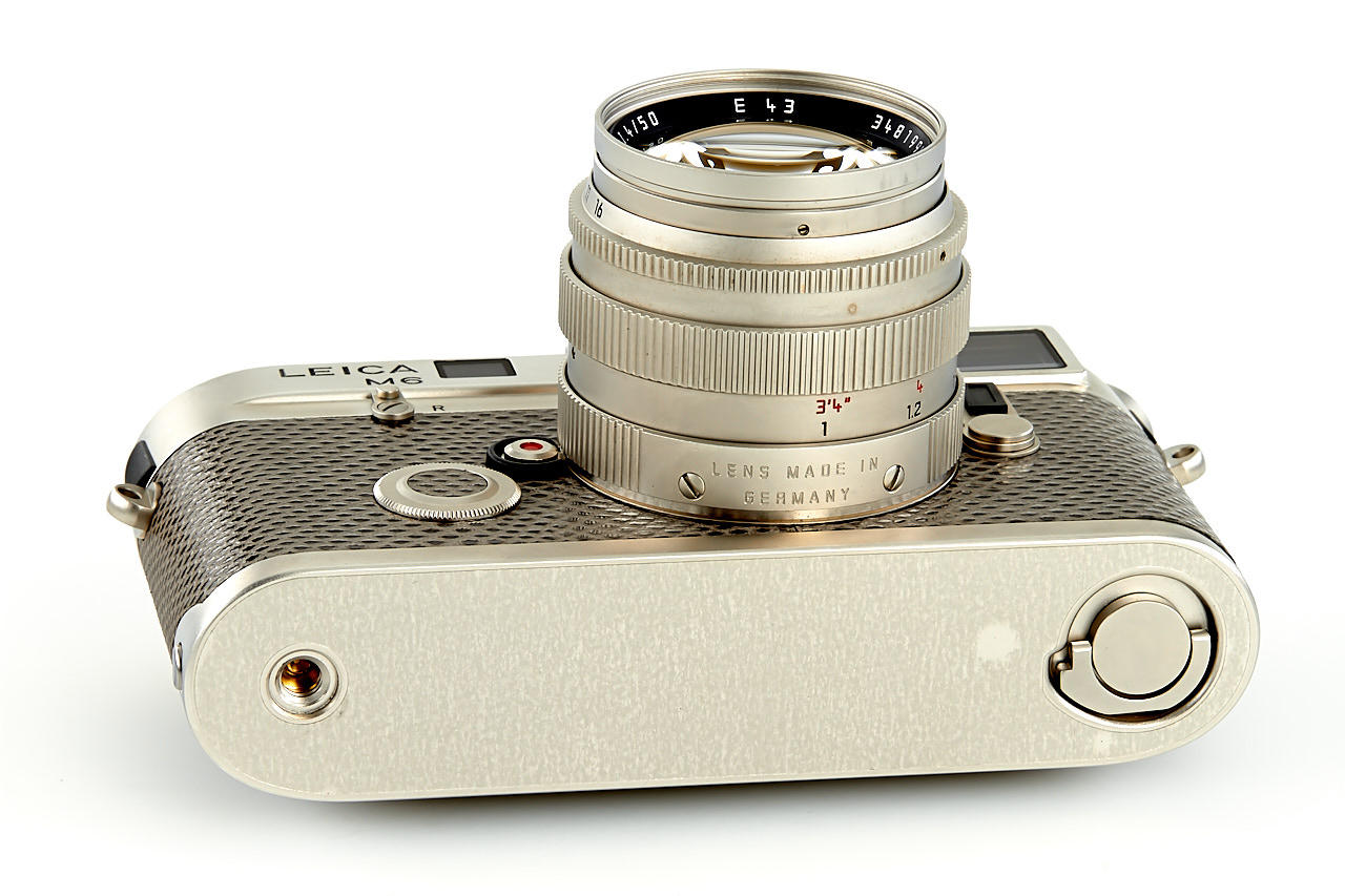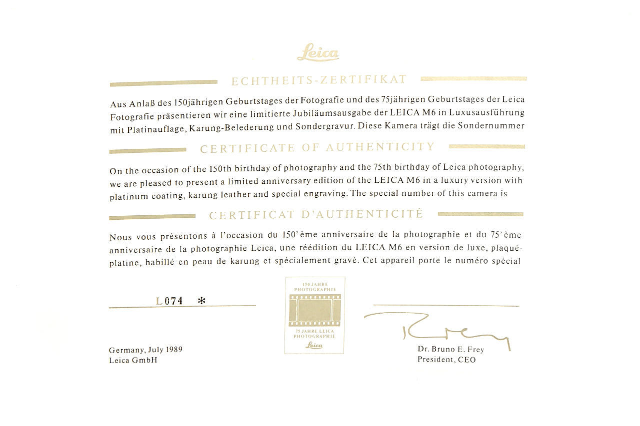 special edition issued for 150 years of photography and 75 years of Leica photography, body number 1757074, platinum Summilux-M 1.4/50mm no.3481994, in near mint condition, with wooden presentation box, all accessories, papers, maker's box