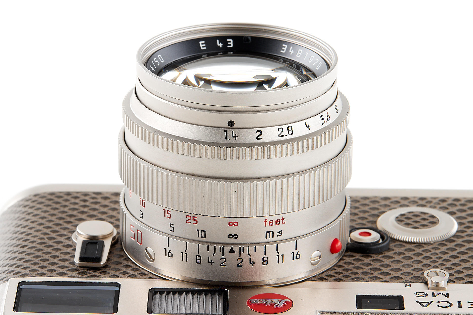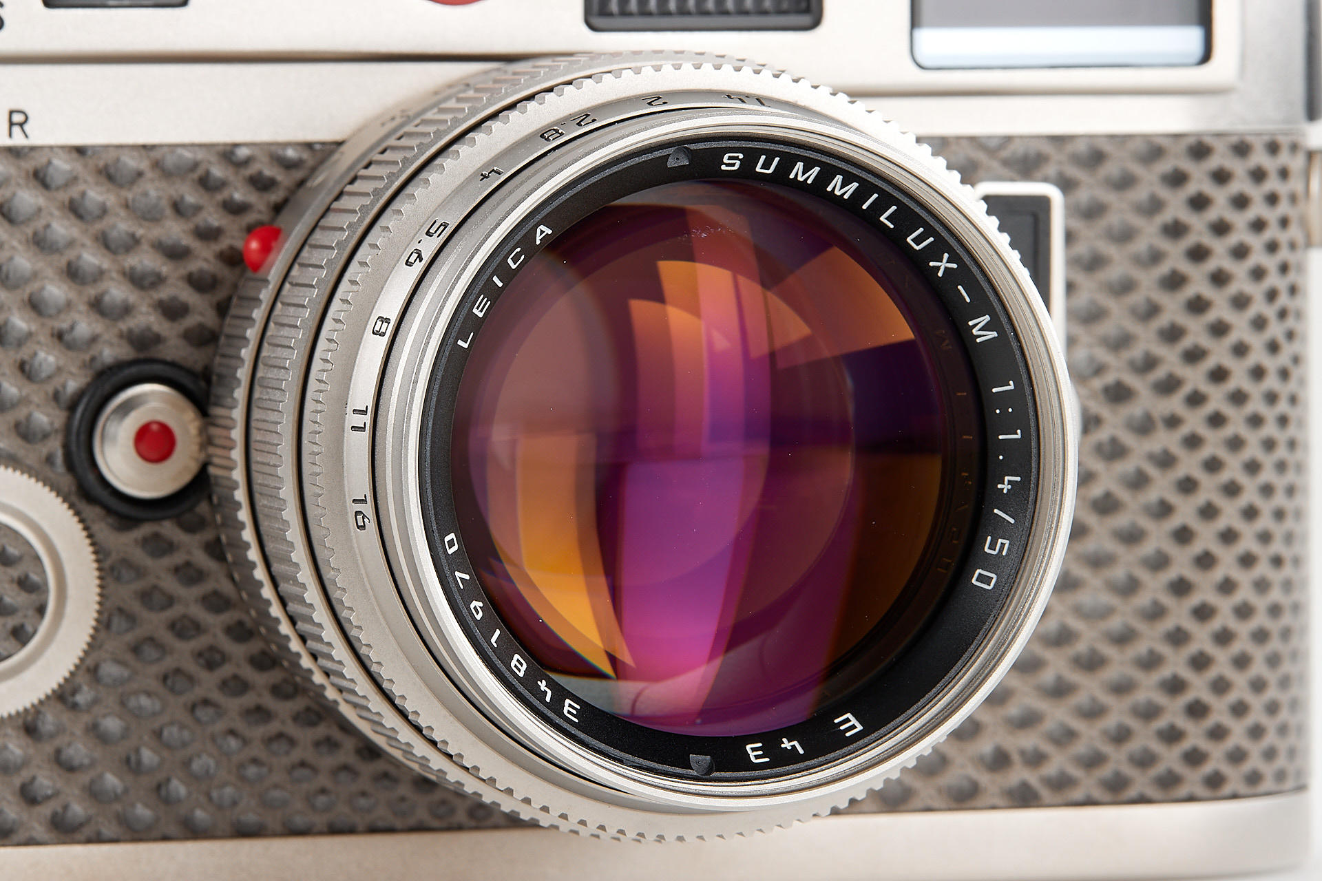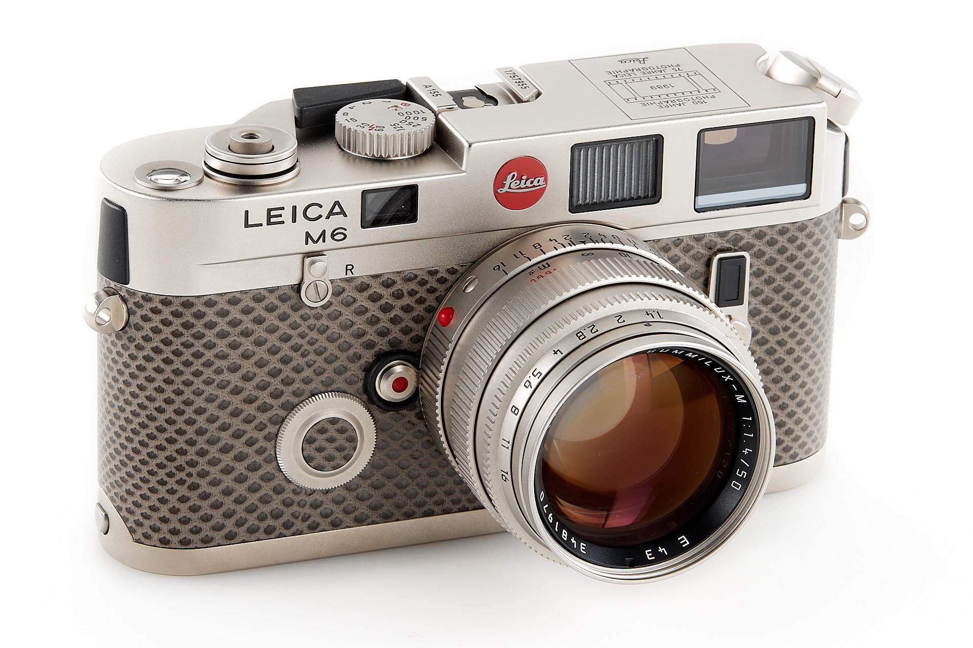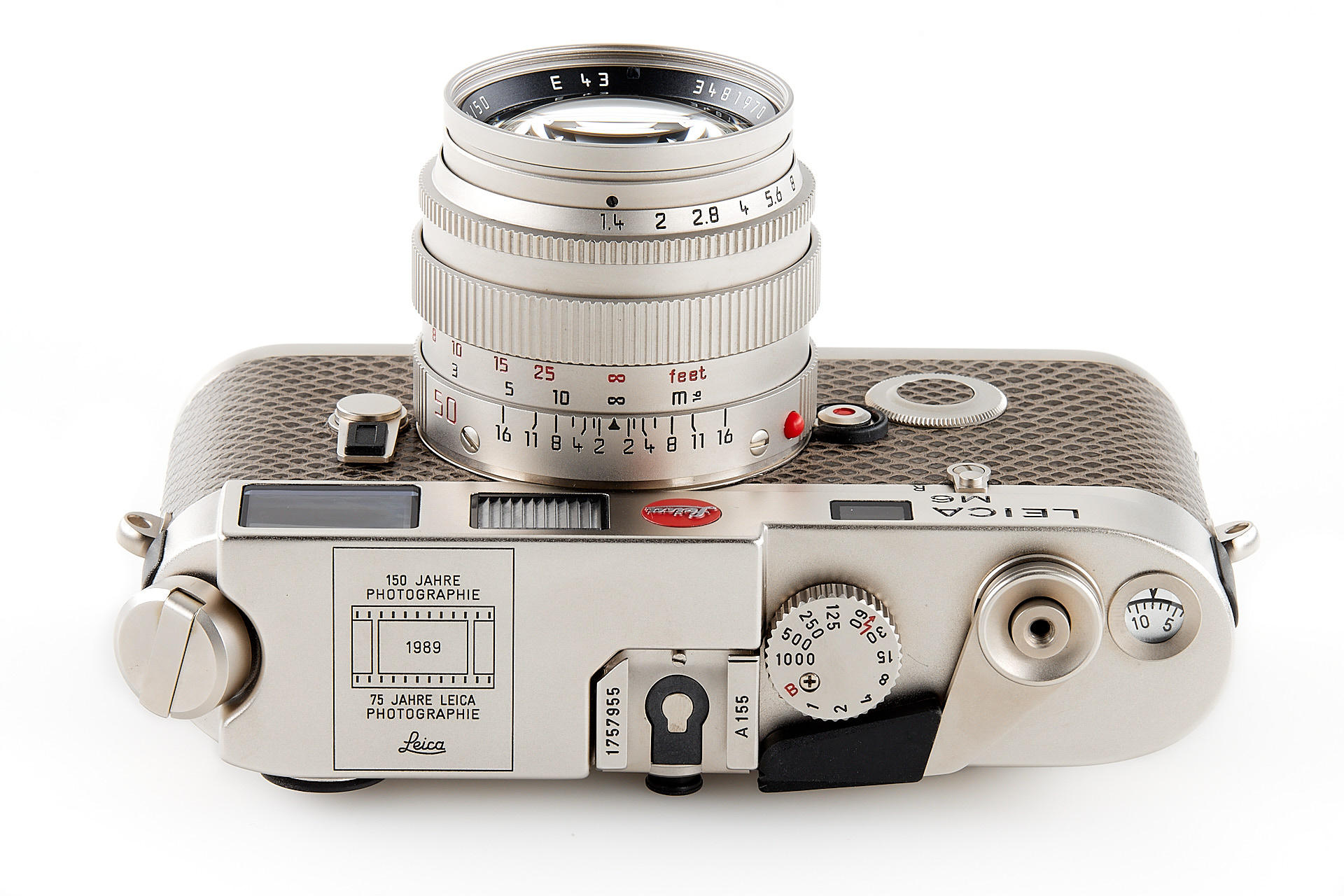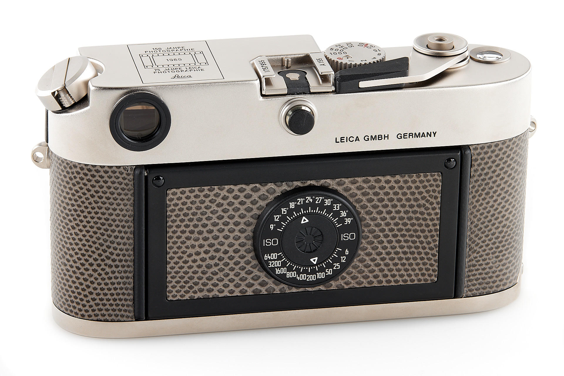special edition issued for 150 years of photography and 75 years of Leica photography, body number 1757955, platinum Summilux-M 1.4/50mm no.3481970, in mint condition, with wooden presentation box, maker's box