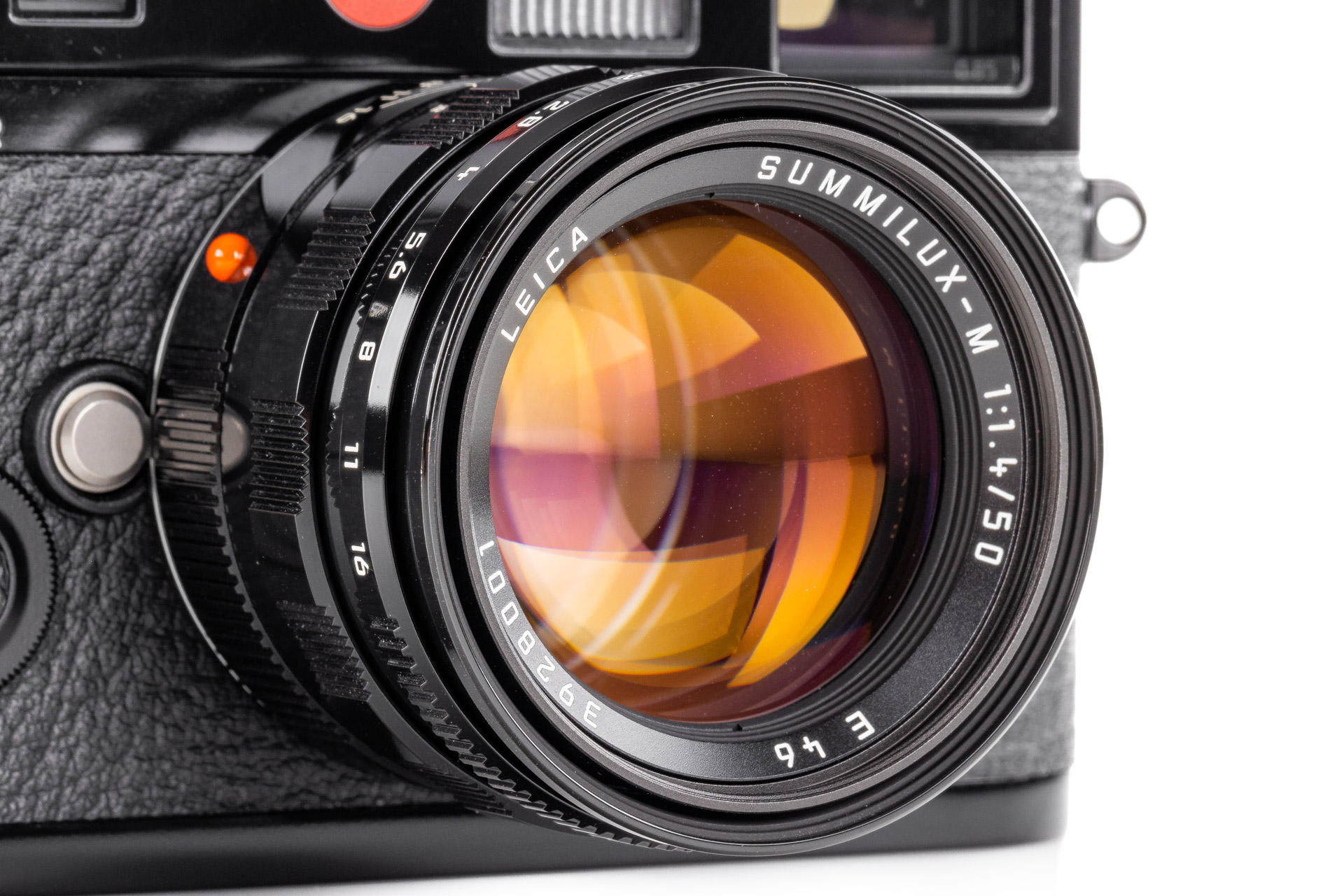 The first camera outfit from a rare Japanese edition of only 200 cameras, issued for the year 2000 and finished in black paint. Body no.2555001 in beautiful, mint condition and perfect working order, with matching black paint Summilux-M 1.4/50mm no.3928001 and matching black paint Summicron-M ASPH. 2/35mm no.3927001.