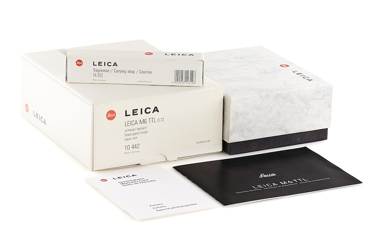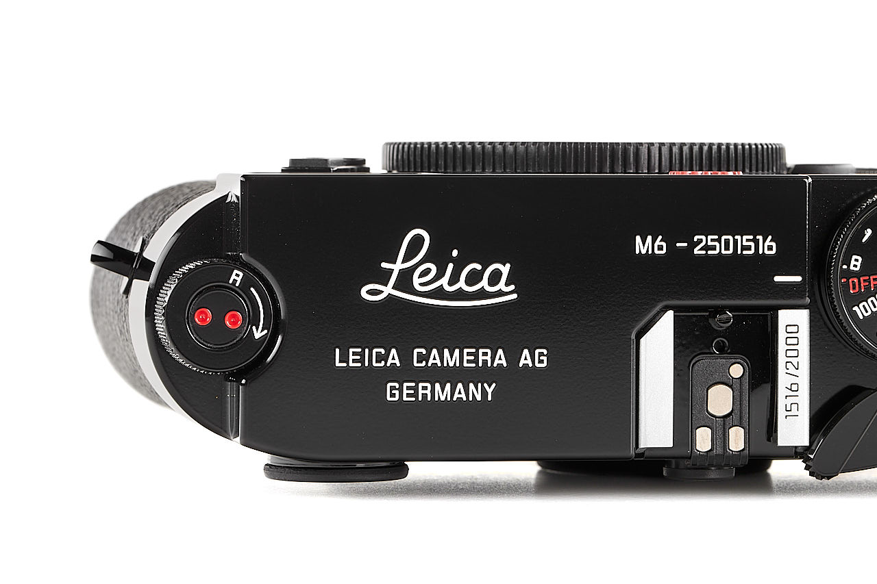 The 1516th of only 2000 M6 TTL black paint issued to mark the year 2000 and 75 years since the launch of Leica in 1925, special engraving 1516/2000, note the rewind knob and wind lever inherited from the M3, in absolutely perfect, unused condition, complete with body cap, strap, original battery, all papers, warranty card, certificate, presentation and maker's box.