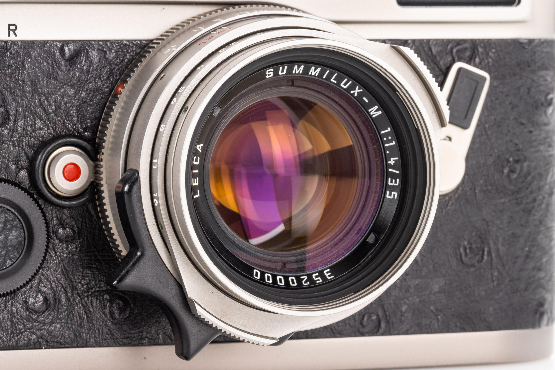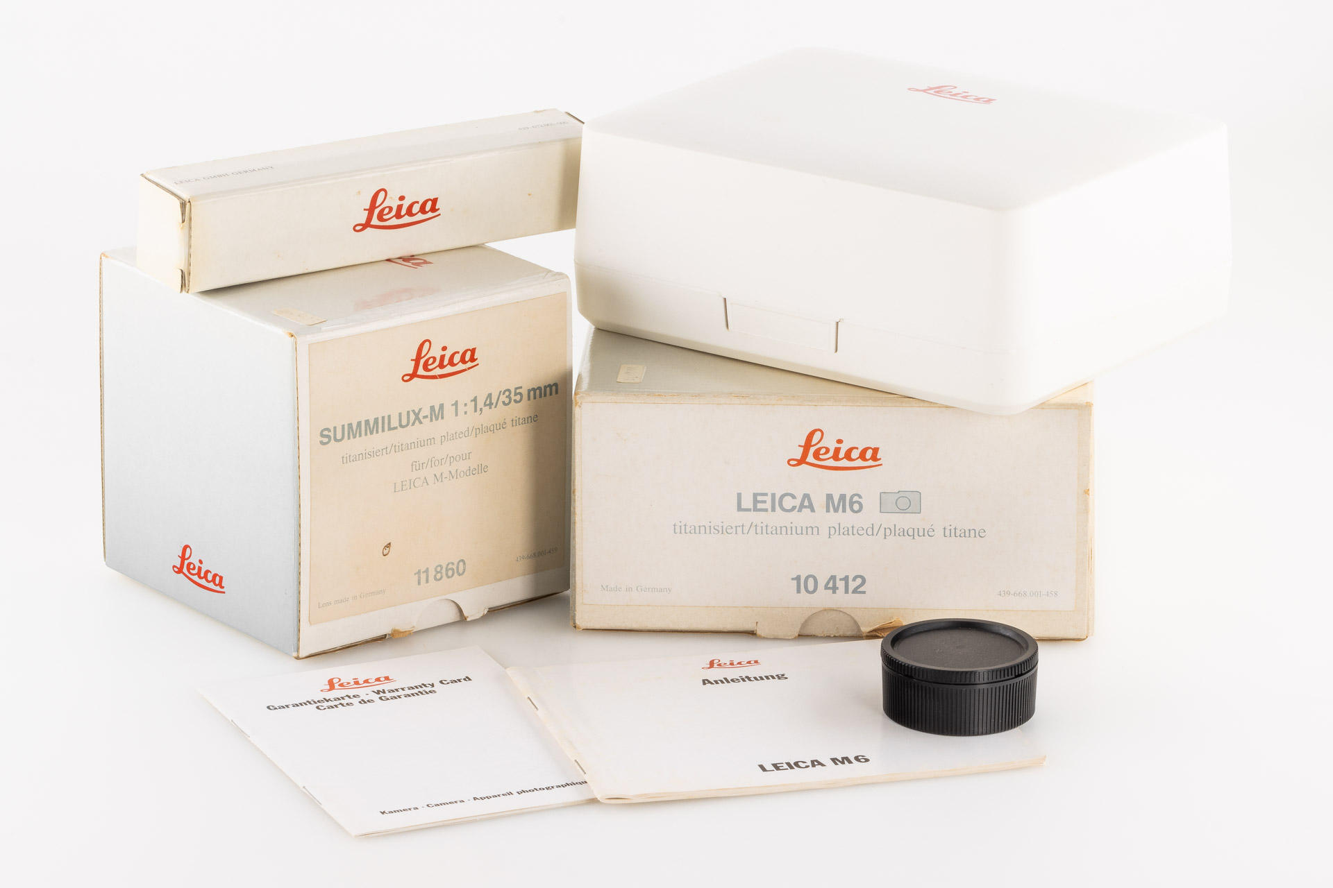 an interesting M6 Titan with special serial number 1930000. It is in near-mint condition and perfect working order, complete with maker's box and papers. Included in this lot is a Summilux-M 1.4/35mm in titanium finish, with special serial number 3520000, also in beautiful condition, with hood, protection filter, rear cap, box and papers. 3520000