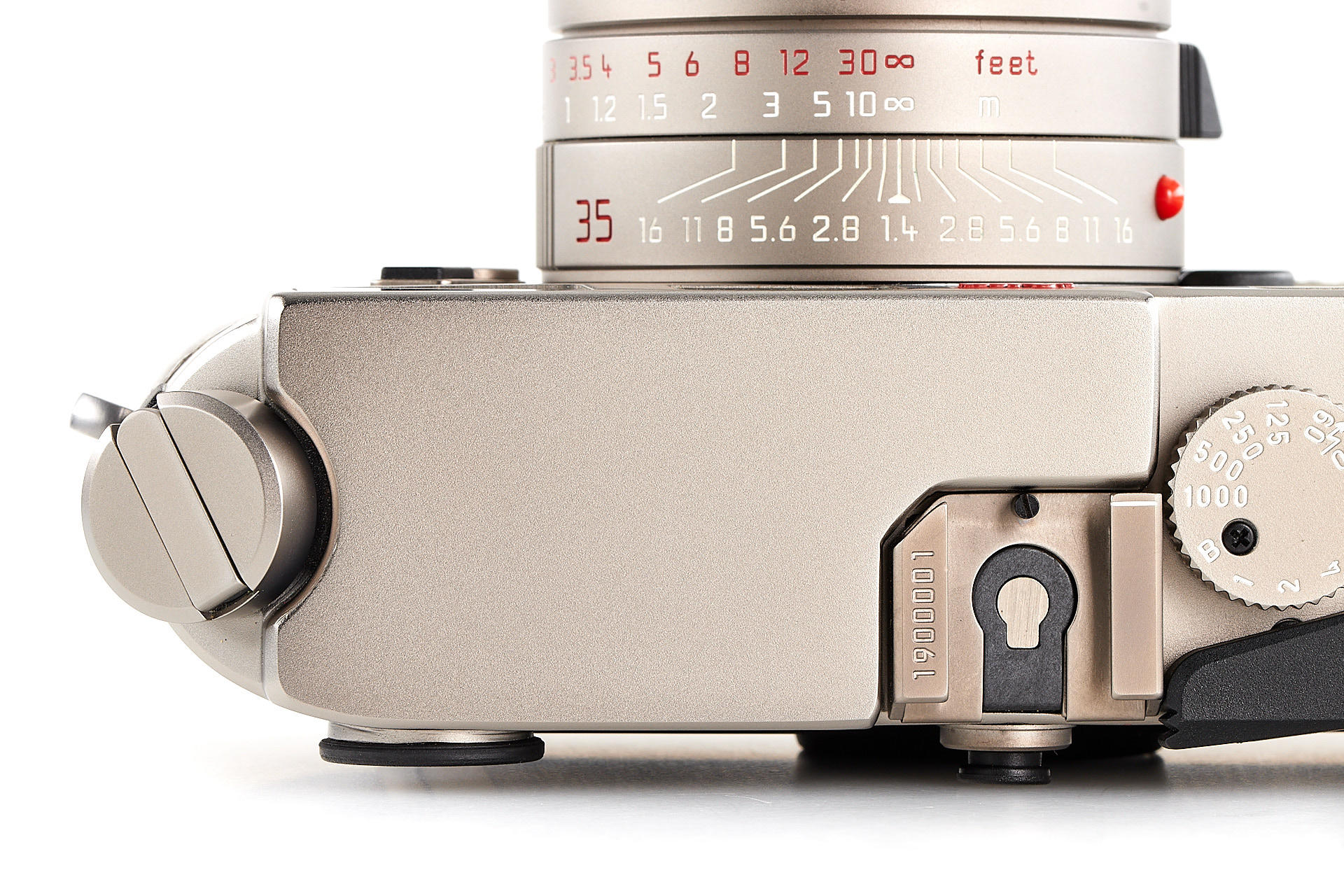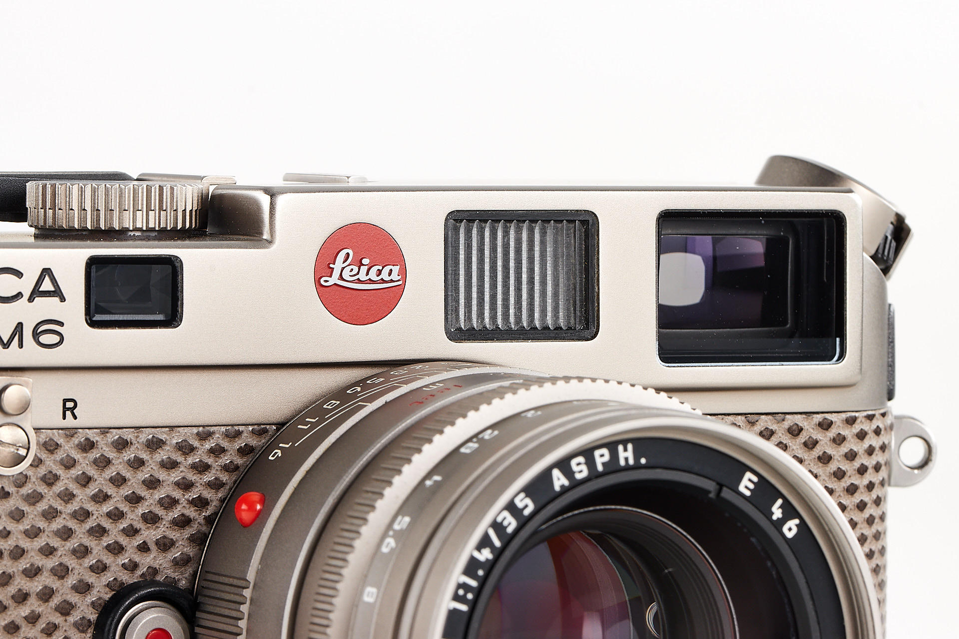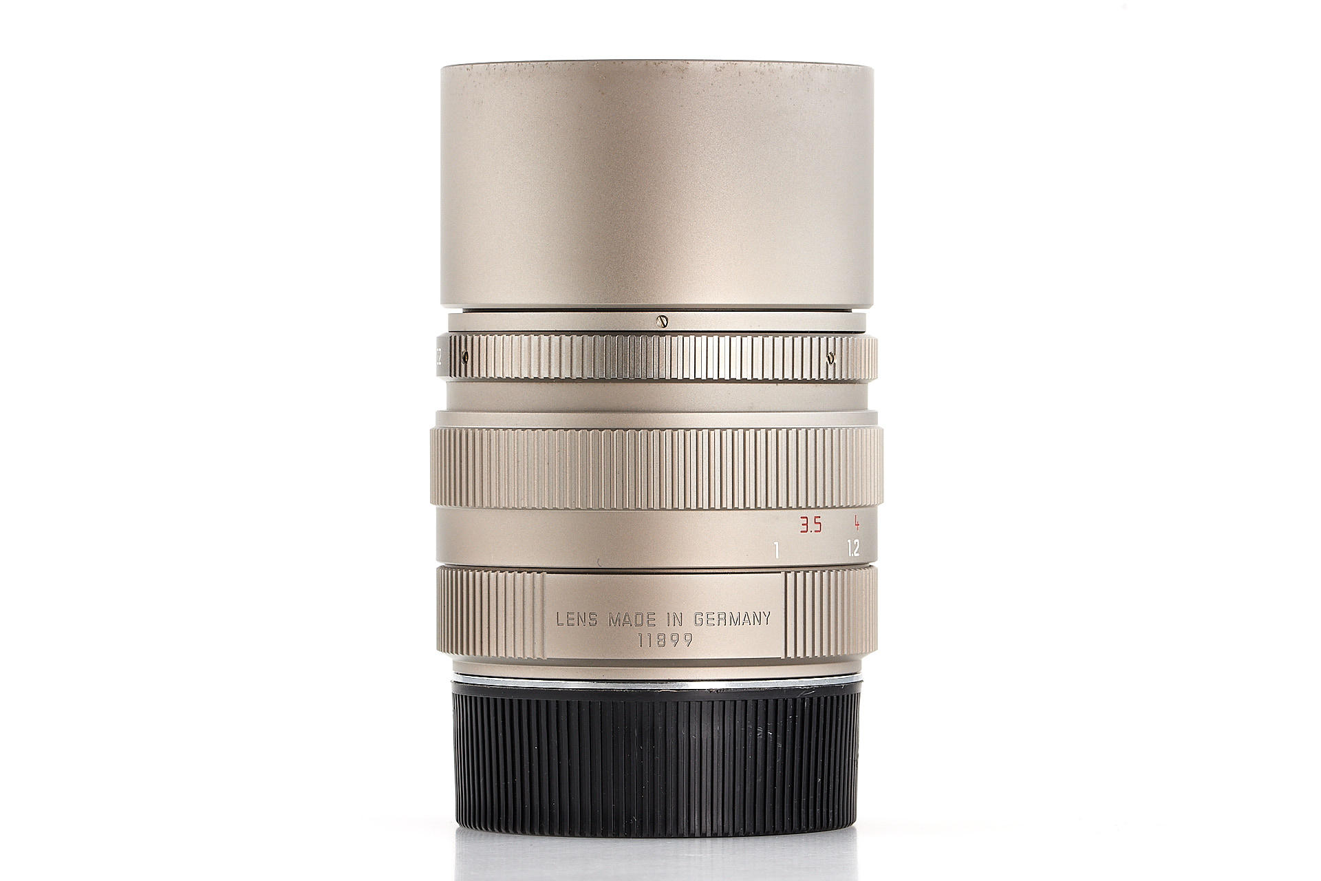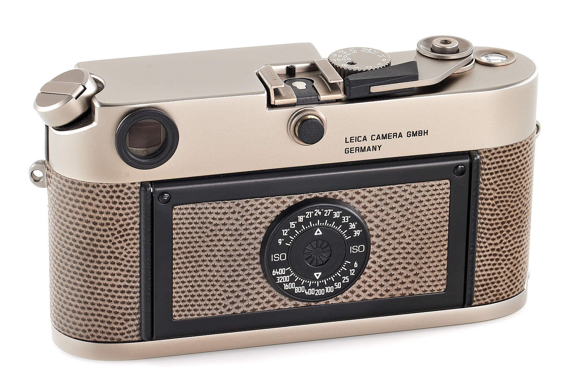 The Leica M6 titan was officially announced at the Photokina 1992. The offered presentation camera bears the special serial number 1900001, it is in beautiful, mint and unused condition, the body is covered in special leather in a reptile pattern, comes with complete papers and a maker's box with a matching serial number. Included with the camera is a Summilux-M 1.4/35mm ASPH. in titanium finish with a special serial number 3710100 (cond. A-, with 12588 hood, caps, box, keeper and papers), and an Elmarit-M 2.8/90mm in titanium finish, with a special number 3807300 (cond. A/B)
