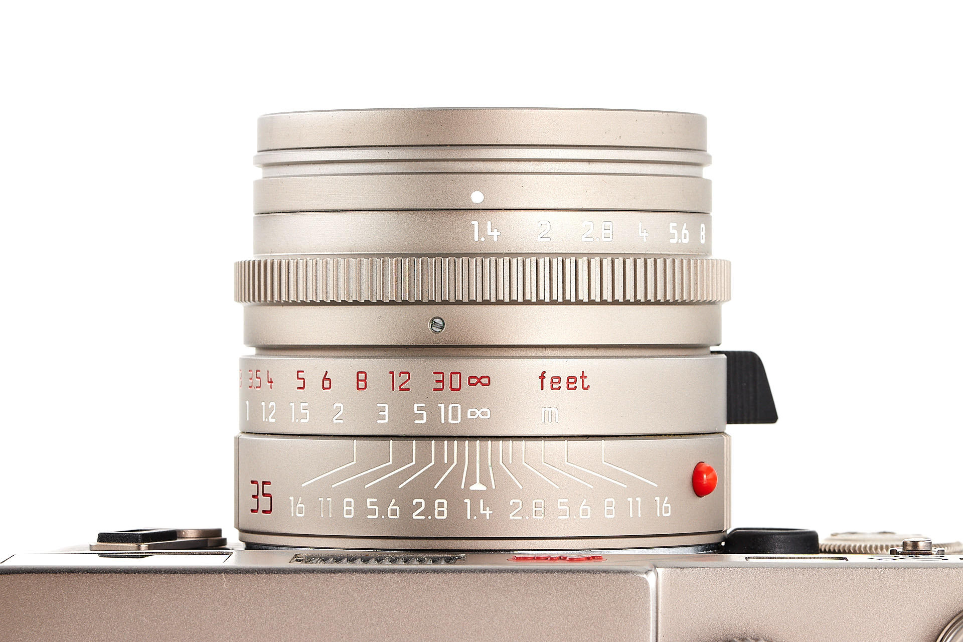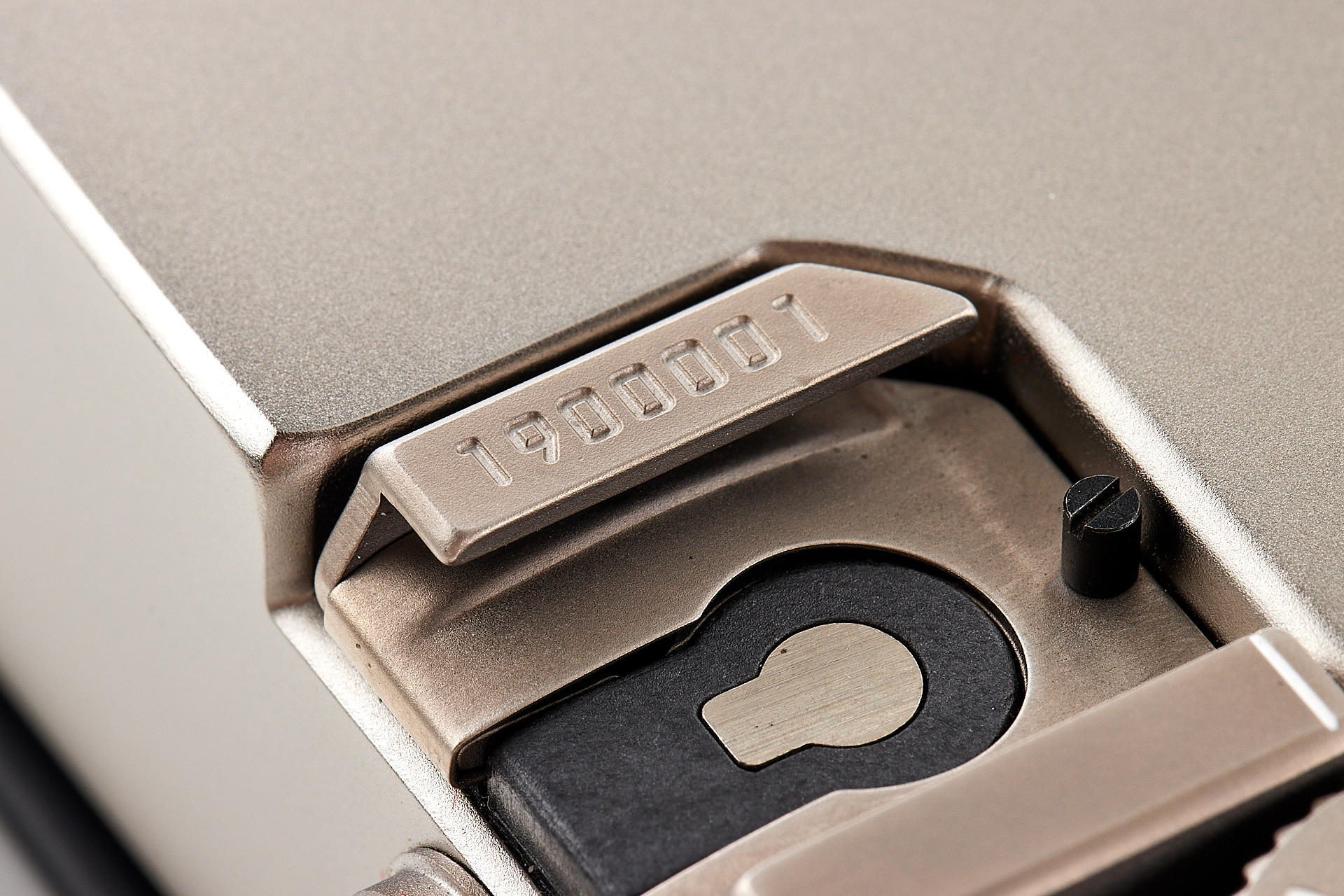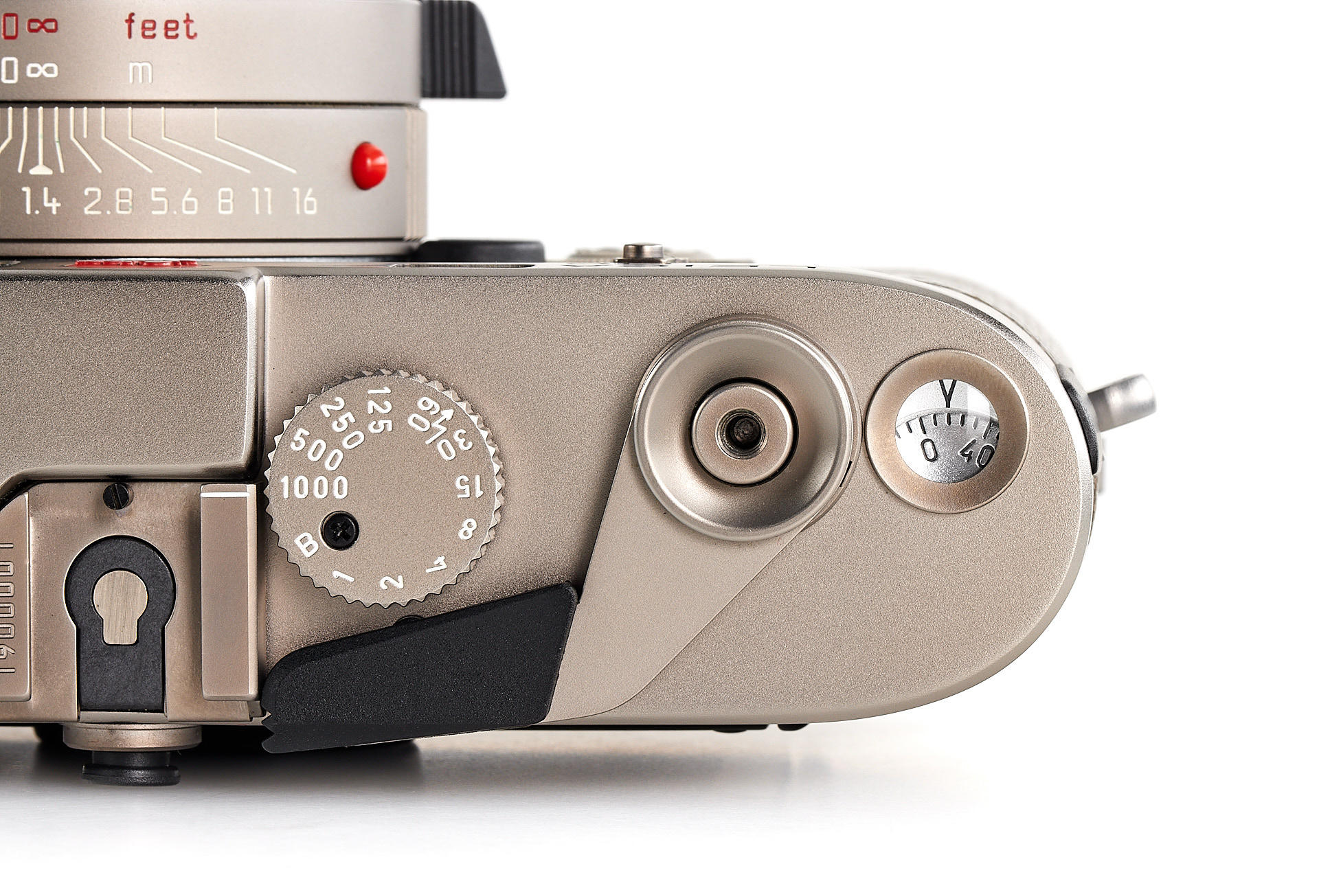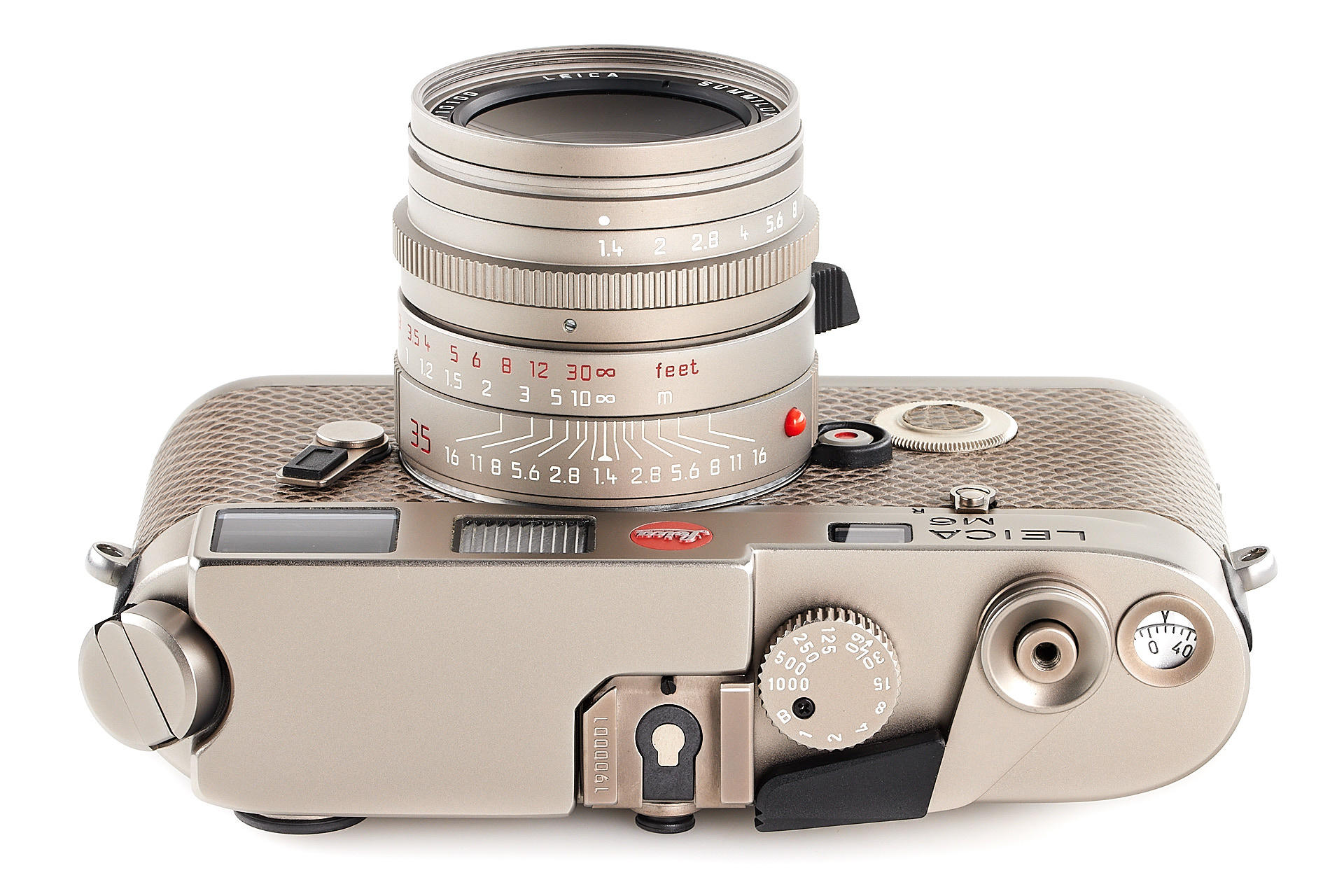The Leica M6 titan was officially announced at the Photokina 1992. The offered presentation camera bears the special serial number 1900001, it is in beautiful, mint and unused condition, the body is covered in special leather in a reptile pattern, comes with complete papers and a maker's box with a matching serial number. Included with the camera is a Summilux-M 1.4/35mm ASPH. in titanium finish with a special serial number 3710100 (cond. A-, with 12588 hood, caps, box, keeper and papers), and an Elmarit-M 2.8/90mm in titanium finish, with a special number 3807300 (cond. A/B)