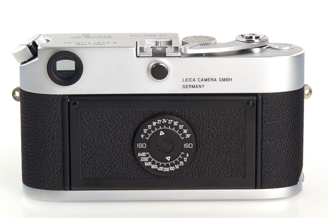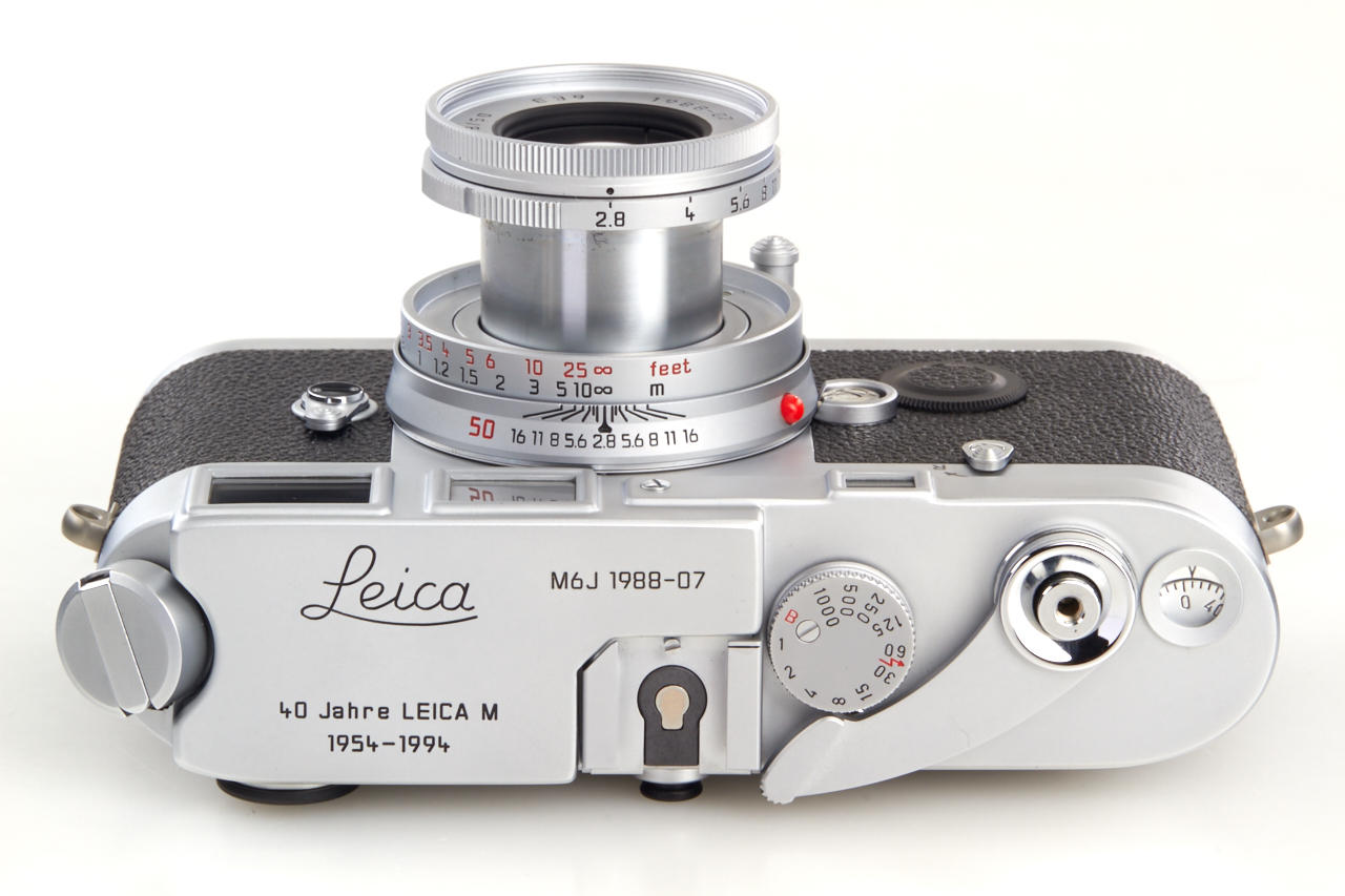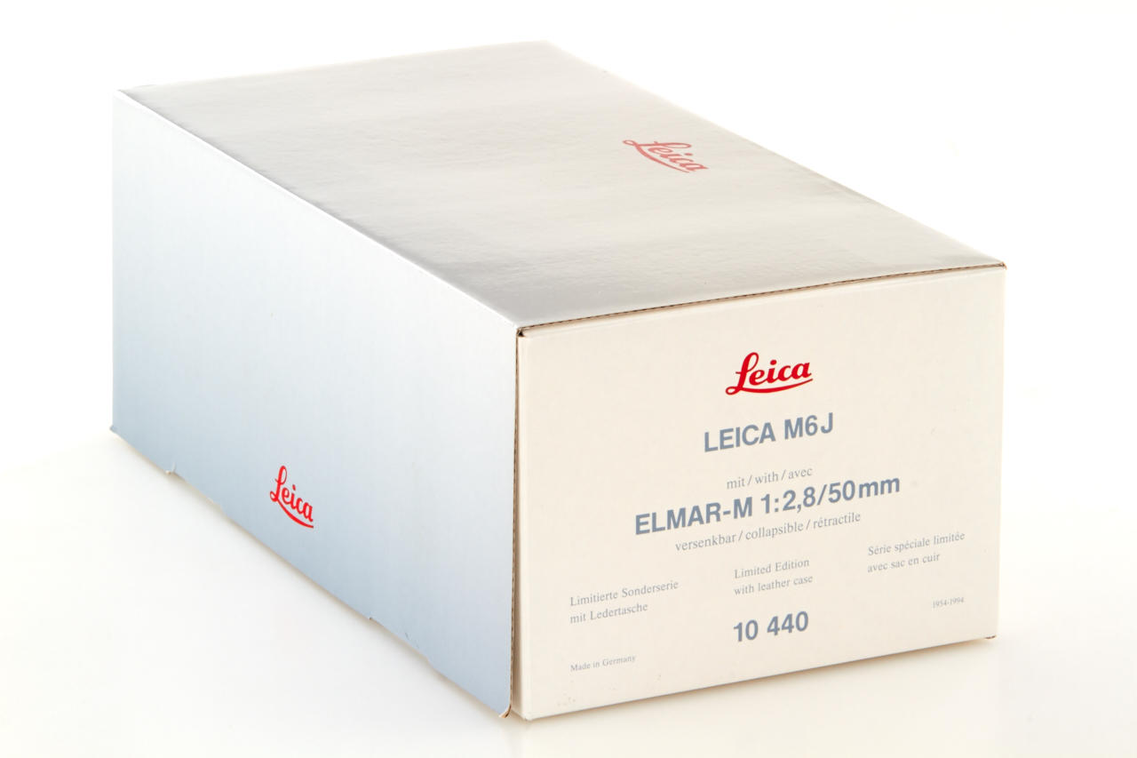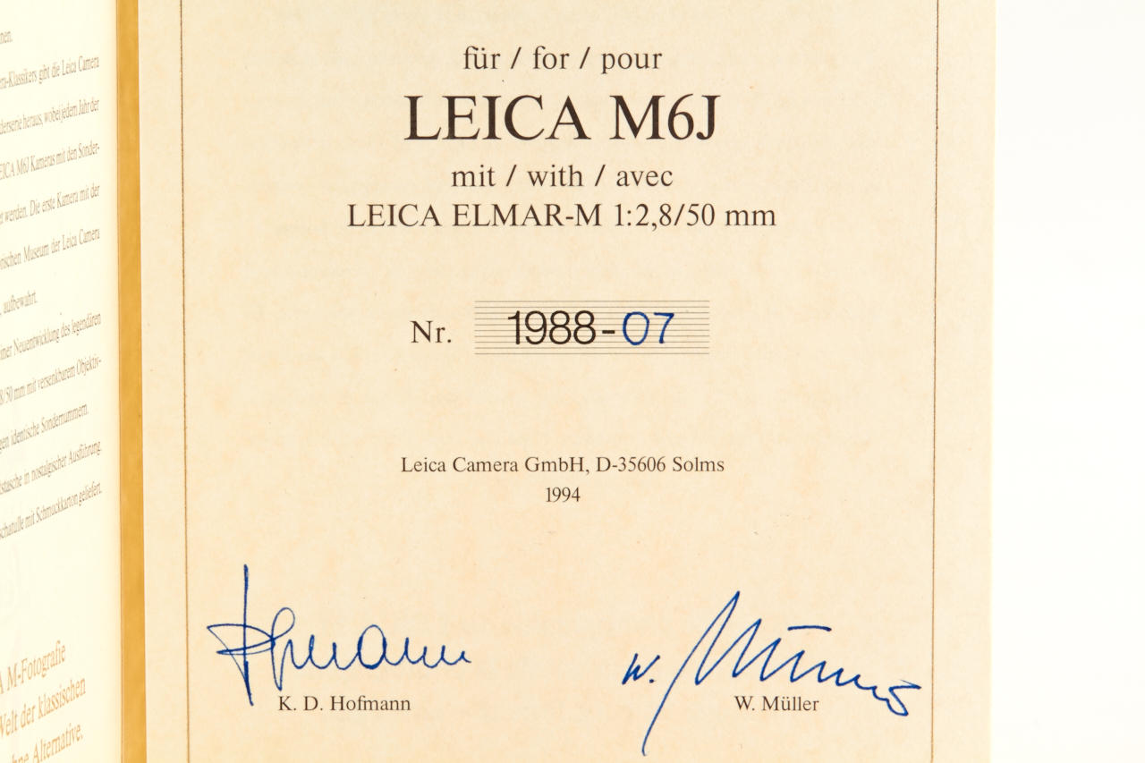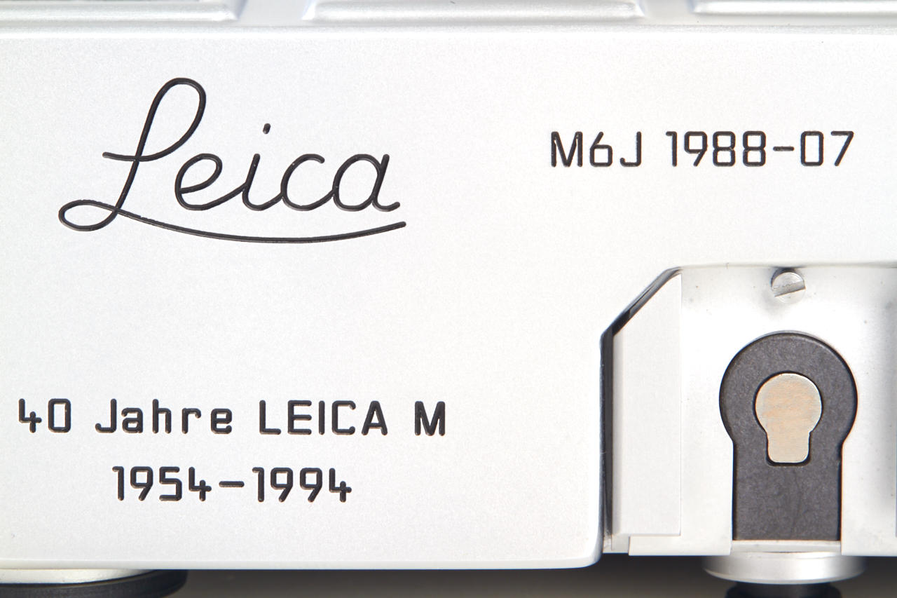 special edition of 1640 cameras made to celebrate 40th anniversary of Leica M (40 pieces for each production year), the camera combines features of M3 and M6 cameras, complete set with matching Elmar 2.8/50mm (both camera and lens engraved with the same special number 1988-07), brand new with leather case, papers, wooden presentation box, maker's boxes