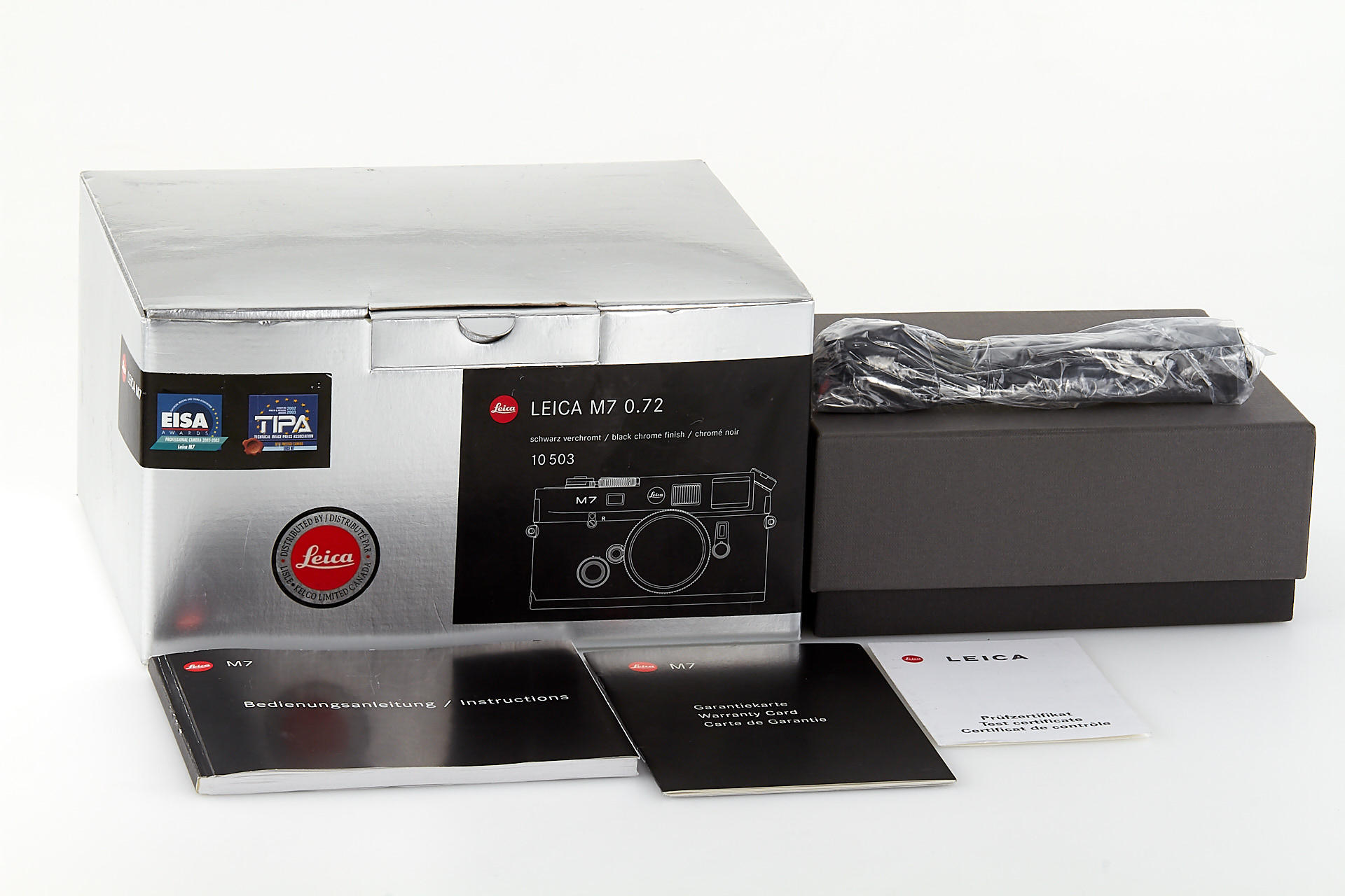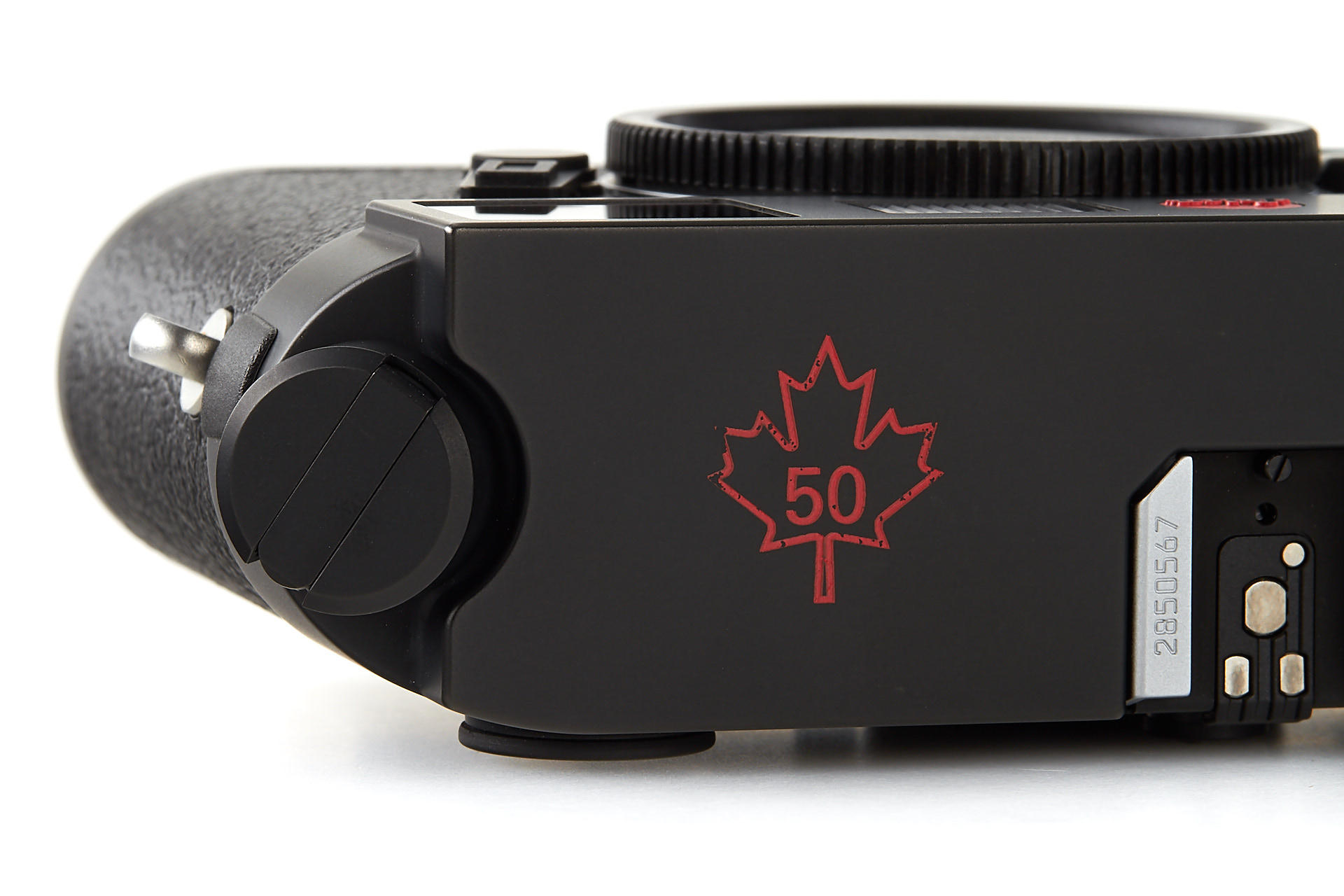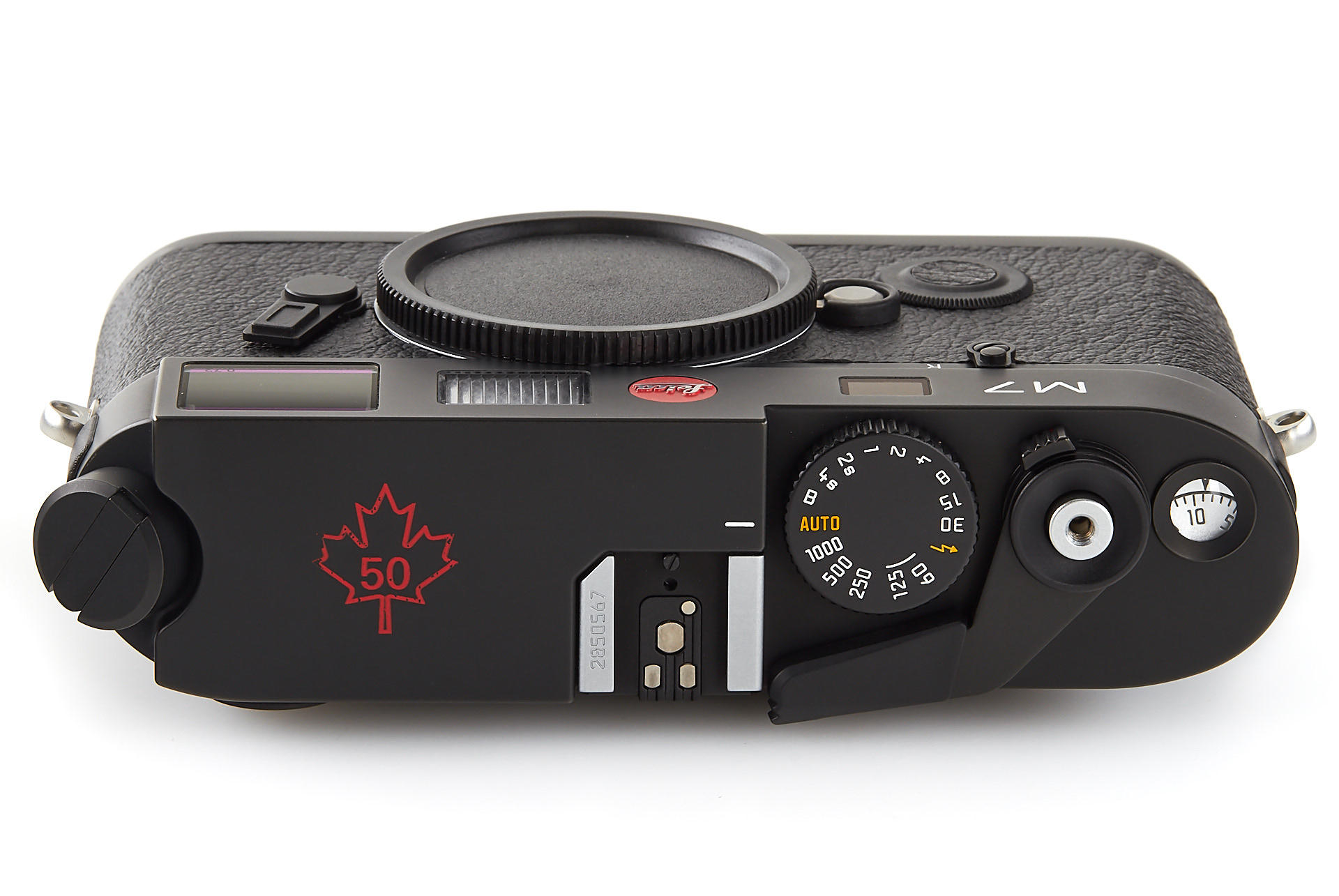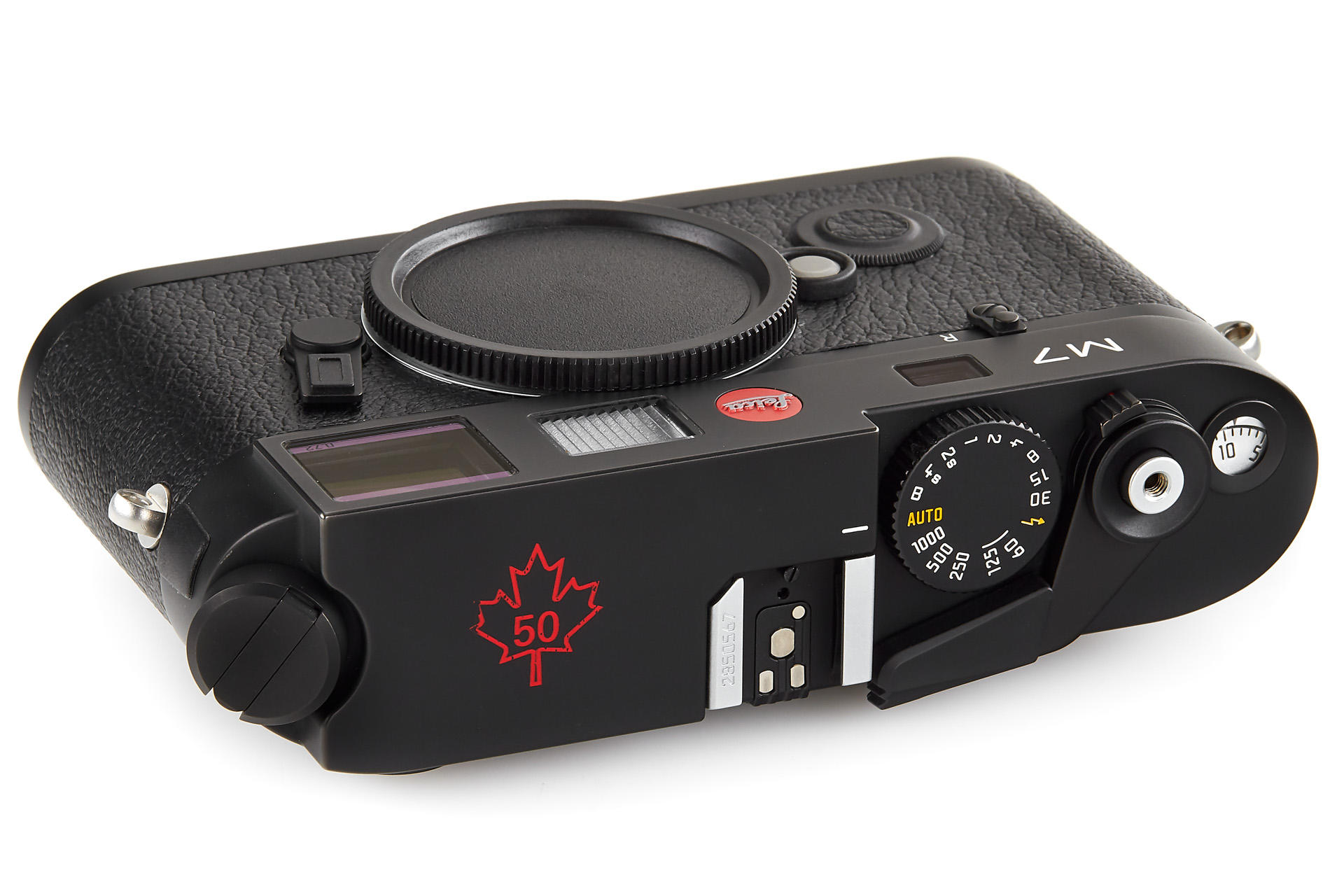 very rare special edition black M7 with a Canadian maple leaf printed on the top of the top plate, only 50 of these rare cameras have been issued to commemorate 50 years of Canadian Leica agency Lisle-Kelco, in near mint condition, with cap, strap, all papers, in matching maker's box