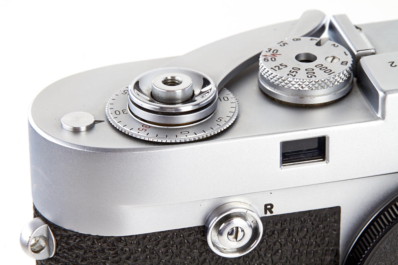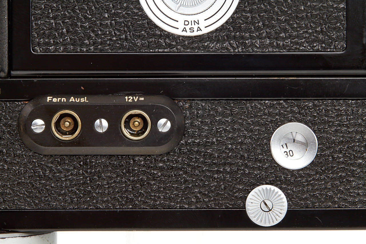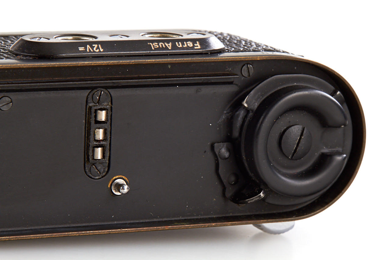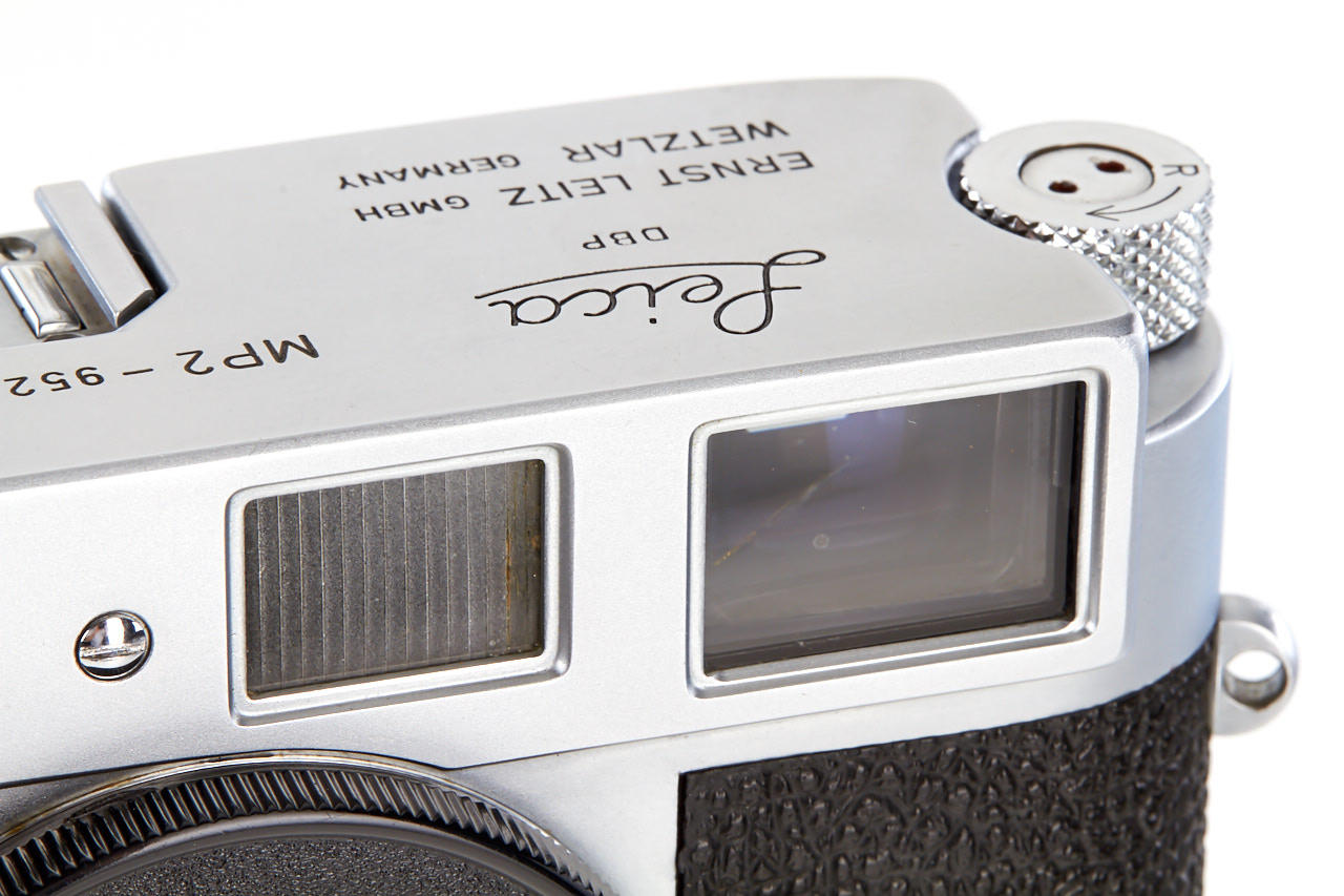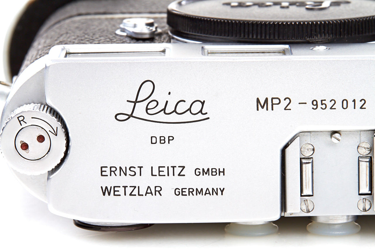 The MP-2 was the first experimental M cameras with electric motor drive built in the late 1950's, Only 21 chrome cameras were produced, less than 10 are known to exist with the original electric motor. It comes from the second batch of 15 cameras (nos.952001-952015). This offered camera is in almost new and fully original condition, with matching black Wetzlar electric motor drive and power source handle - for sure one of the most important M camera ever offered in auction ! Illustrated in Lager I page 212, ex Jim Jannard collection !