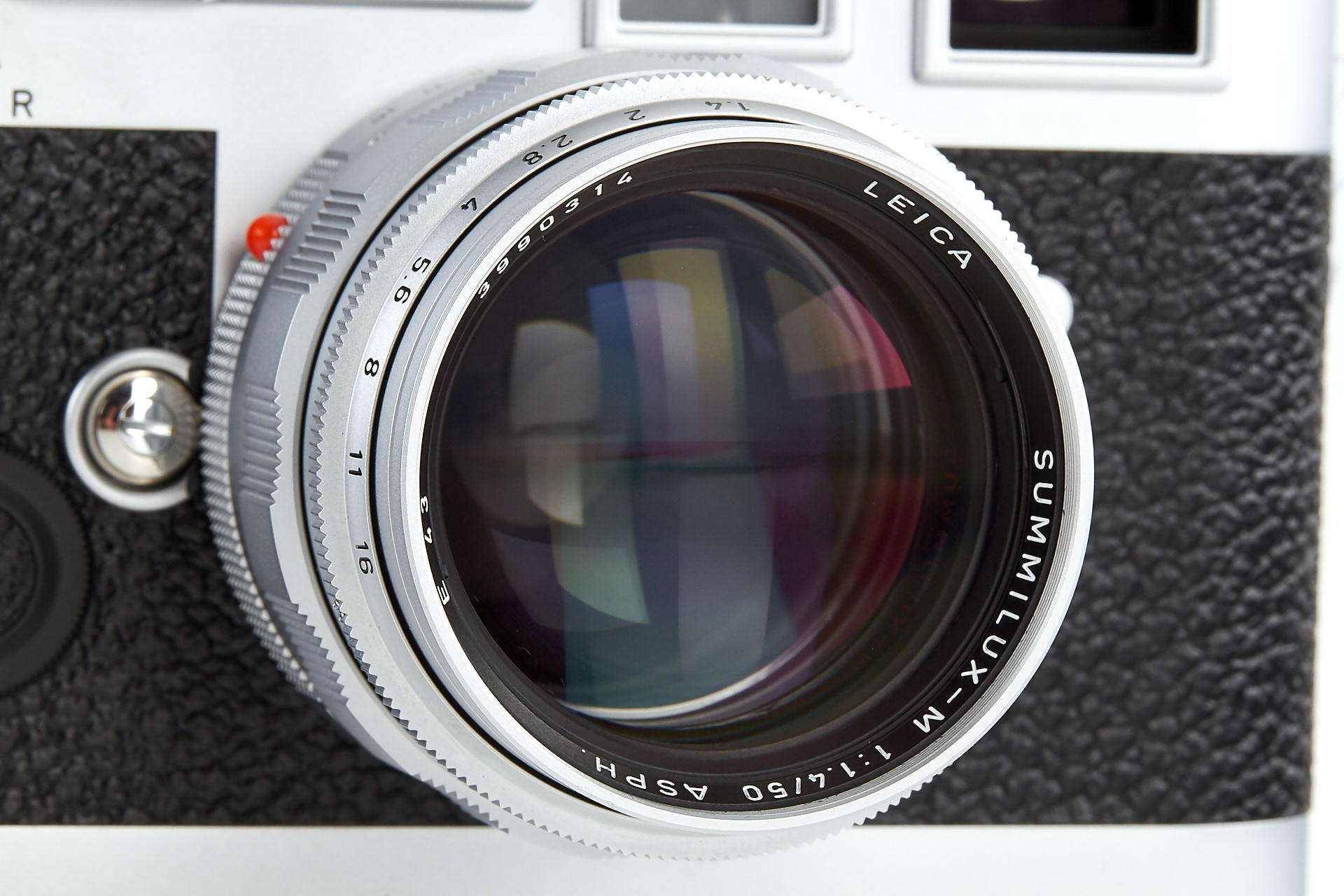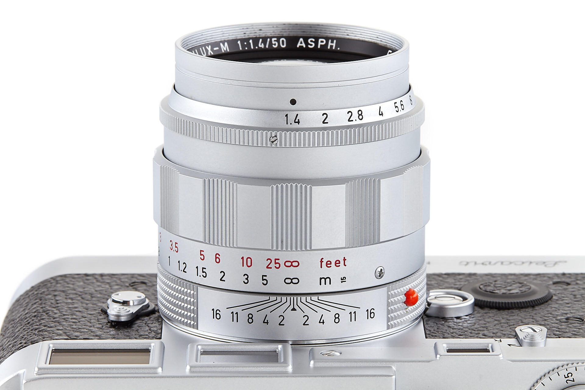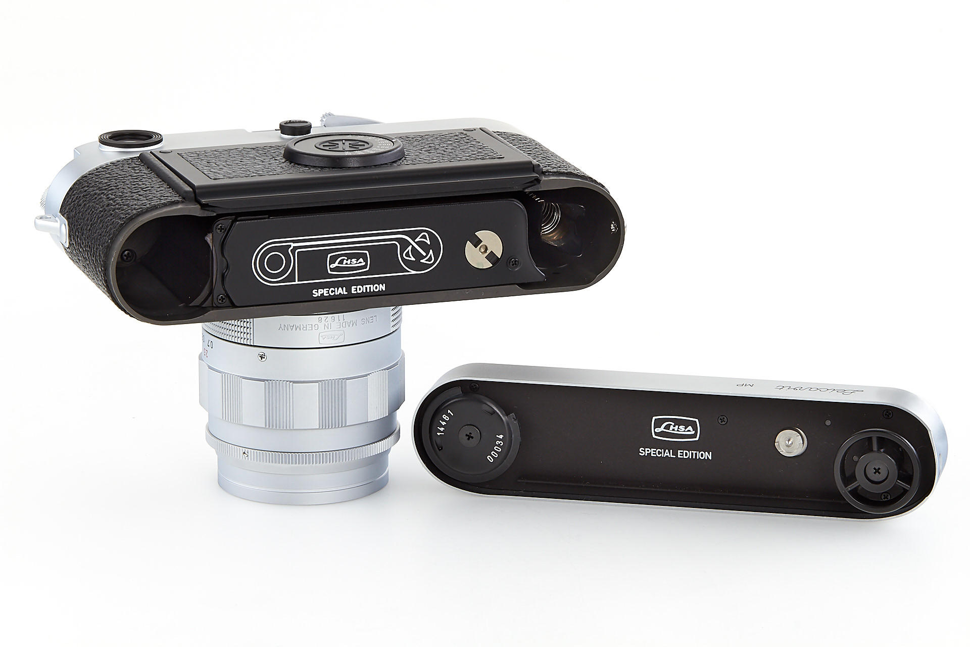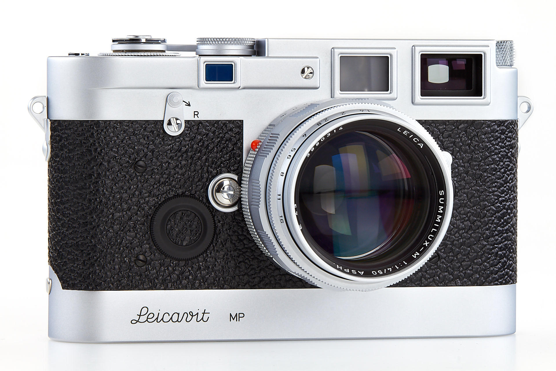 The complete set in new condition, from a limited edition of 500 chrome cameras, with body no.3026642, chrome Summilux-M ASPH. 1.4/50mm no.3990314, Leicavit MP LHSA no.00134 - all in a fitted red presentation box, with all papers and accessories, in maker's box