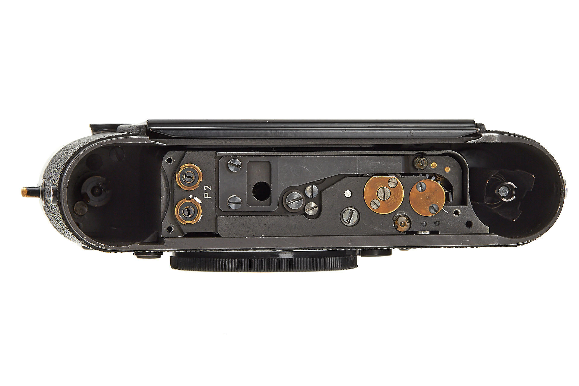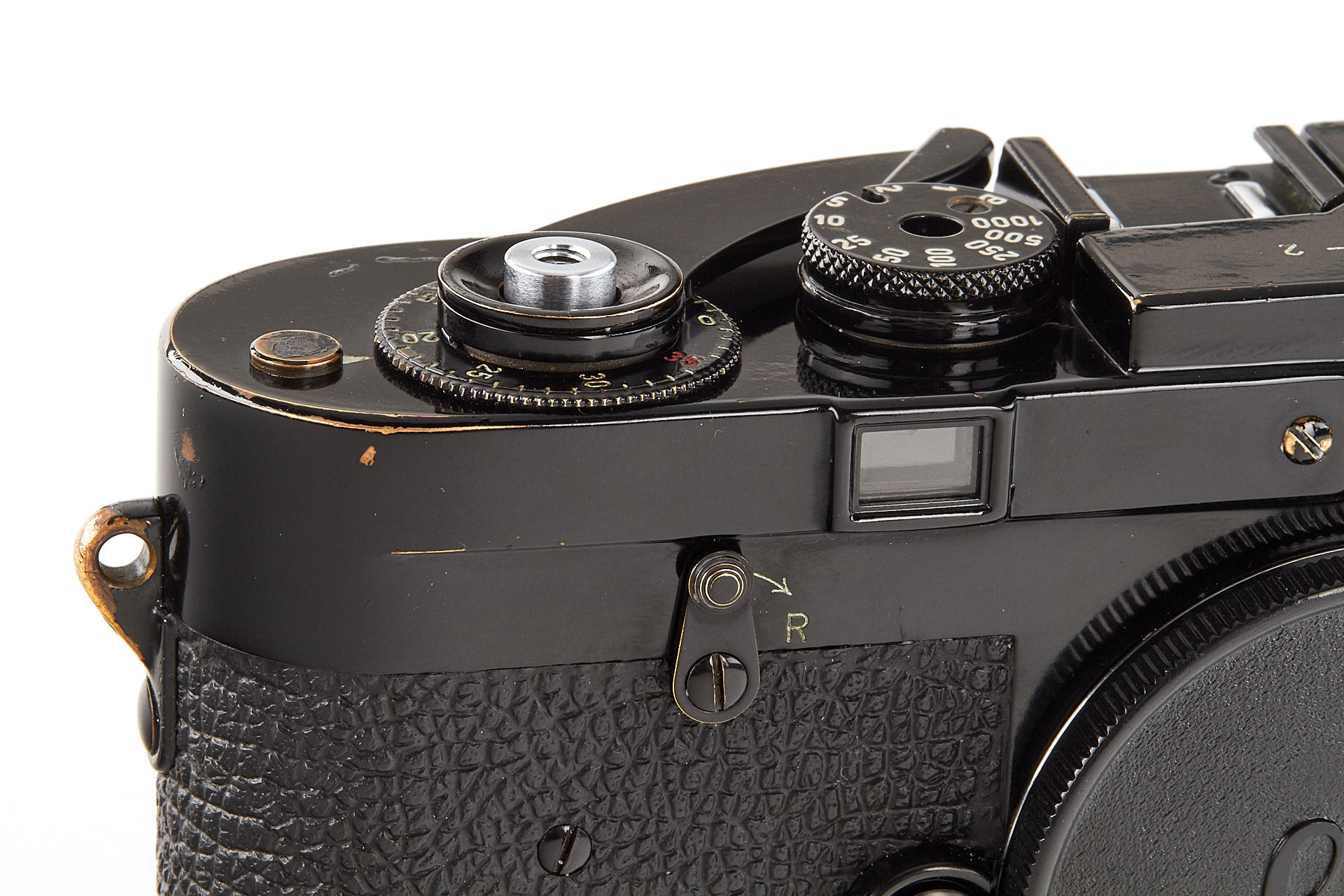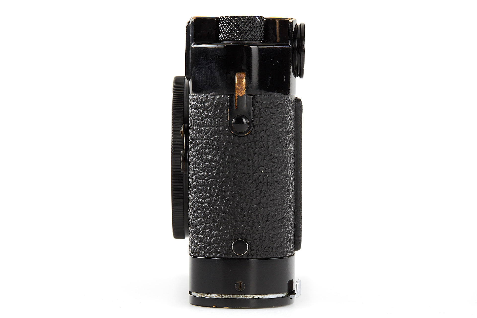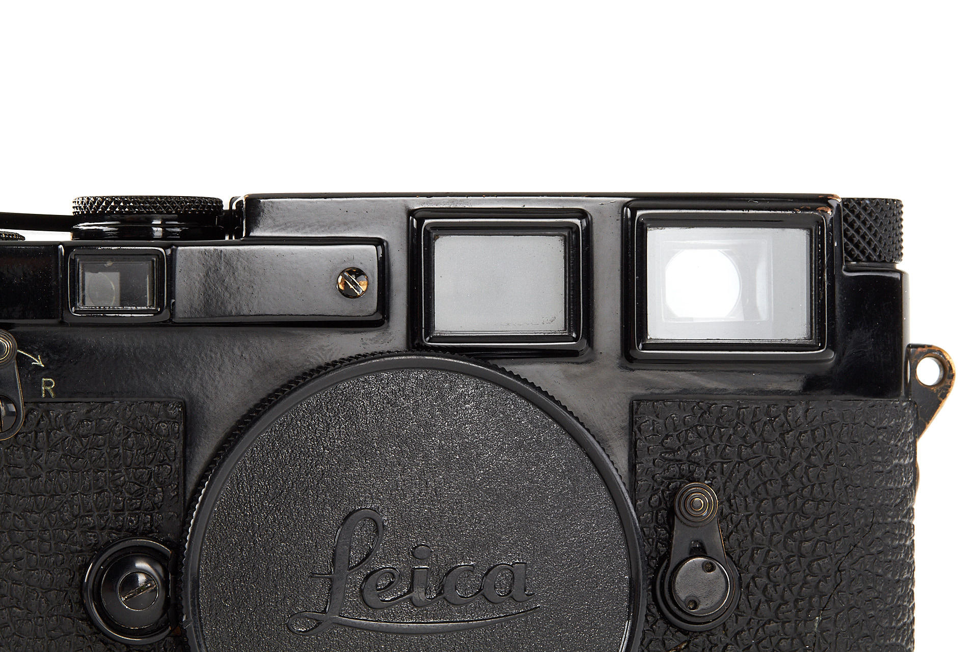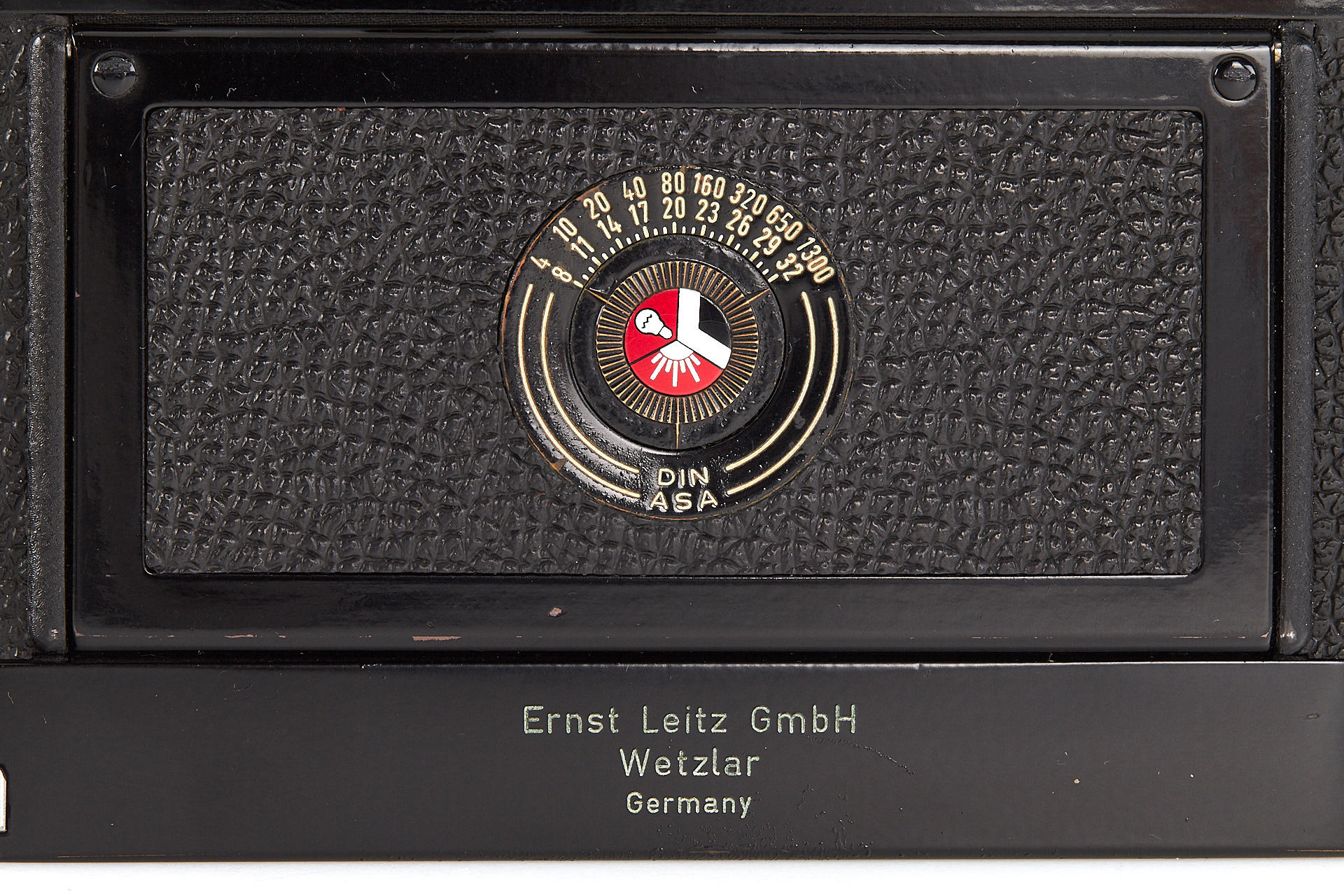 It was at the “Photokina” fair in Cologne in 1956 when the new Leica MP was introduced to the public. It was much more than a mere variation of the Leica M3. It was the only serial model which has an individual number, differing fundamentally from the usual fabrication numbers of all other Leica cameras. With a total number of only 412 units produced, the MP is among the rarest Leica models of all time. The black-paint version was produced only 141 times and acquired mainly by professional photographers. Many of the famous Magnum photographers used MP cameras. Today it is among the most sought-after Leicas of all. The idea which led to the production of the MP model came from several well-known American press photographers, who wanted to make use of the advantages of the Leicavit (available at that time for IIIf only) on their Leica M cameras as well. It was mainly the suggestion of Alfred Eisenstaedt and David Douglas Duncan which aroused the interest of Dr. Ludwig Leitz, who was the director of the development and construction department in 1955. The camera offered here is the second Leica MP ever made and the first one in black finish. It is in beautiful condition, with only minimal signs of use around the edges. During a service at Leitz it has received a later type back door (black paint), a quick film loading system and coupling for the New York electric motor drive (a very unusual upgrade!). The camera has been initially delivered to New York press photographer Bob Schwalberg (delivery date 08.10.1956). It comes with a Leicavit MP in black paint finish (with a Bob Schwalberg sticker inside). The camera is also included in Hasbroeck's '150 Classic Cameras' on pages 172-173. Included is a written expertise from Ottmar Michaely. It is one of the most important Leica cameras made. And probably the one that started the trend of black paint M cameras being used by professionals and loved by collectors nowadays.