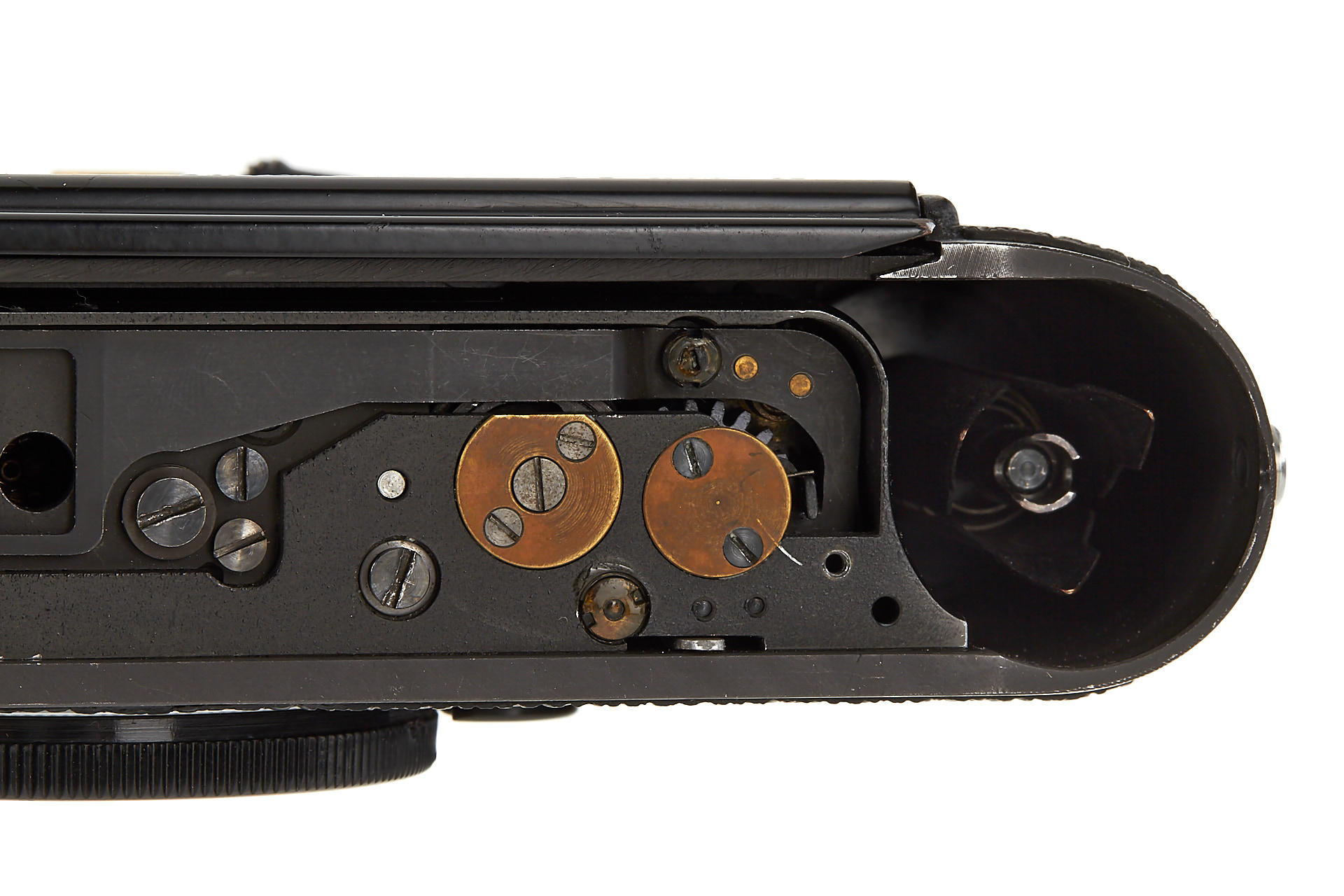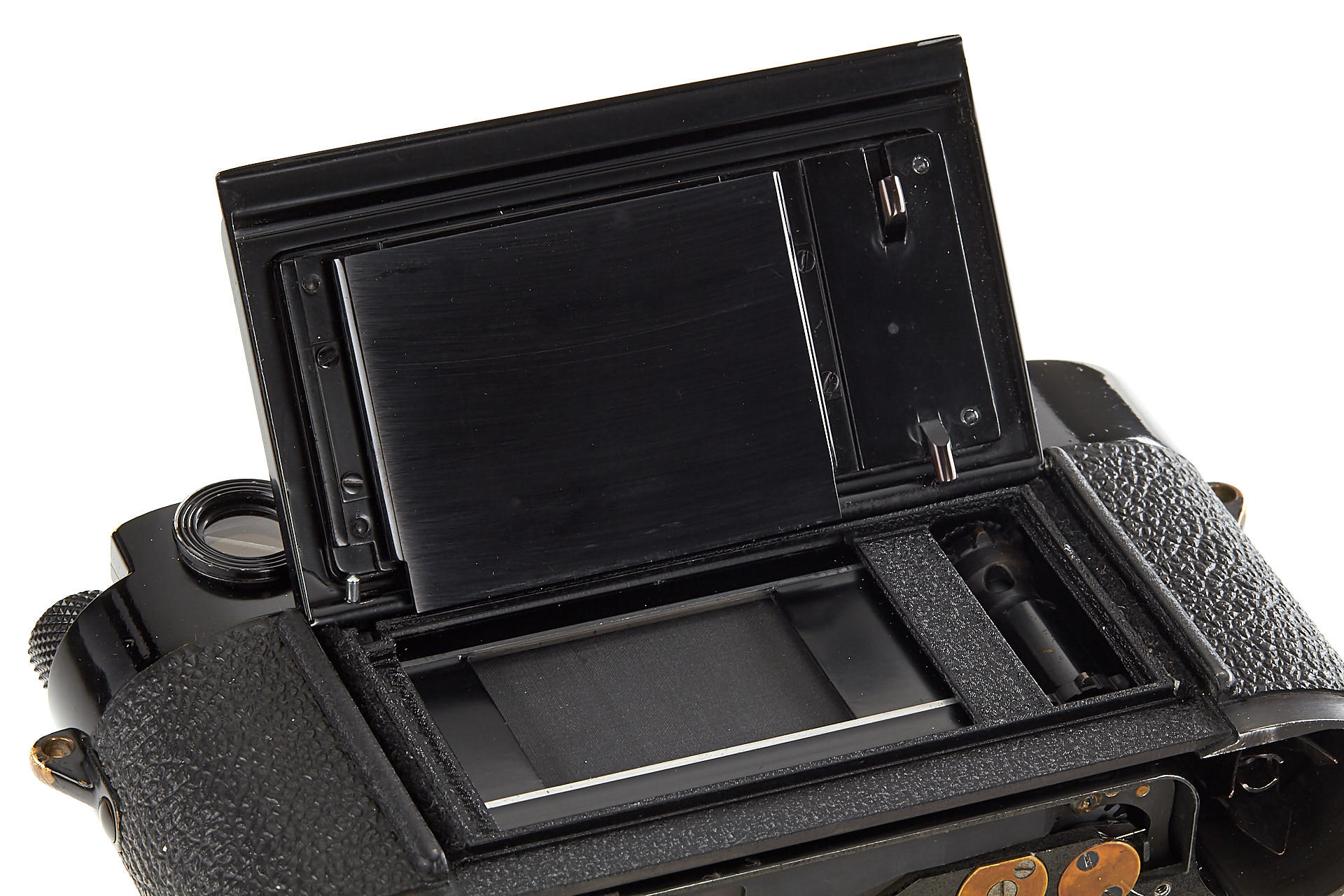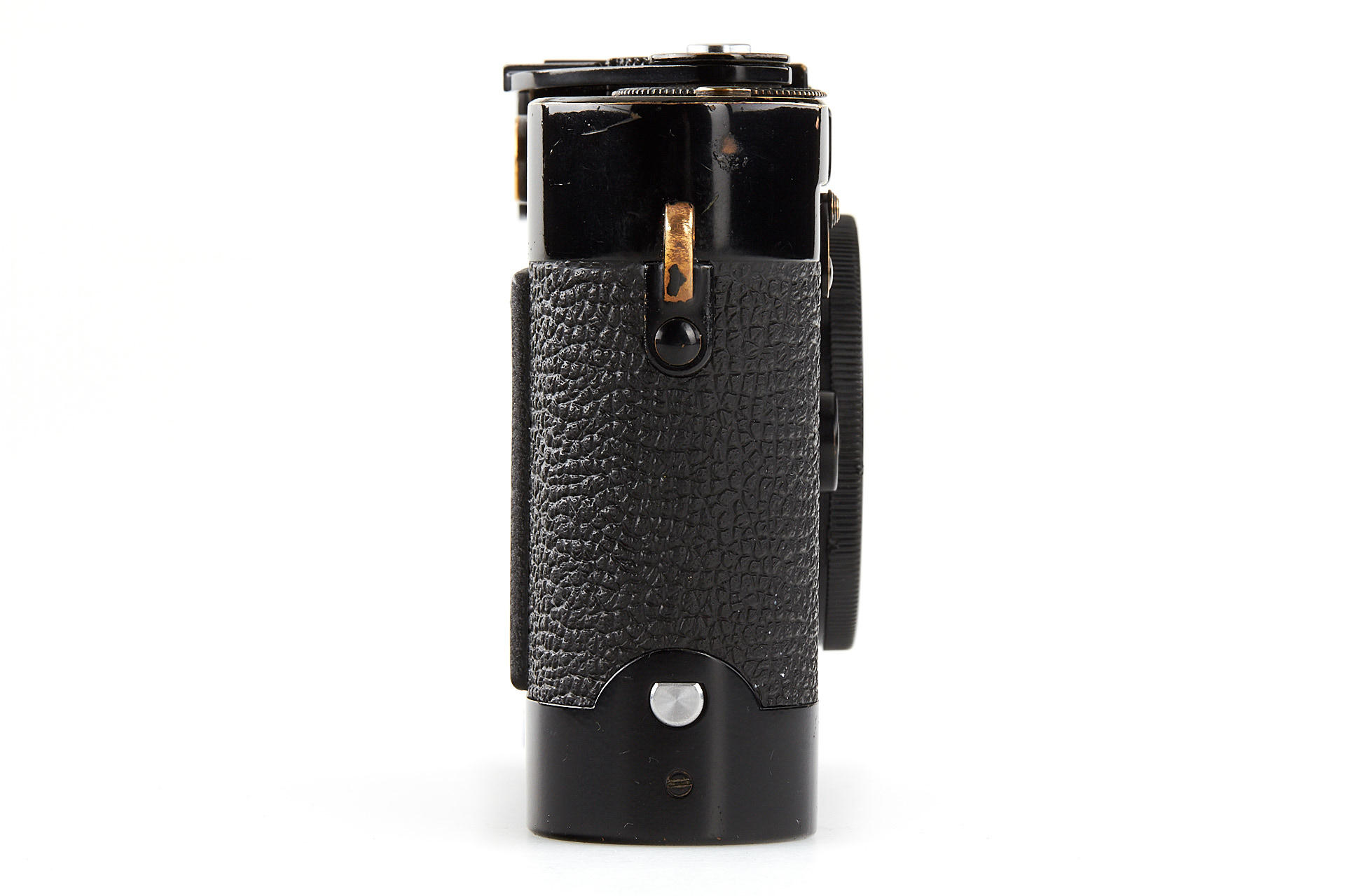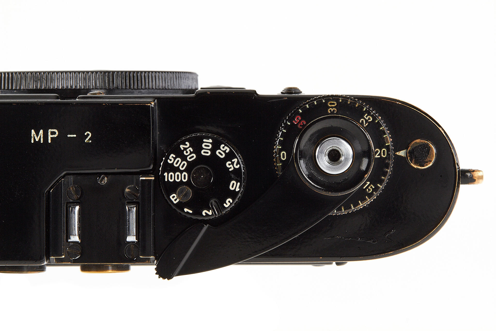 It was at the “Photokina” fair in Cologne in 1956 when the new Leica MP was introduced to the public. It was much more than a mere variation of the Leica M3. It was the only serial model which has an individual number, differing fundamentally from the usual fabrication numbers of all other Leica cameras. With a total number of only 412 units produced, the MP is among the rarest Leica models of all time. The black-paint version was produced only 141 times and acquired mainly by professional photographers. Many of the famous Magnum photographers used MP cameras. Today it is among the most sought-after Leicas of all. The idea which led to the production of the MP model came from several well-known American press photographers, who wanted to make use of the advantages of the Leicavit (available at that time for IIIf only) on their Leica M cameras as well. It was mainly the suggestion of Alfred Eisenstaedt and David Douglas Duncan which aroused the interest of Dr. Ludwig Leitz, who was the director of the development and construction department in 1955. The camera offered here is the second Leica MP ever made and the first one in black finish. It is in beautiful condition, with only minimal signs of use around the edges. During a service at Leitz it has received a later type back door (black paint), a quick film loading system and coupling for the New York electric motor drive (a very unusual upgrade!). The camera has been initially delivered to New York press photographer Bob Schwalberg (delivery date 08.10.1956). It comes with a Leicavit MP in black paint finish (with a Bob Schwalberg sticker inside). The camera is also included in Hasbroeck's '150 Classic Cameras' on pages 172-173. Included is a written expertise from Ottmar Michaely. It is one of the most important Leica cameras made. And probably the one that started the trend of black paint M cameras being used by professionals and loved by collectors nowadays.