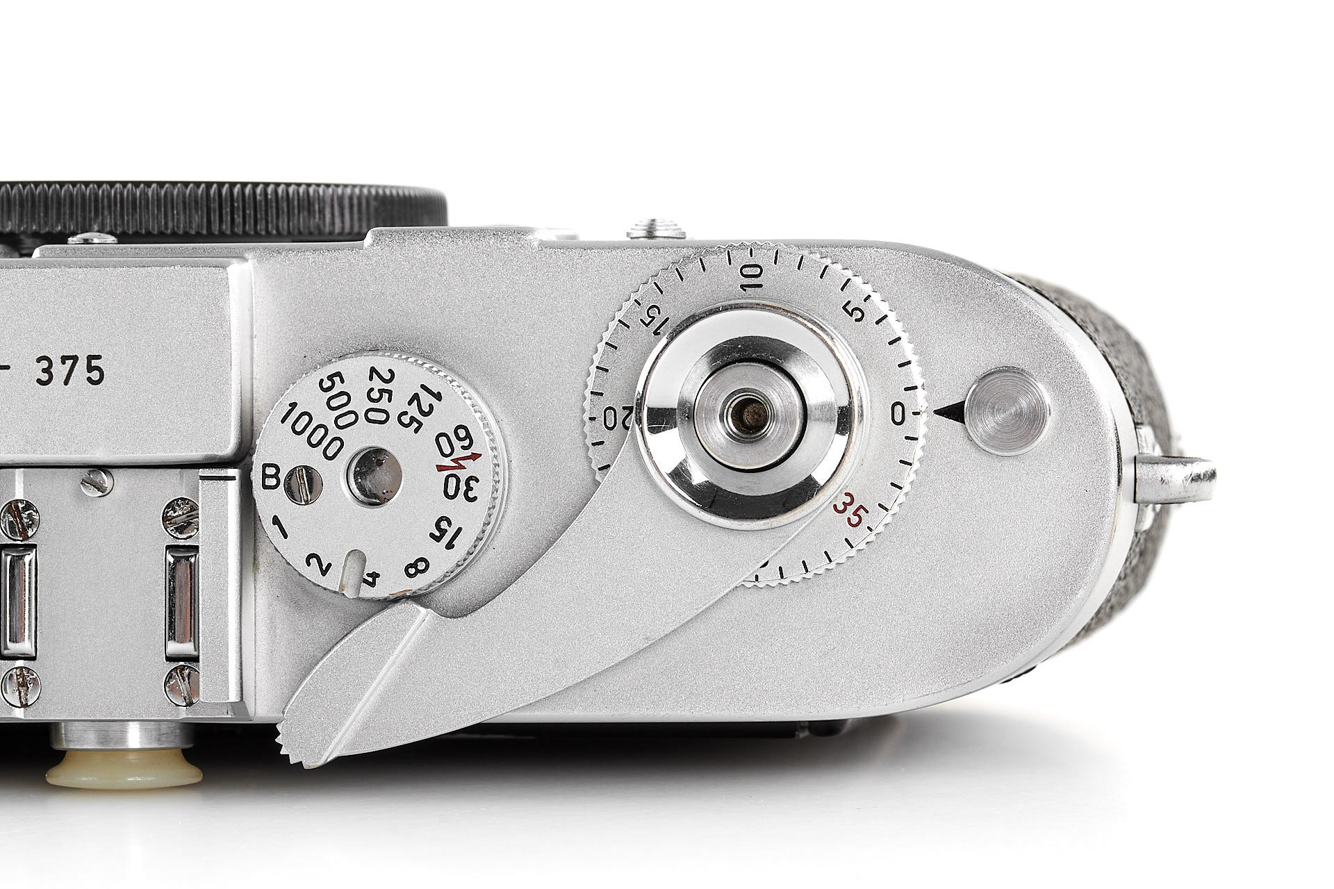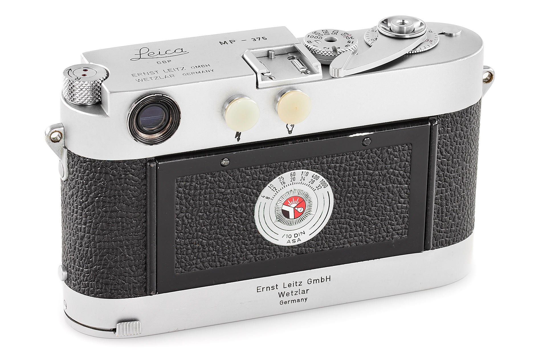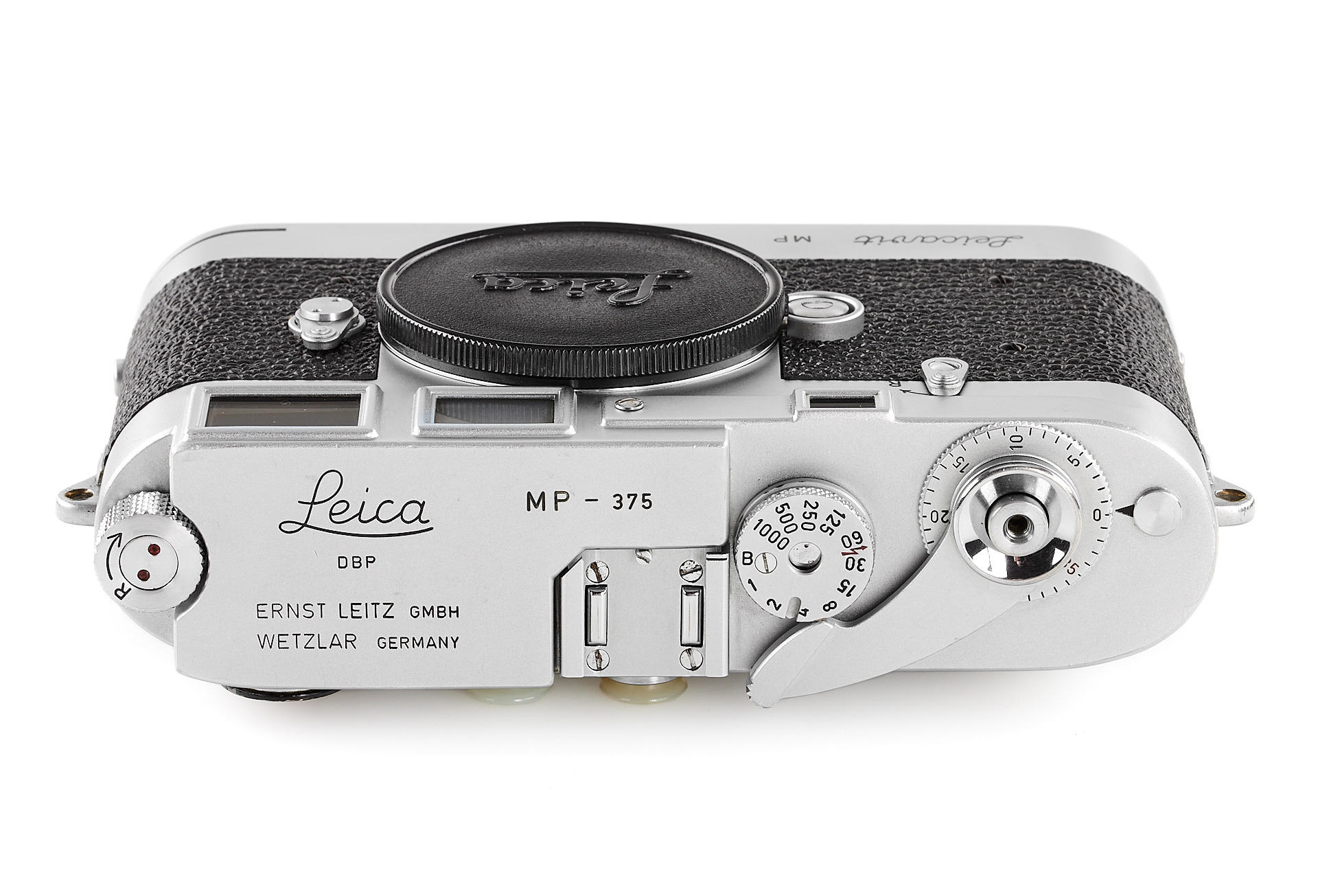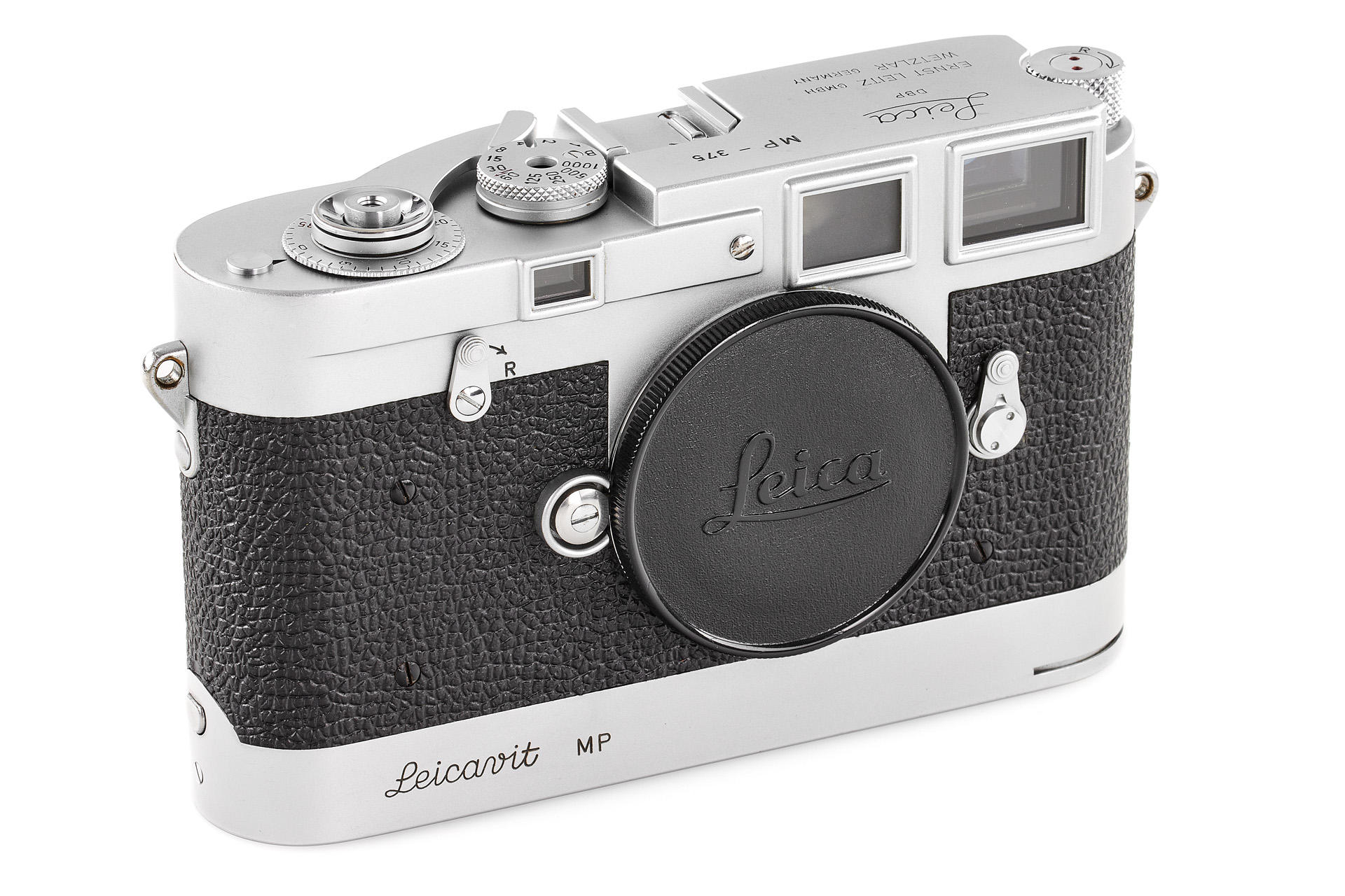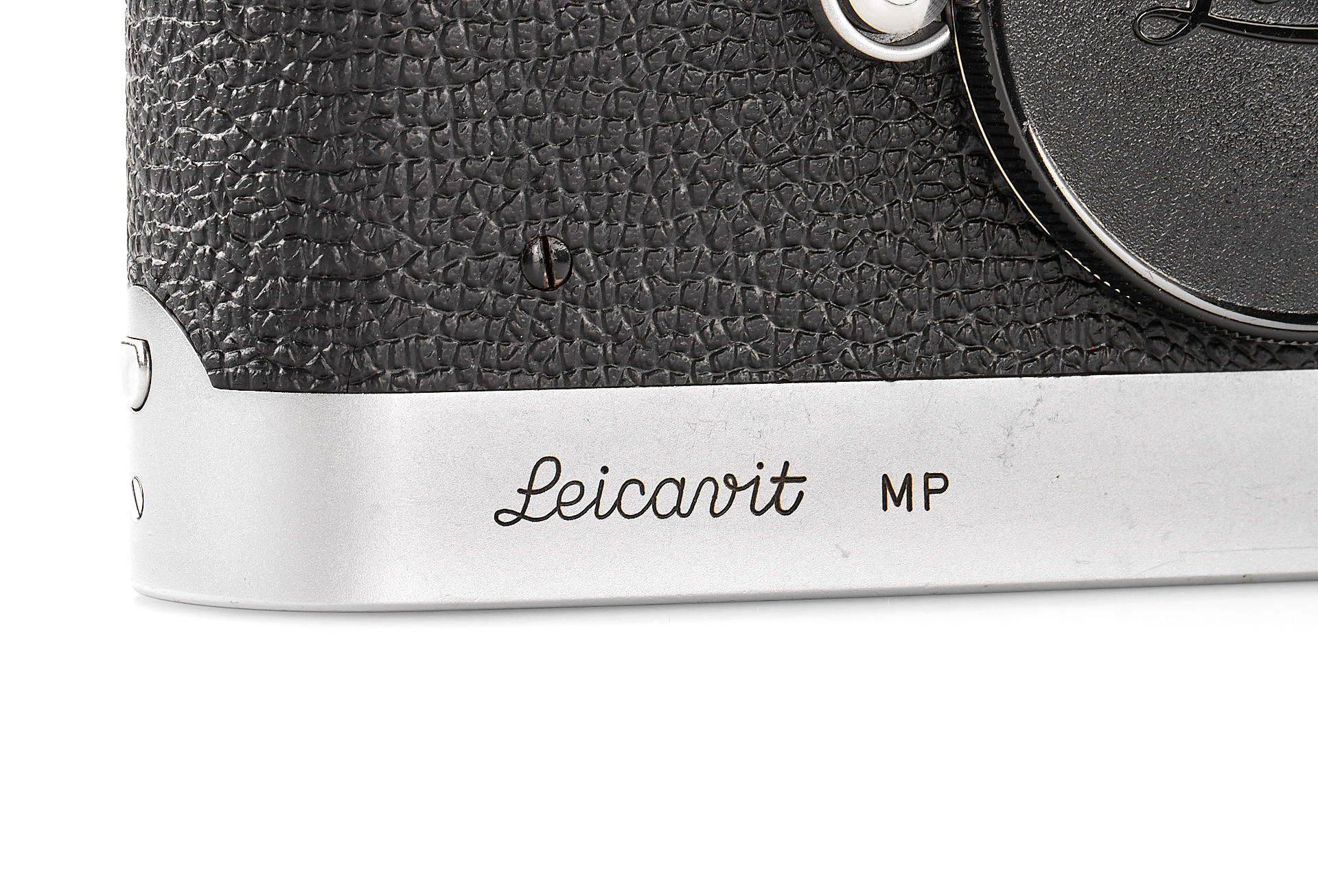 Very rare Leica MP in beautiful, original and perfect working order, clean finder and shutter, with matching Leicavit MP, matching chassis number P-375 engraved inside the camera - only around 260 chrome MP's were made, because of professional usage many were upgraded with later parts during factory repairs, this rare camera is in 100% original never restored or updated condition!