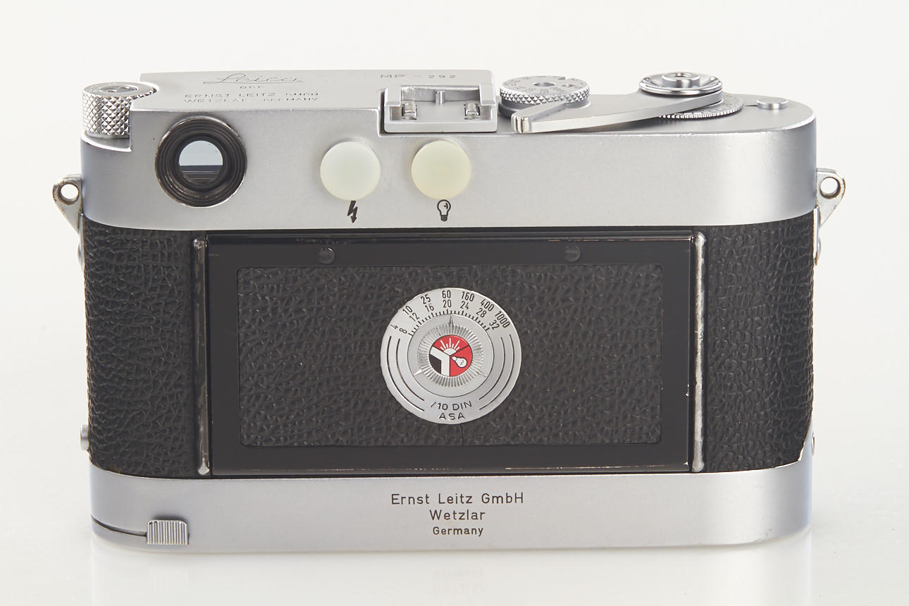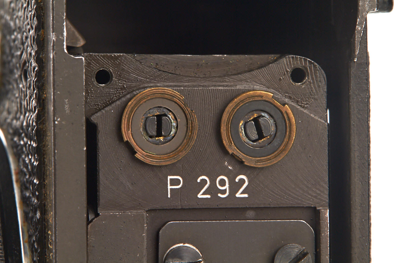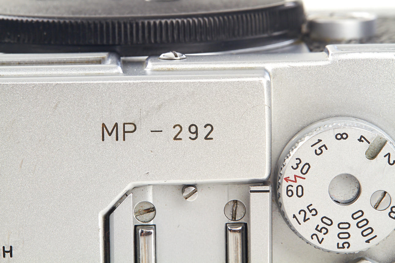 Fully original chrome MP, chassis engraved with matching number “P-292”, with 3 notches on film stage, in perfect working condition with clean finder, chrome Leicavit MP in original condition. It is very hard to find an original Leica MP with all early features, e.g. body without self-timer and with early version of lugs, matching back door.