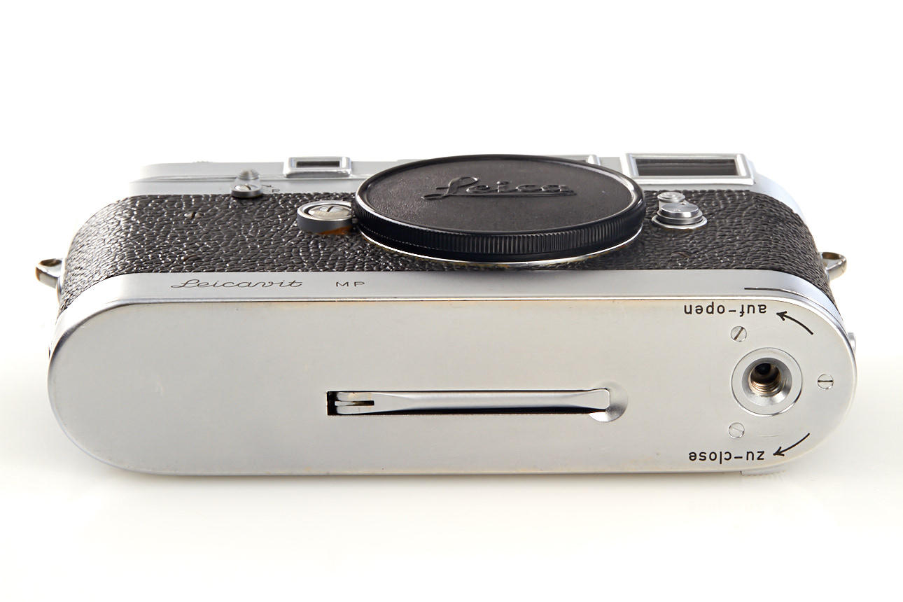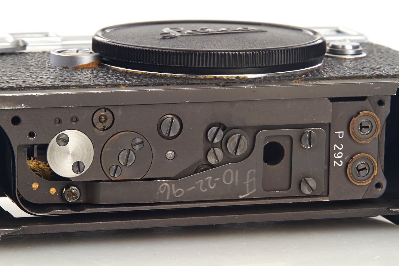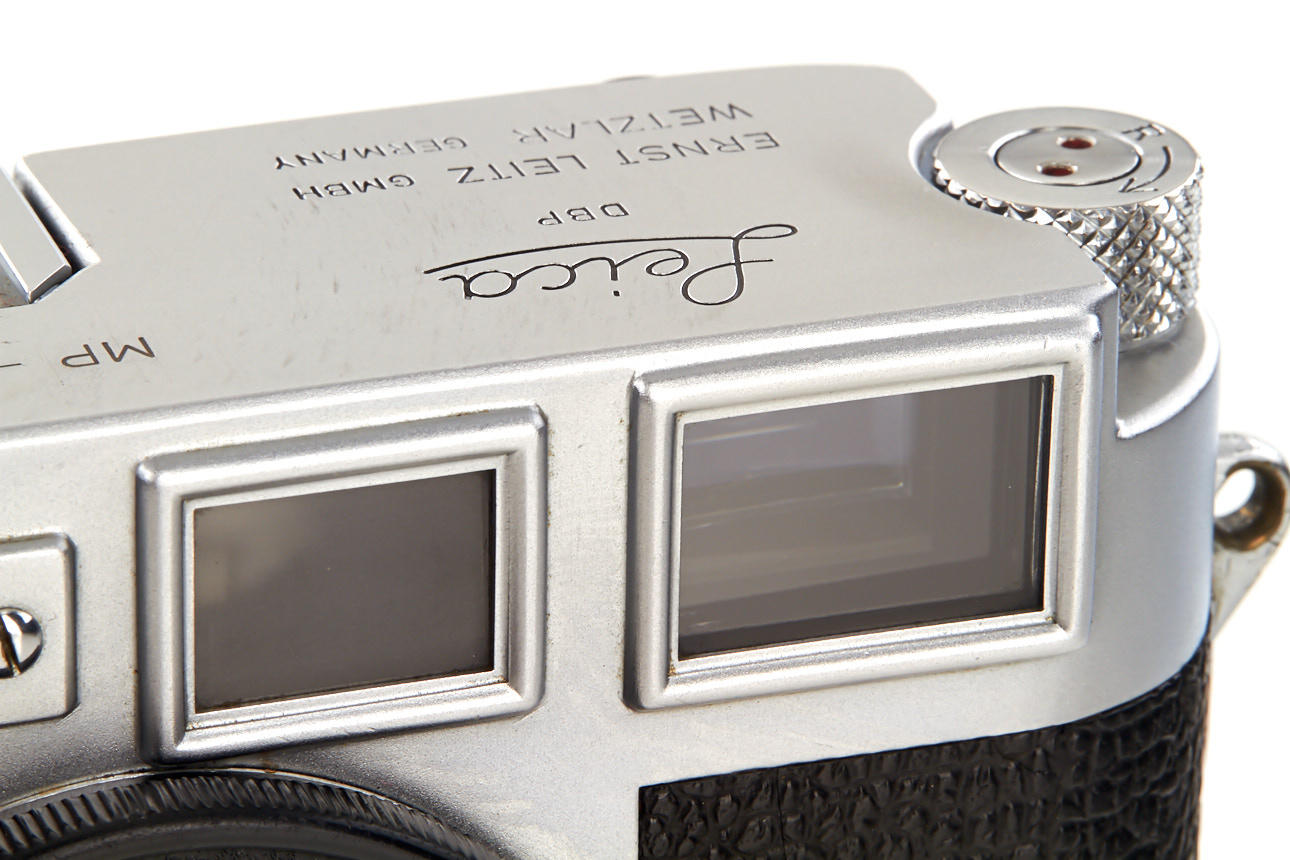 Fully original chrome MP, chassis engraved with matching number “P-292”, with 3 notches on film stage, in perfect working condition with clean finder, chrome Leicavit MP in original condition. It is very hard to find an original Leica MP with all early features, e.g. body without self-timer and with early version of lugs, matching back door.