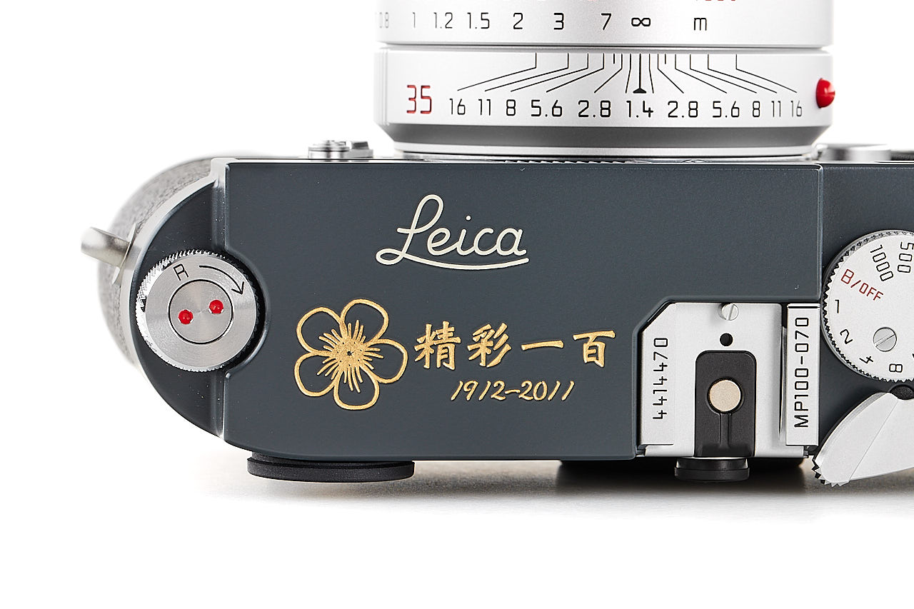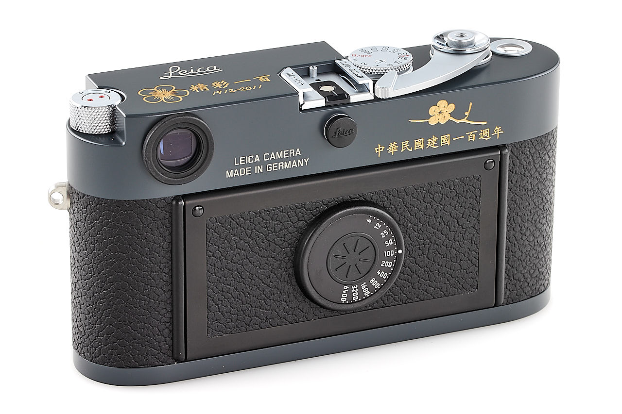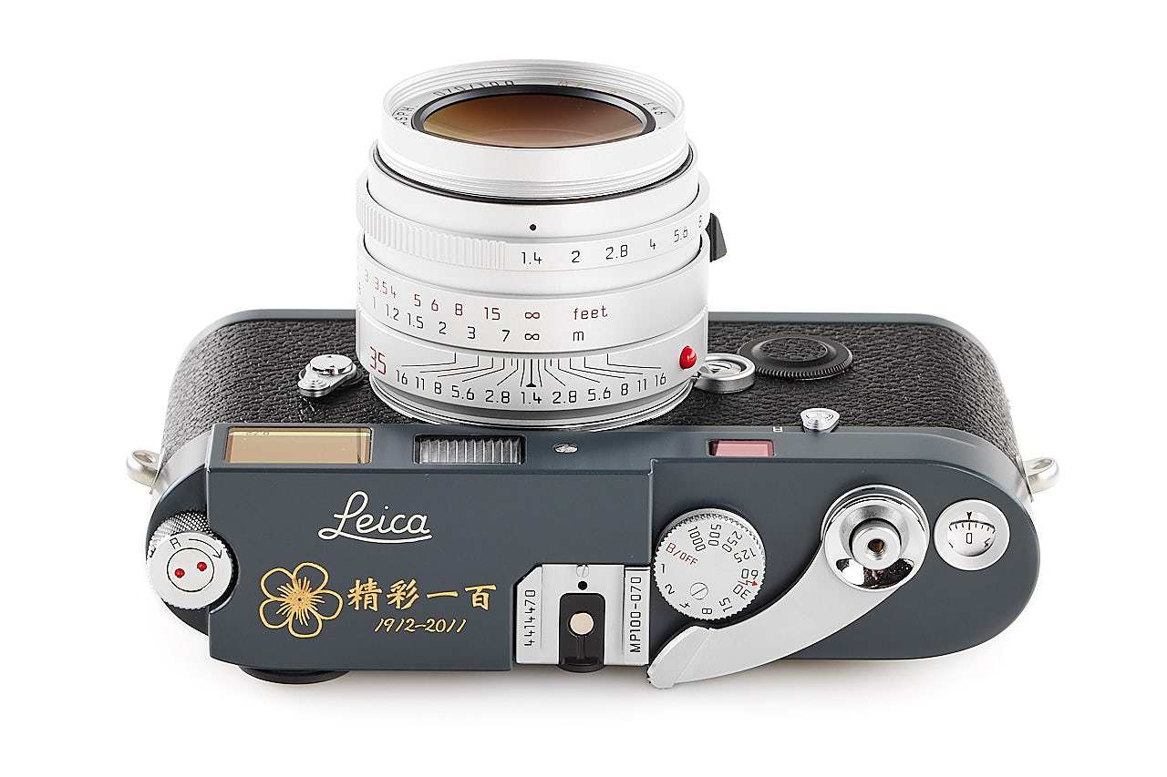 On the occasion of the Republic of China Centennial in 2012, Leica Camera AG produced 100 examples of special Leica MP, finished in gray (colour inspired by the famous Leica M2 gray), and engraved with plum blossom on the top plate. The offered set is in mint, unused condition and includes a body no.4414470 with matching Summilux -M 1.4/35mm ASPH. no.4320395 (matching special number 070/100, engraved with the plum blossom on the hood), complete with all papers accessories and boxes. It is, for sure one of the most attractive modern Leica editions.