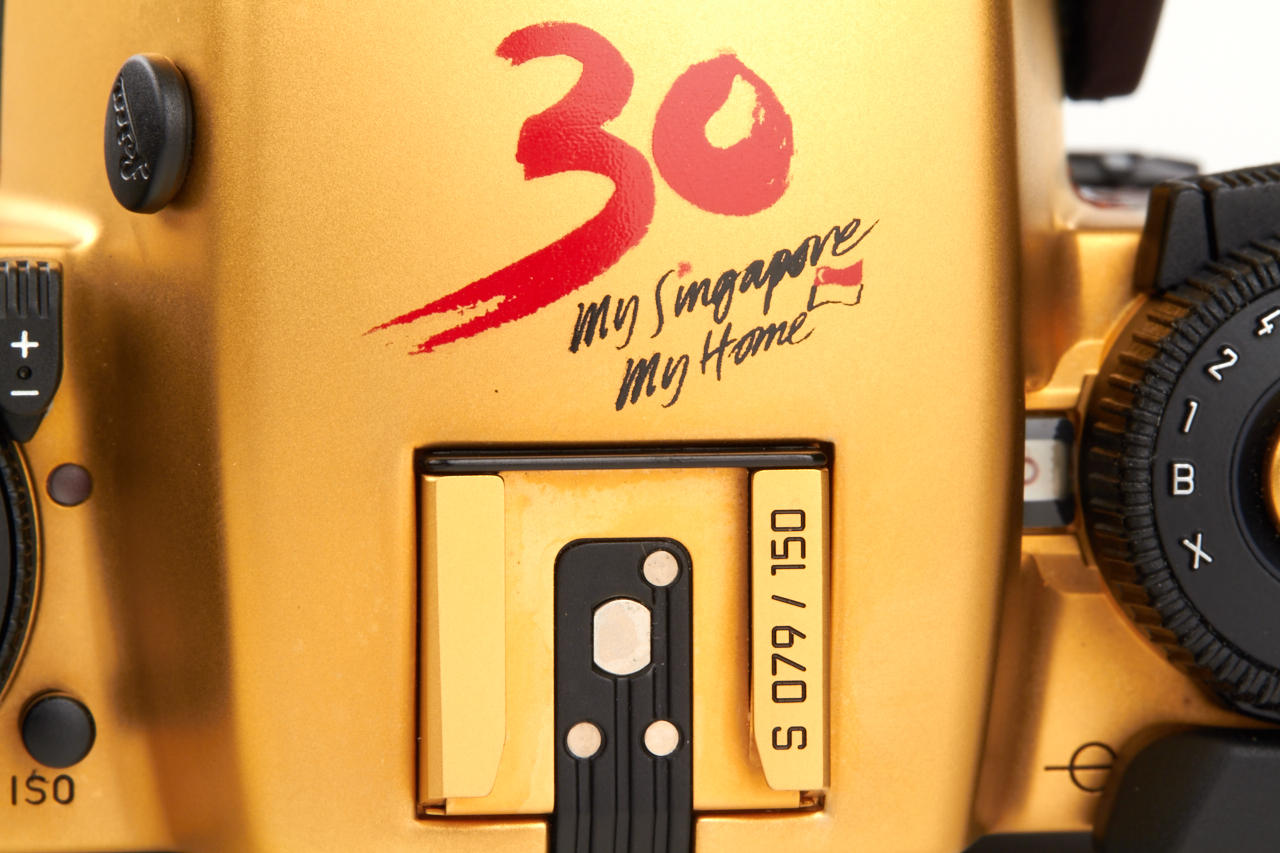 very rare special edition issued to celebrate the 30th anniversary of the Republic of Singapore (only 150 sets have been made), with gold-plated camera no.1932780 and gold-plated Summilux 1.4/50mm no.3702631, in wooden presentation box, with all accessories and papers, in original maker's box