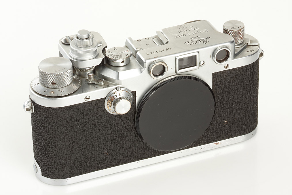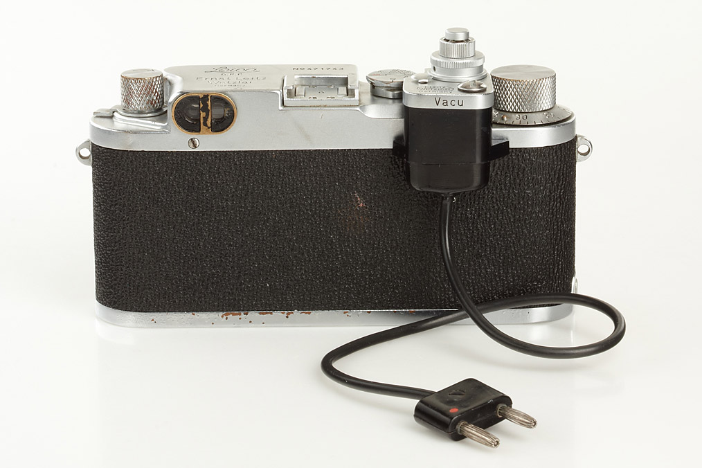 (1) war-time IIIa body no.342842 with matching Elmar 3.5/5cm no.511234, (2) war-time IIIc body no.384064 with coated Elmar 3.5/5cm no.638492, (3) post-war IIIc body no.471743 with Vacu flash attachment, cap (3)