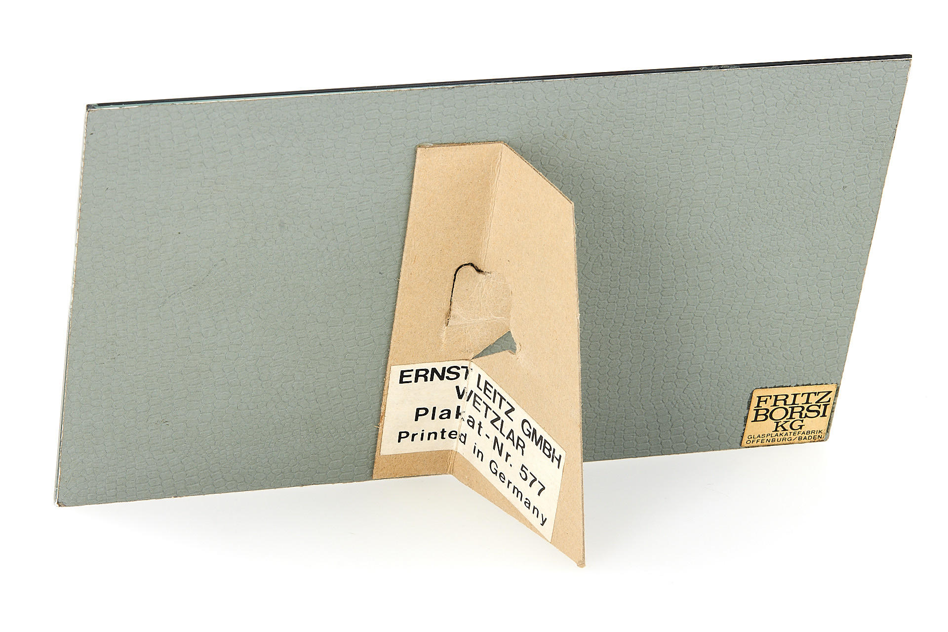 an original glass counter sign 'Leica Service', in excellent condition, c.11.5x19cm