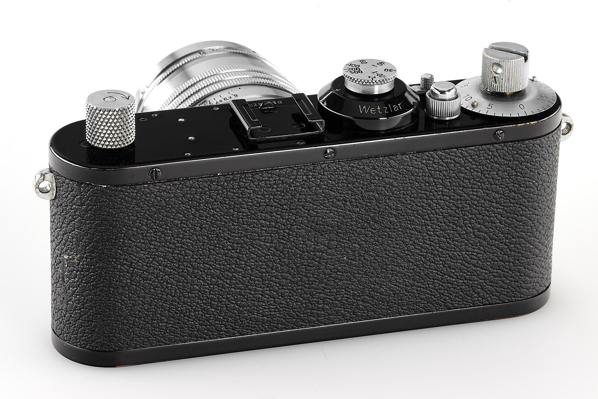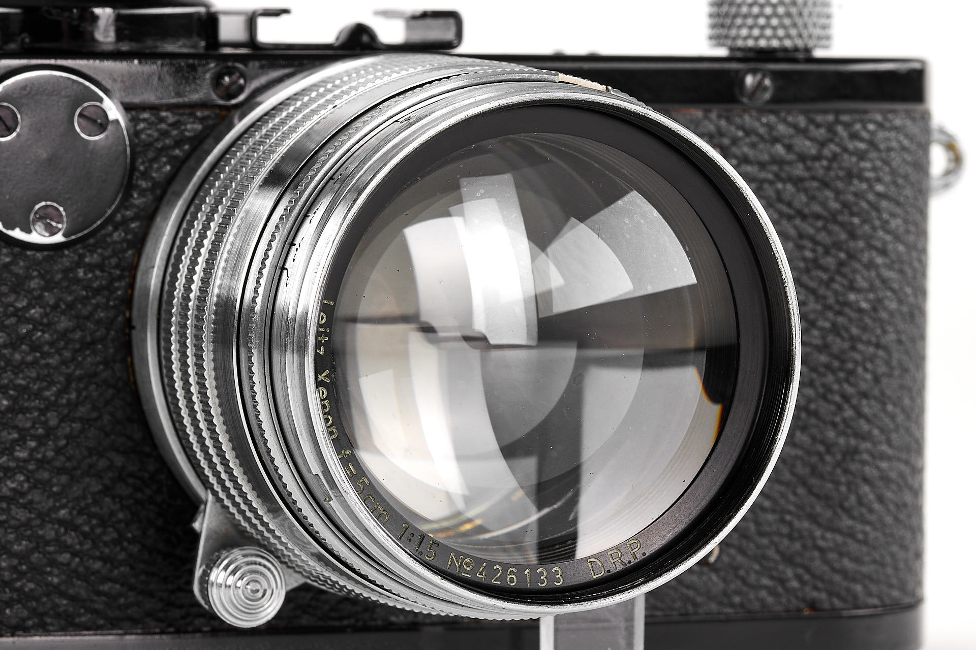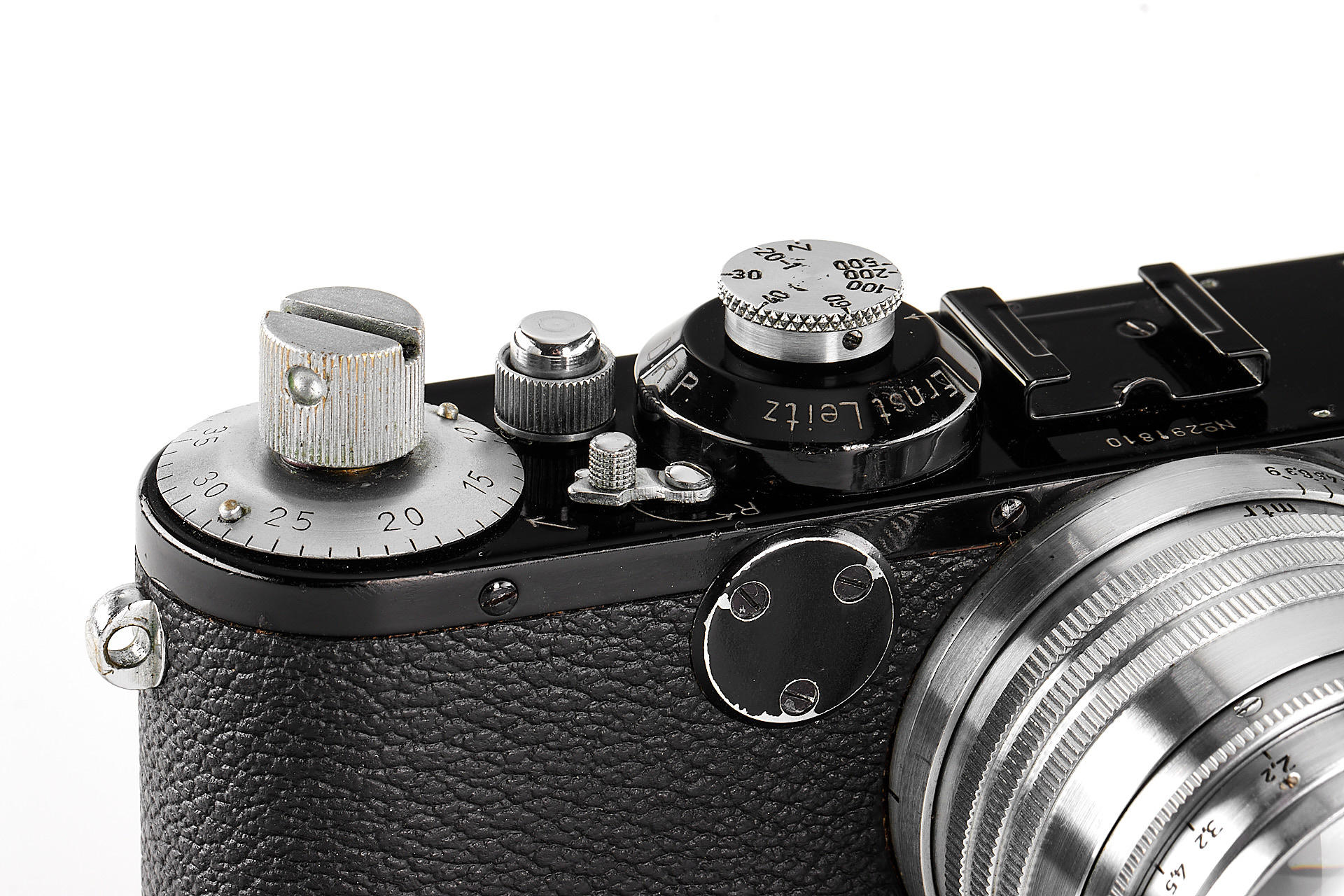 an interesting, factory modified Leica Standard, without the viewfinder, no slow speeds, modified winding knob, most probably intended to use in an X-Ray device, with clean Xenon 1.5/5cm no.426133