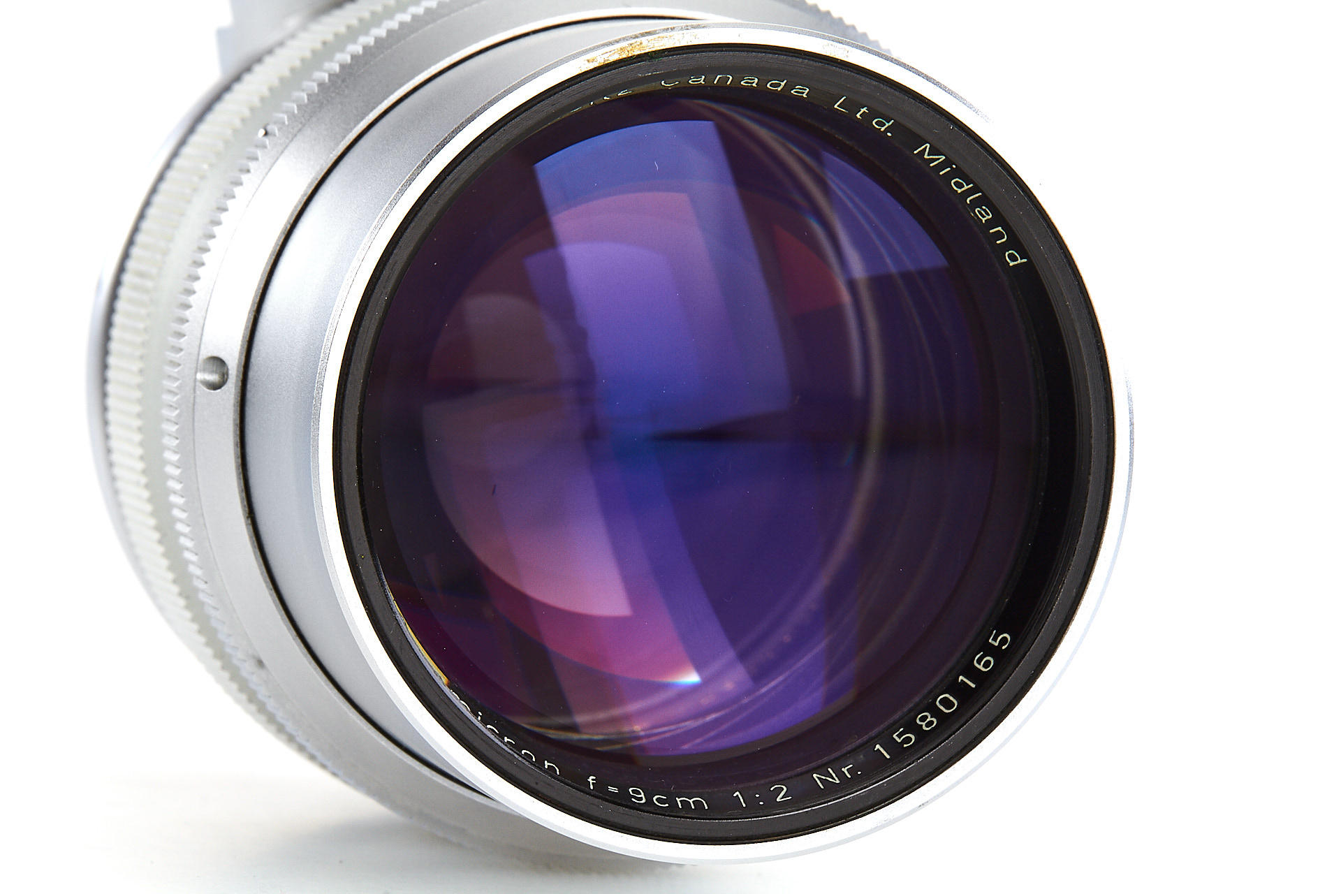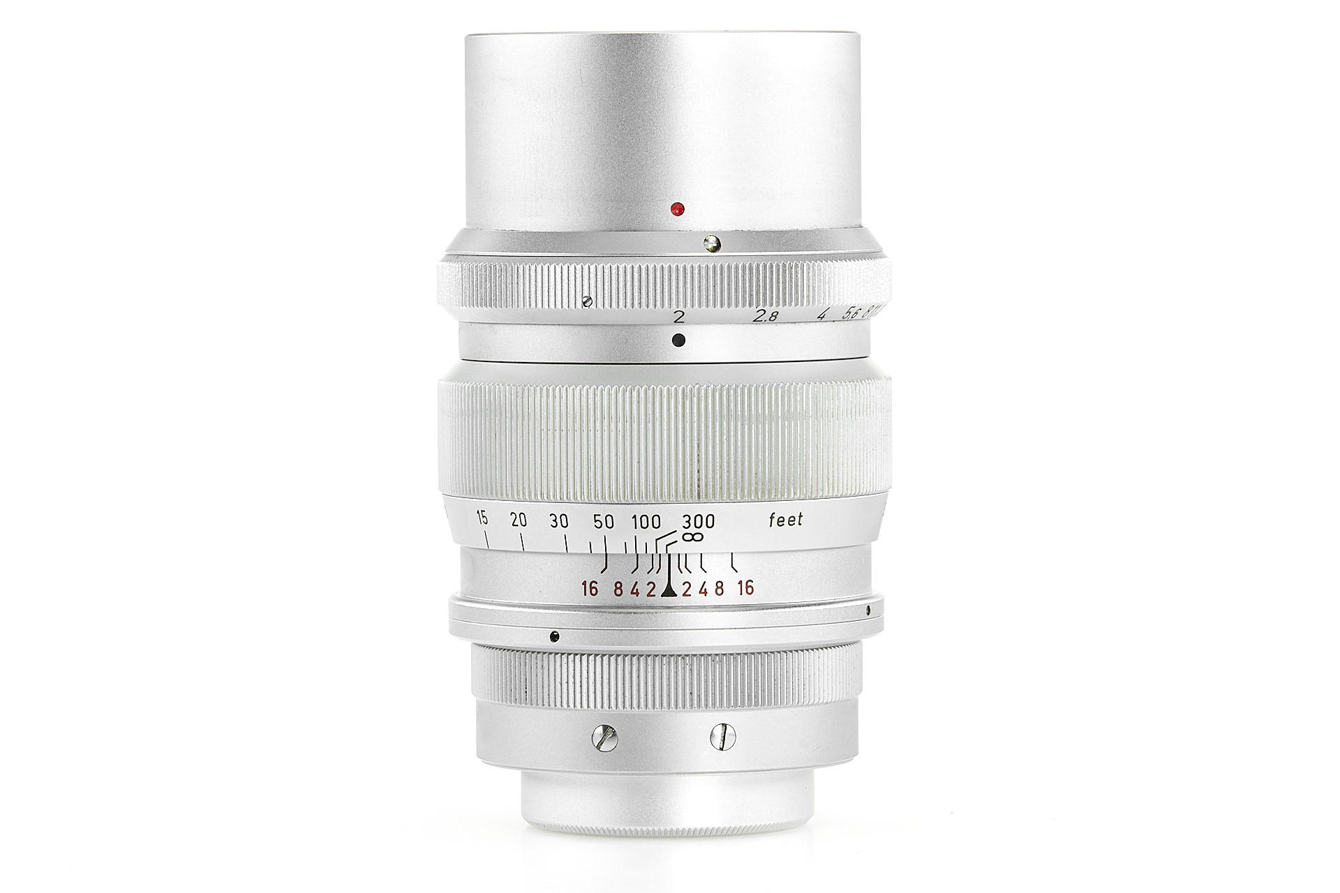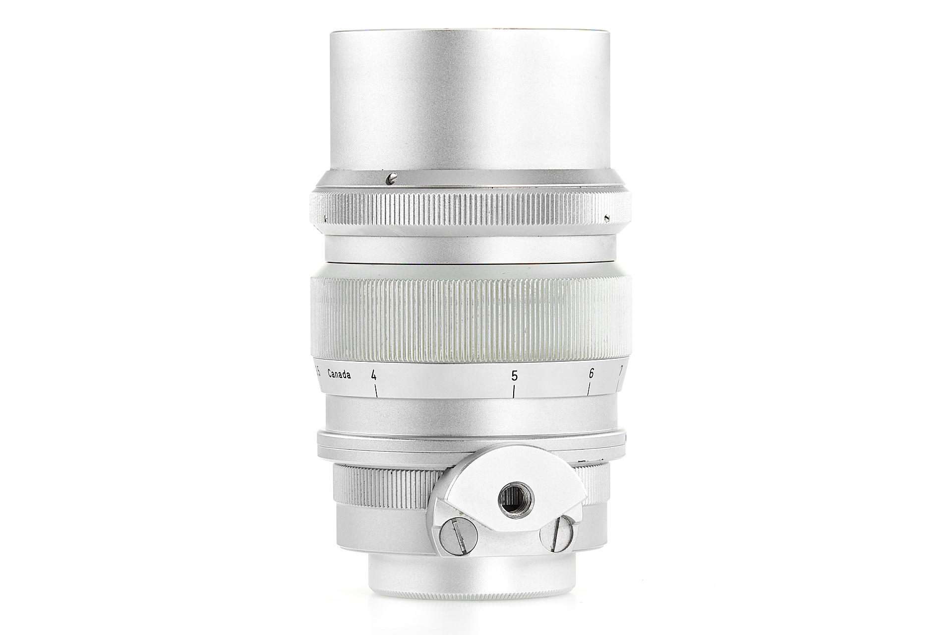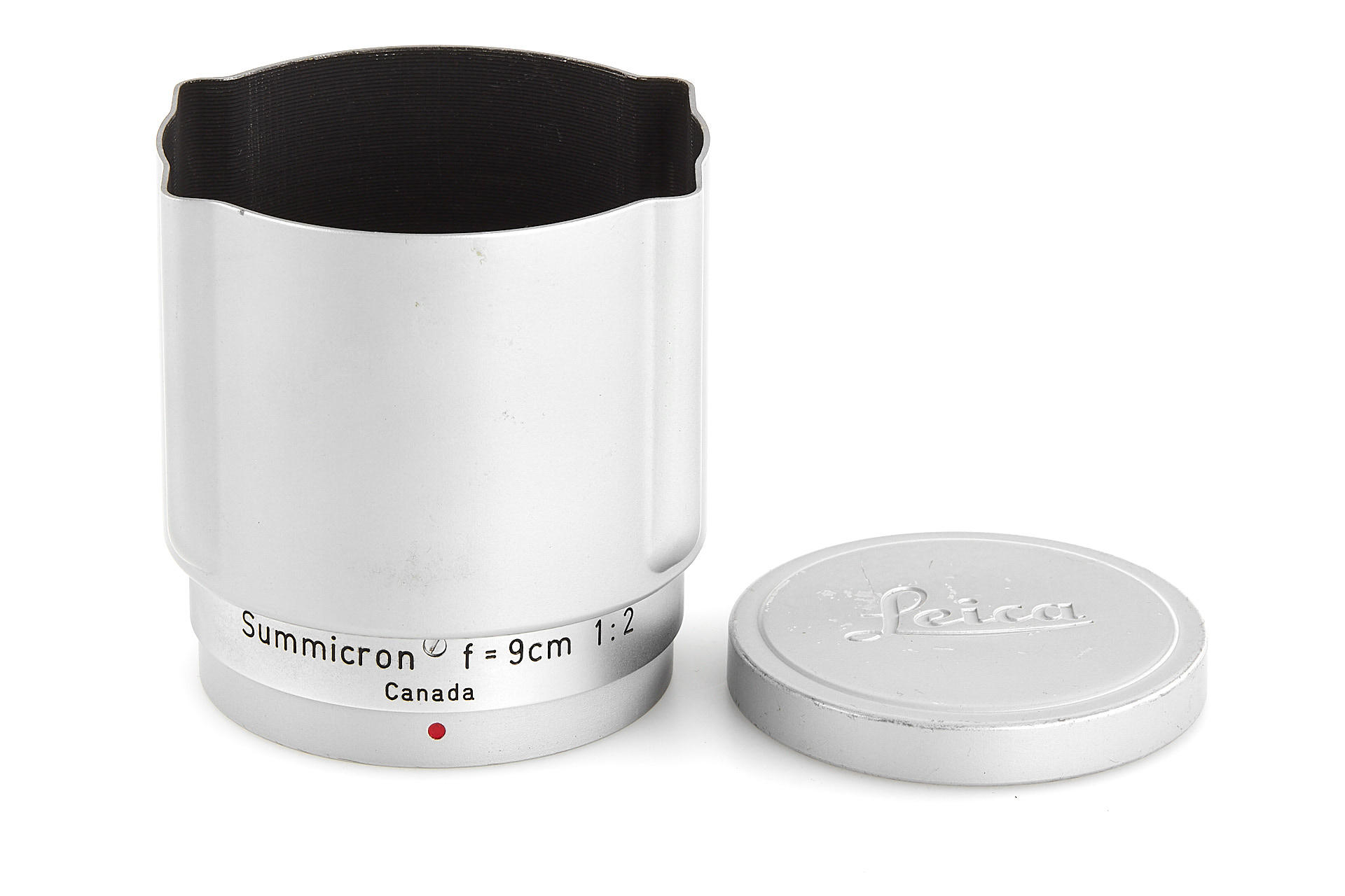 rare first type screw-mount Summicron, made in Canada, in excellent condition, with original hood, both caps, leather keeper