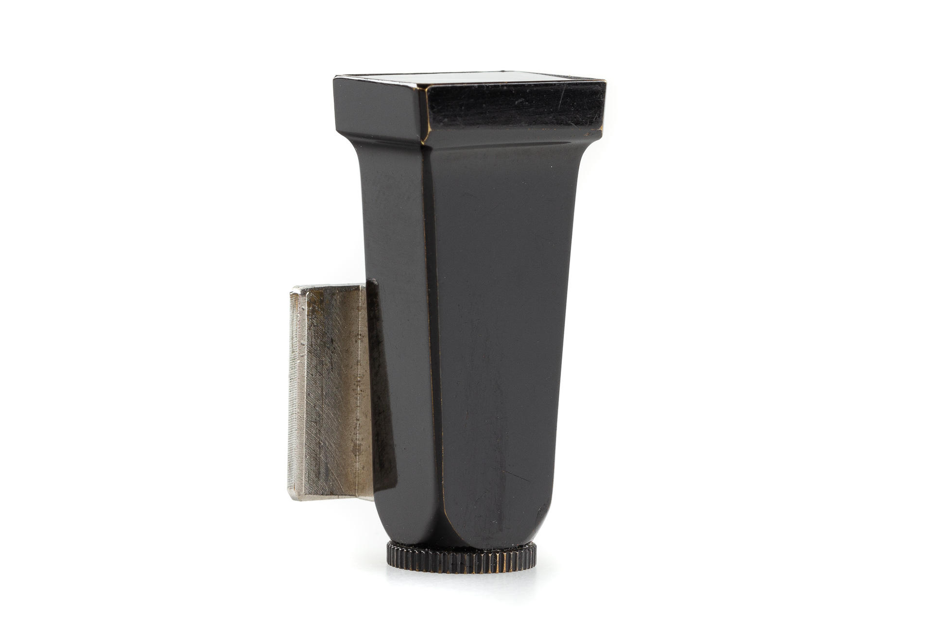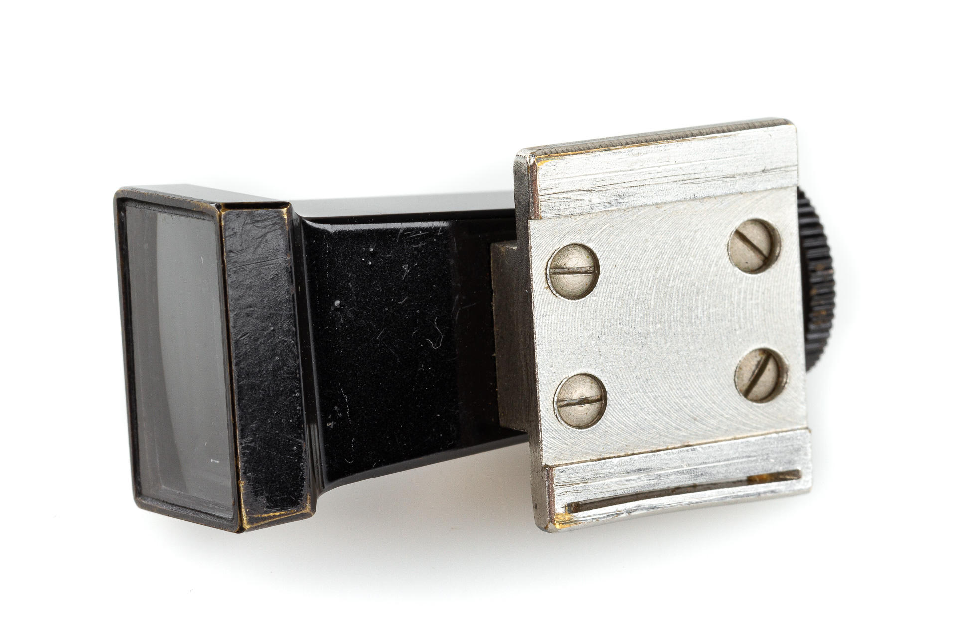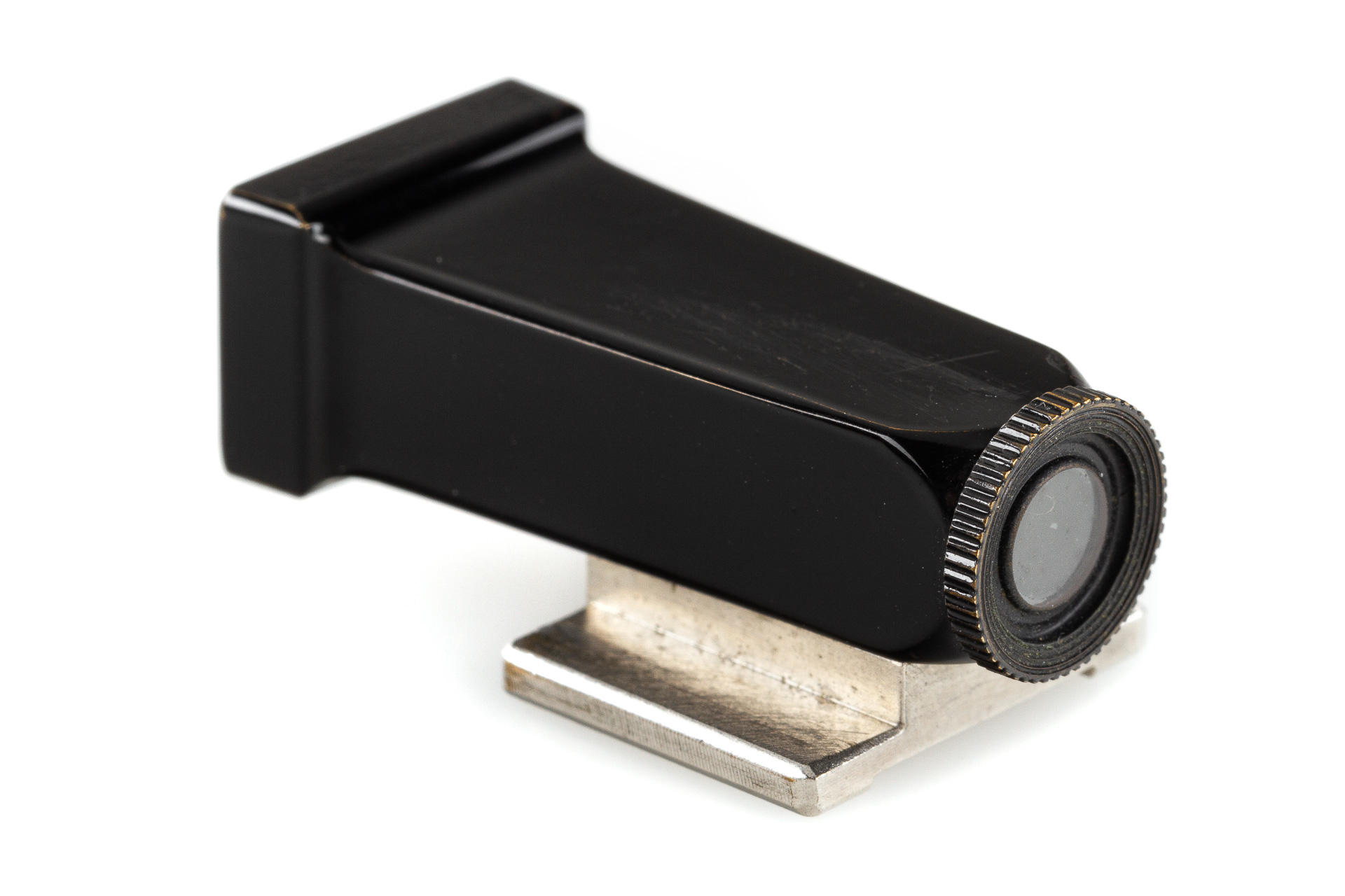 3.5cm finder, early type with a flared end, chrome foot, in beautiful condition, with maker's box