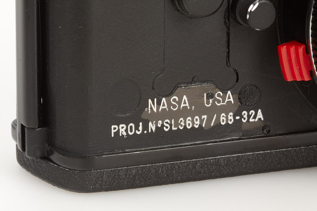 NASA Leicaflex with black crinkle finish and without leather covering, shutter speed dial and rewinding knob modified for use with gloves, 3 special NASA engravings (front engraved 'NASA, USA Proj.NoSL3697/68-32A', back door engraved 'Proj.NoSL3697/68-32A NASA, USA', front of prism engraved 'N6D CAMERA', in very fine condition - one of only two NASA Leicaflex cameras known to exist !