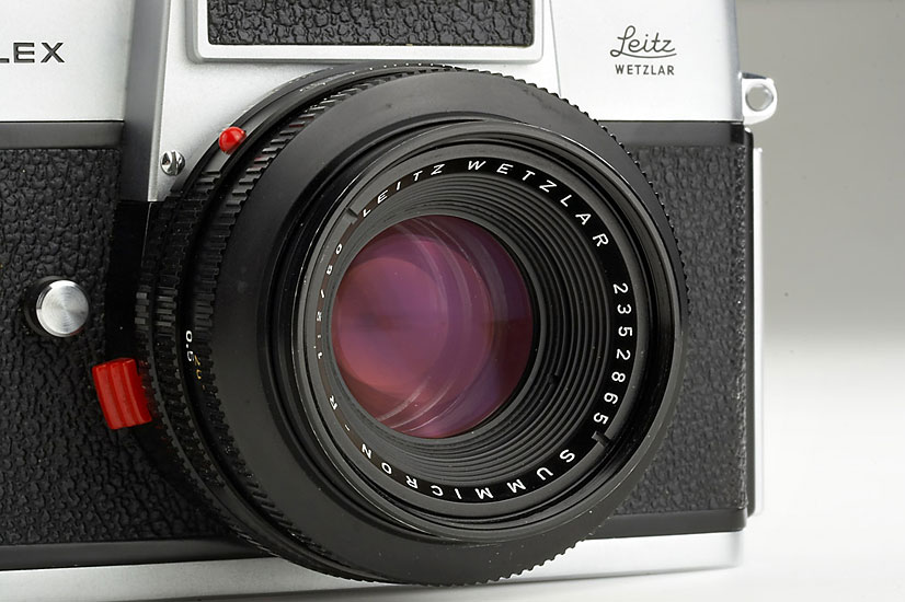 almost mint body with 3 matching and perfect lenses (all 2-cam): Summicron-R 2/50mm no.2352865 (filter, hood, maker's box), Elmarit-R 2.8/35mm no.2186789 (hood, caps), Elmarit-R 2.8/135mm no.2467243 (caps)