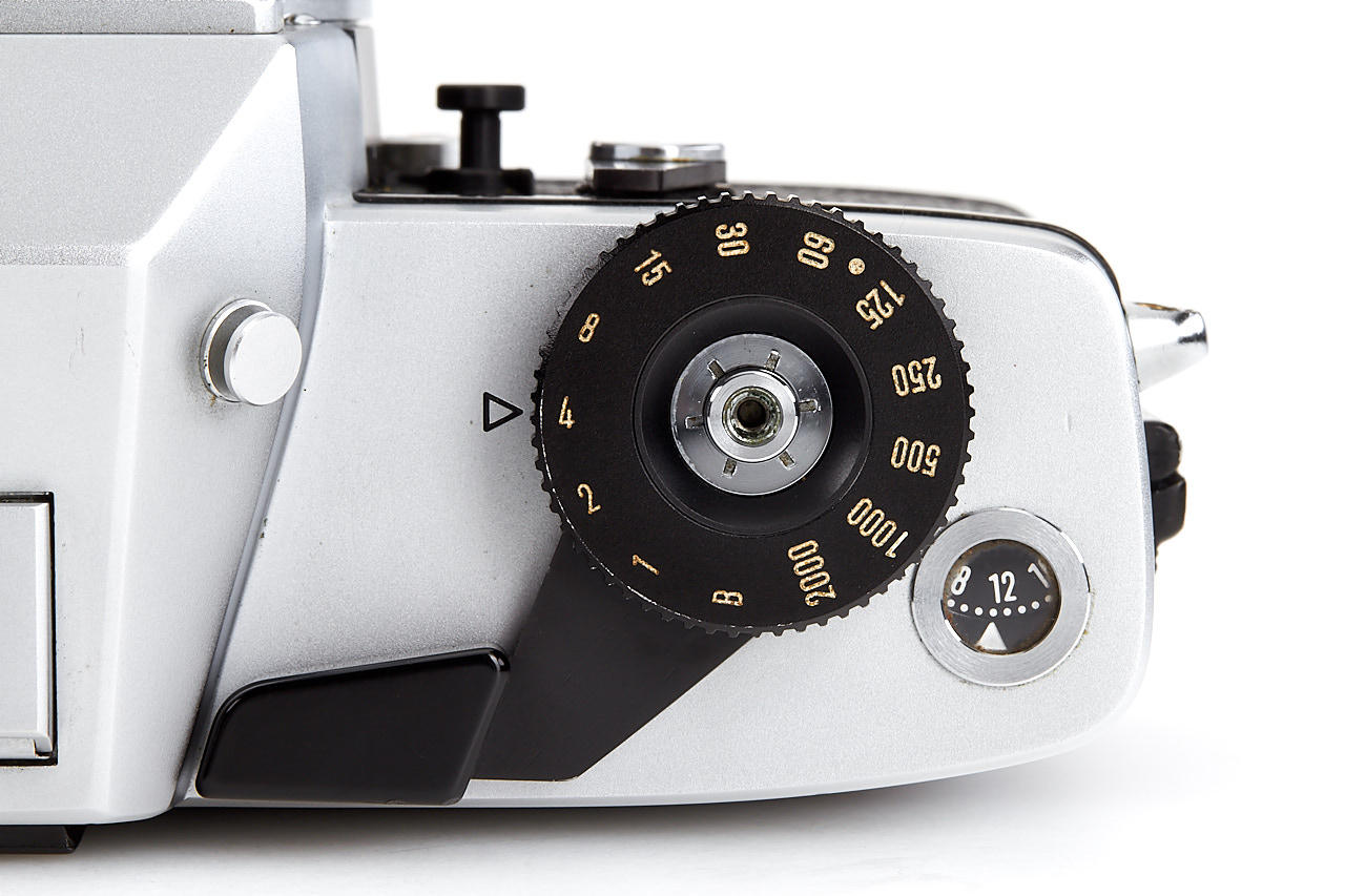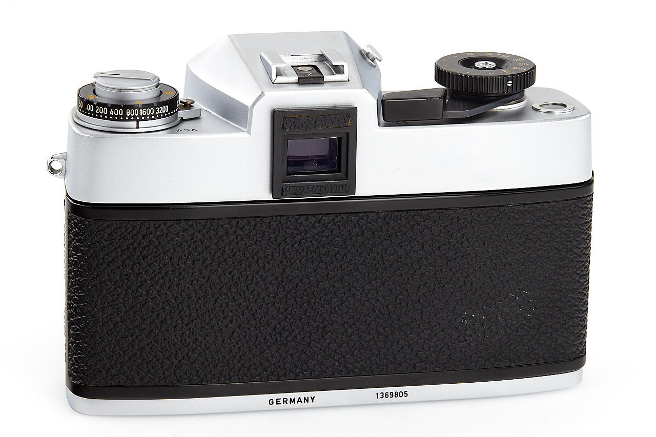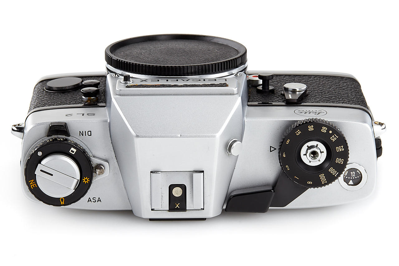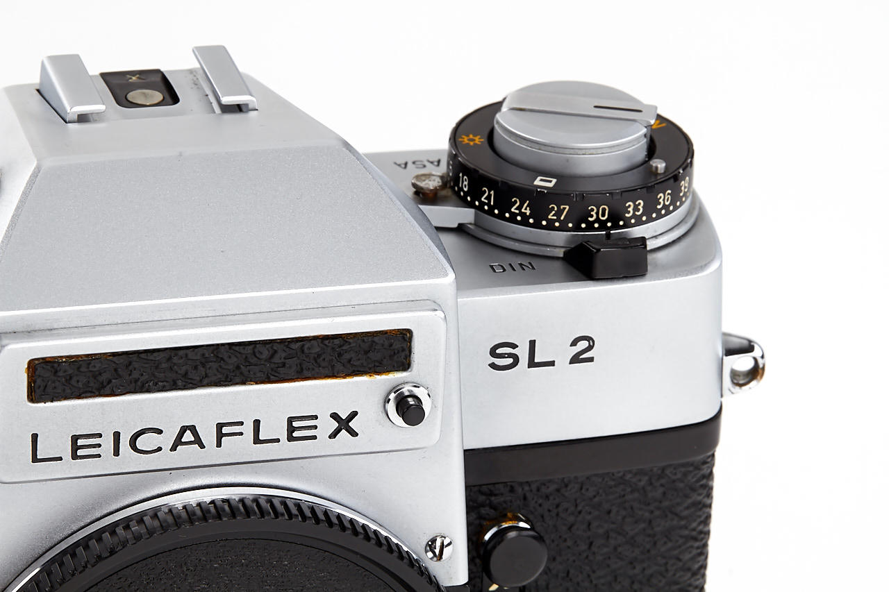the 5th SL2 made (production started with serial number 1369801), in near mint condition, with only slight signs of use on base plate and near the strap lugs, with body cap