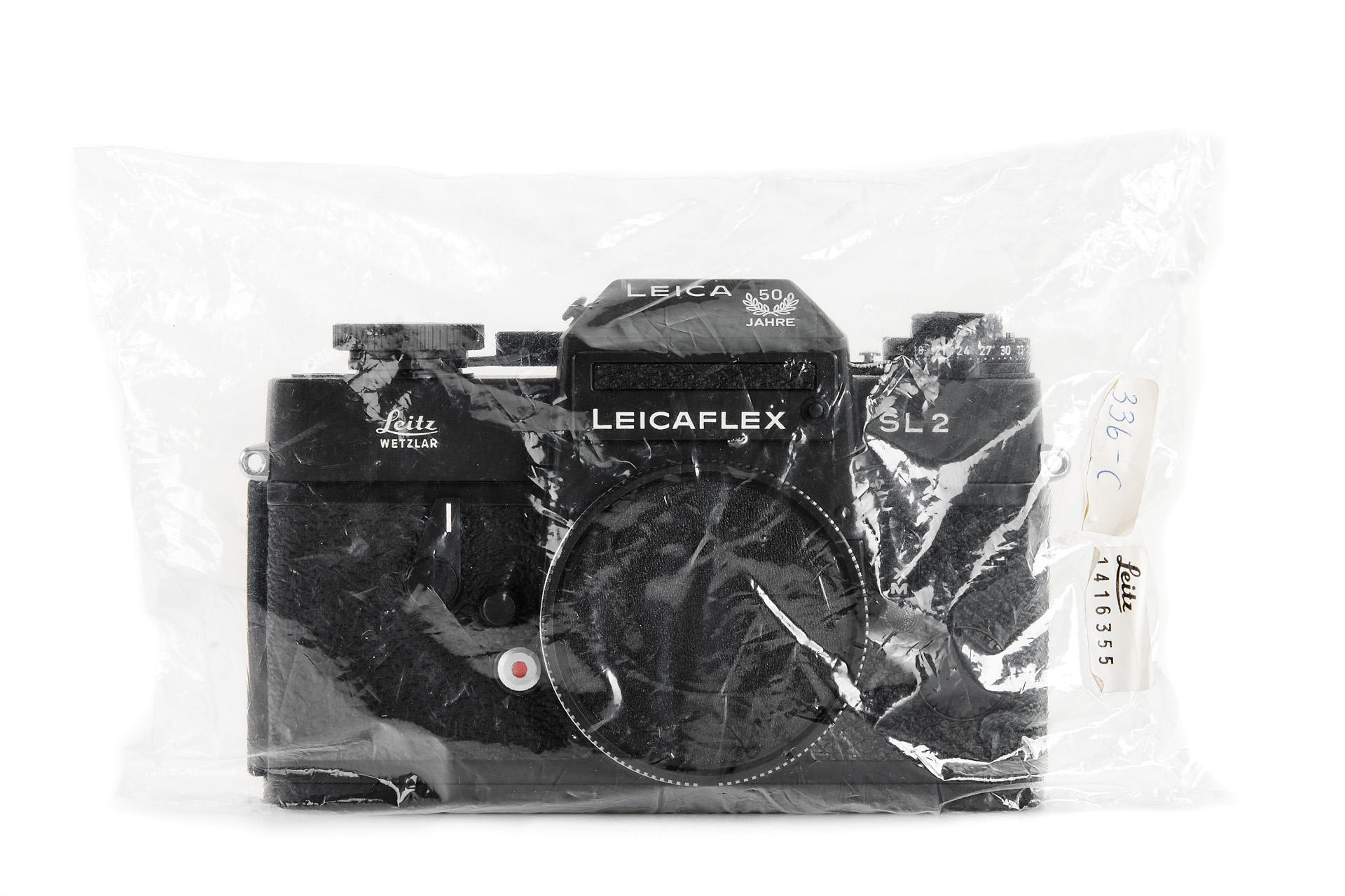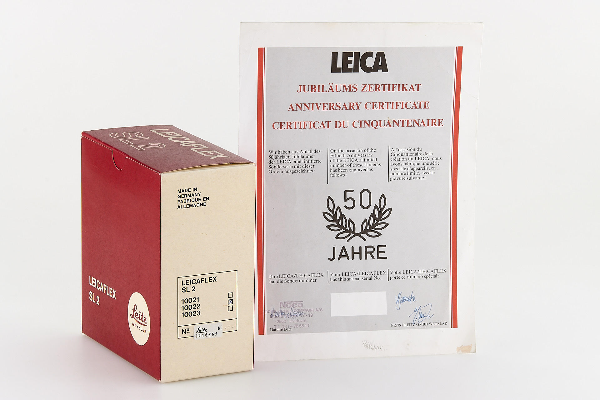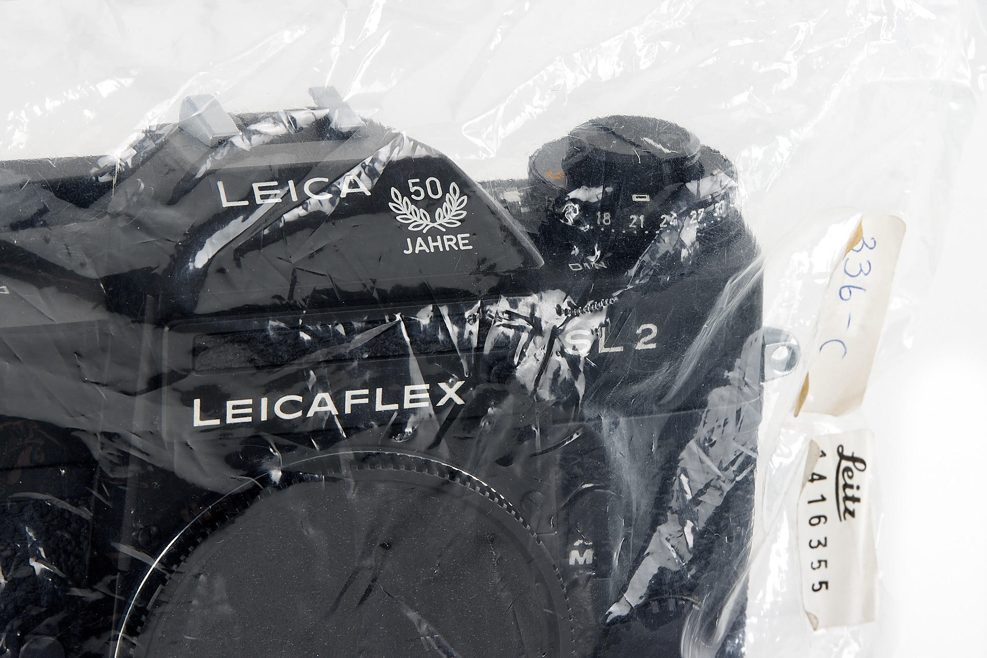 limited edition SL2 issued for the 50th anniversary of Leica, body number 1416355, in mint, unused condition (still wrapped in plastic), incl. warranty card, strap, maker's box and unnumbered certificate