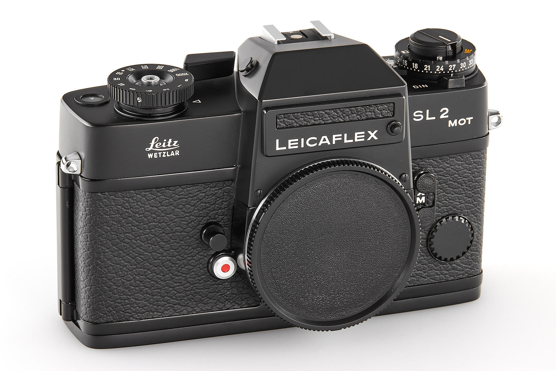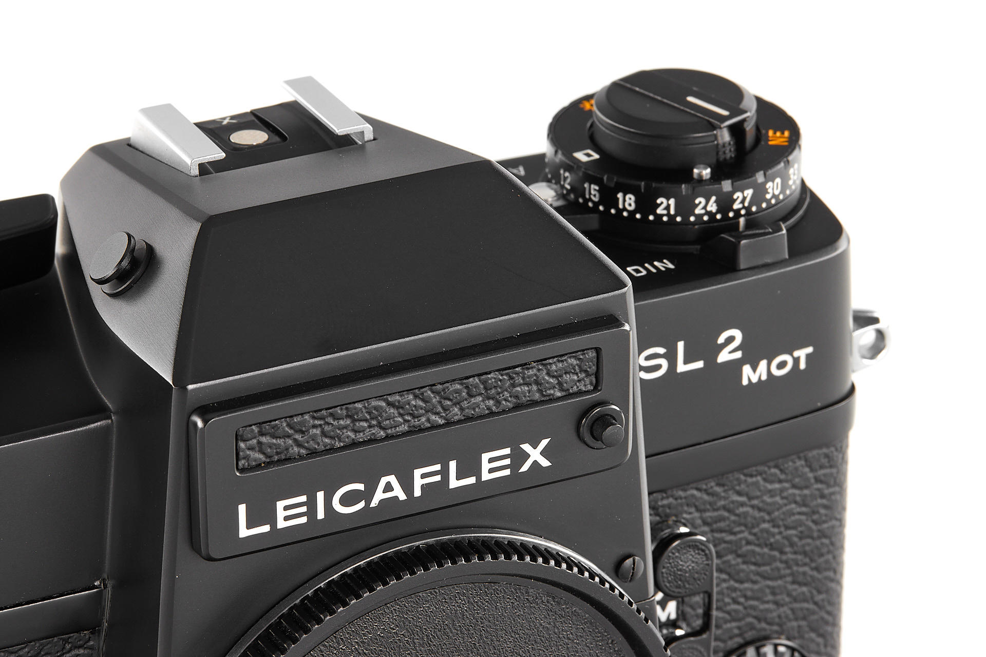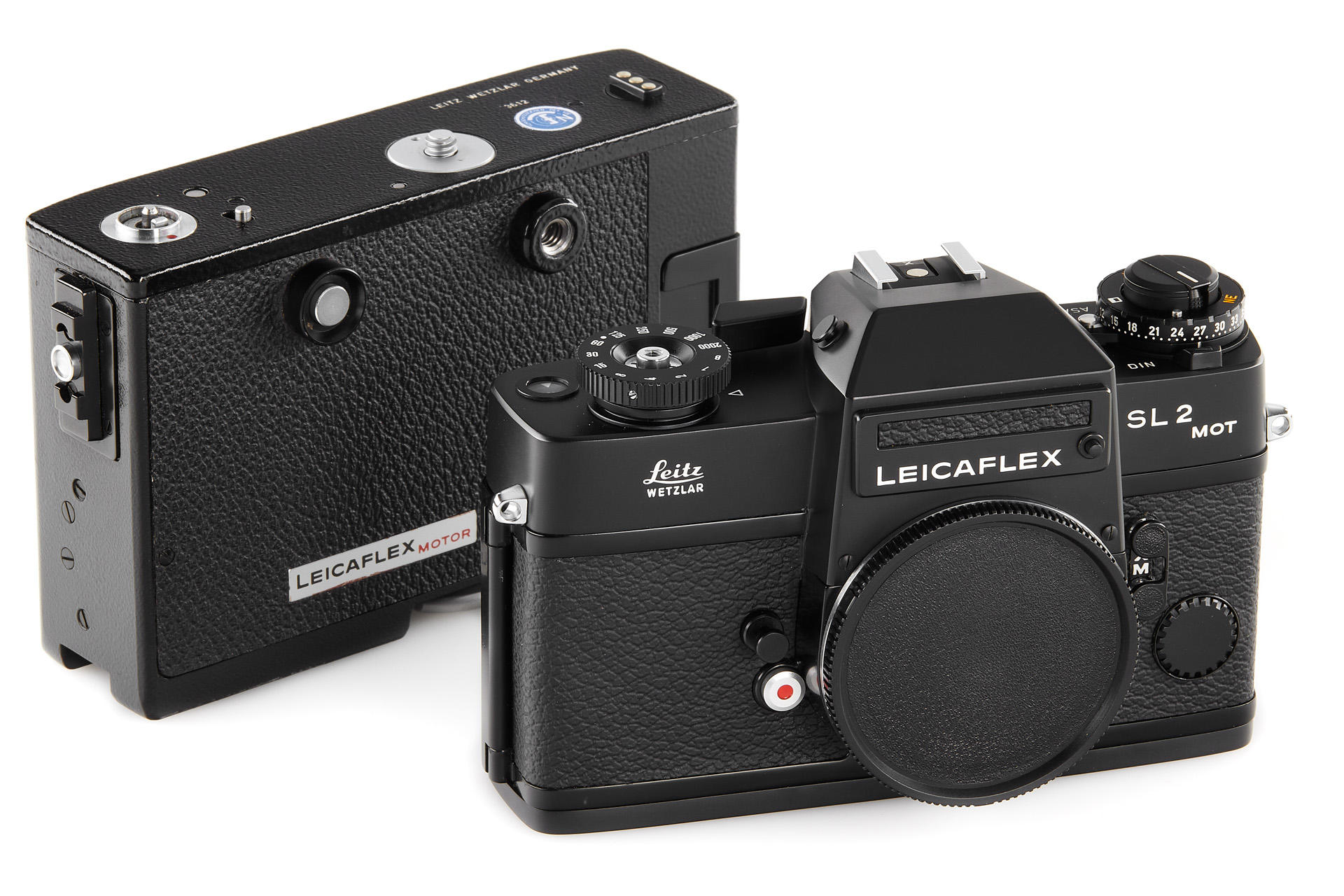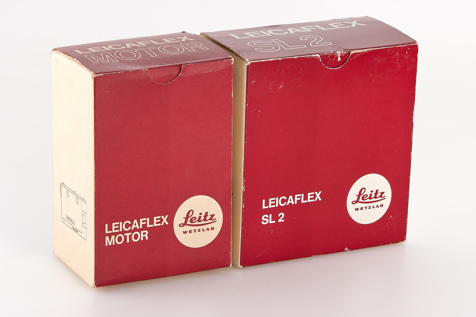 Very rare version (1020 pieces produced) in mint condition and working order, with body cap, leather strap, papers and instructions, in matching maker's box, together with Leicaflex Motor 2nd type no.3612 in very good cosmetic condition (not tested) with French instructions and maker's box