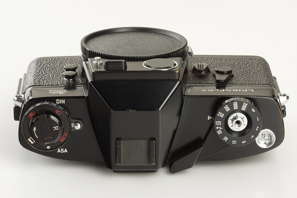 second type black paint Leicaflex with round frame counter, cap, instruction book, Service Card and maker's box with matching number