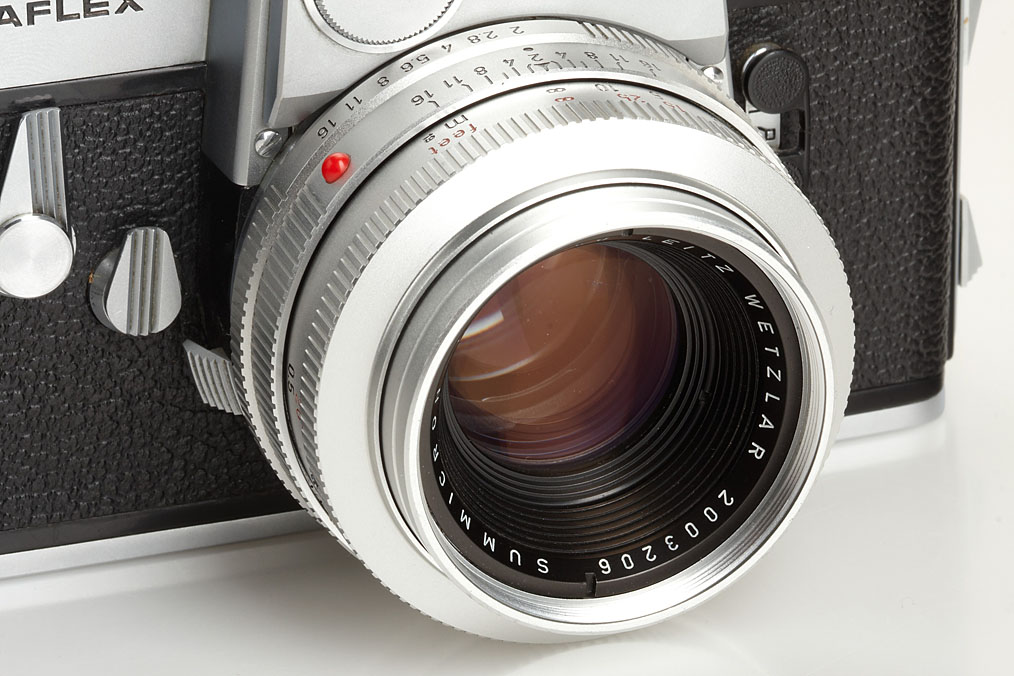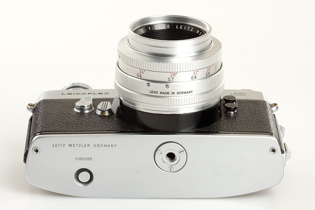 very early Leicaflex (no.200) with pie shaped and black frame counter, all original early features, in fine and perfect working condition, small dent on prism, with rare chrome 1-cam Summicron-R 2/50mm no.2003206