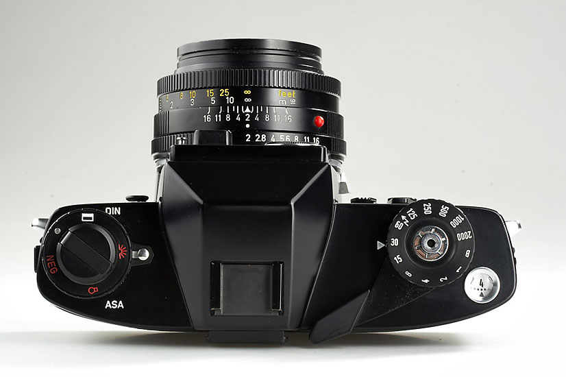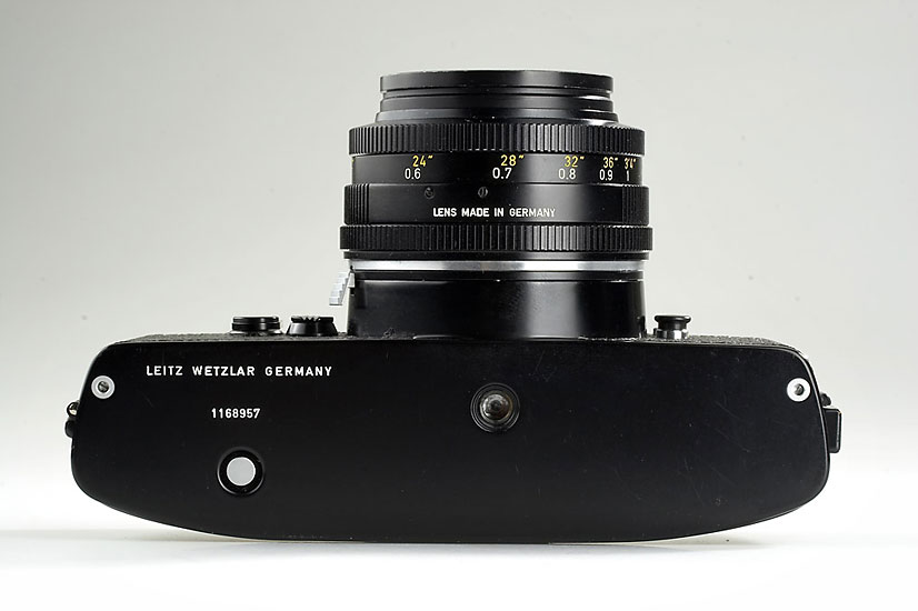 Mark II, second type black paint Leicaflex with circular frame counter, mint and matching Summicron-R 2/50mm no.2224240 with hood, cap, the camera is apart from a tiny almost invisible depression on the prism in as good as new original condition
