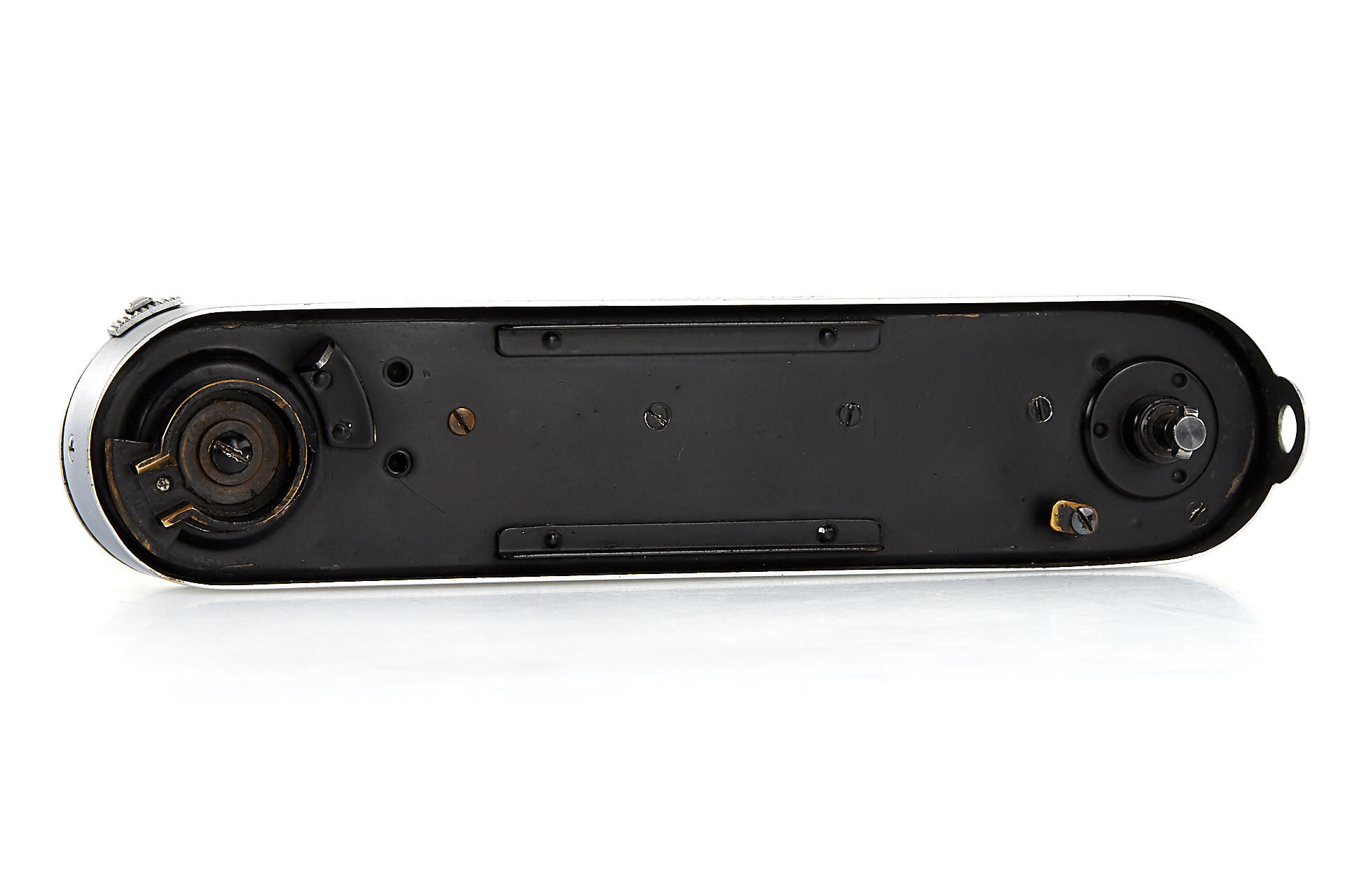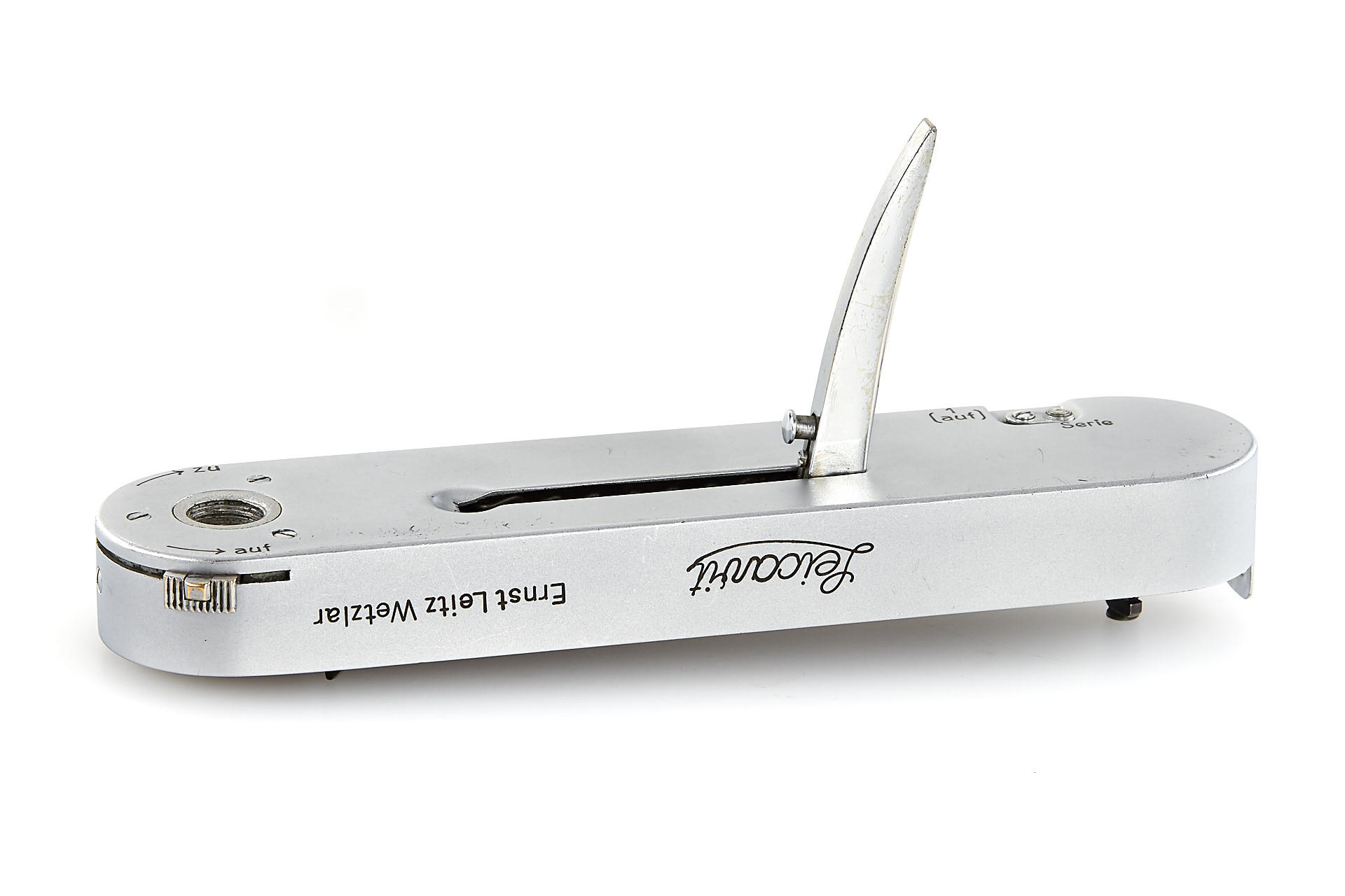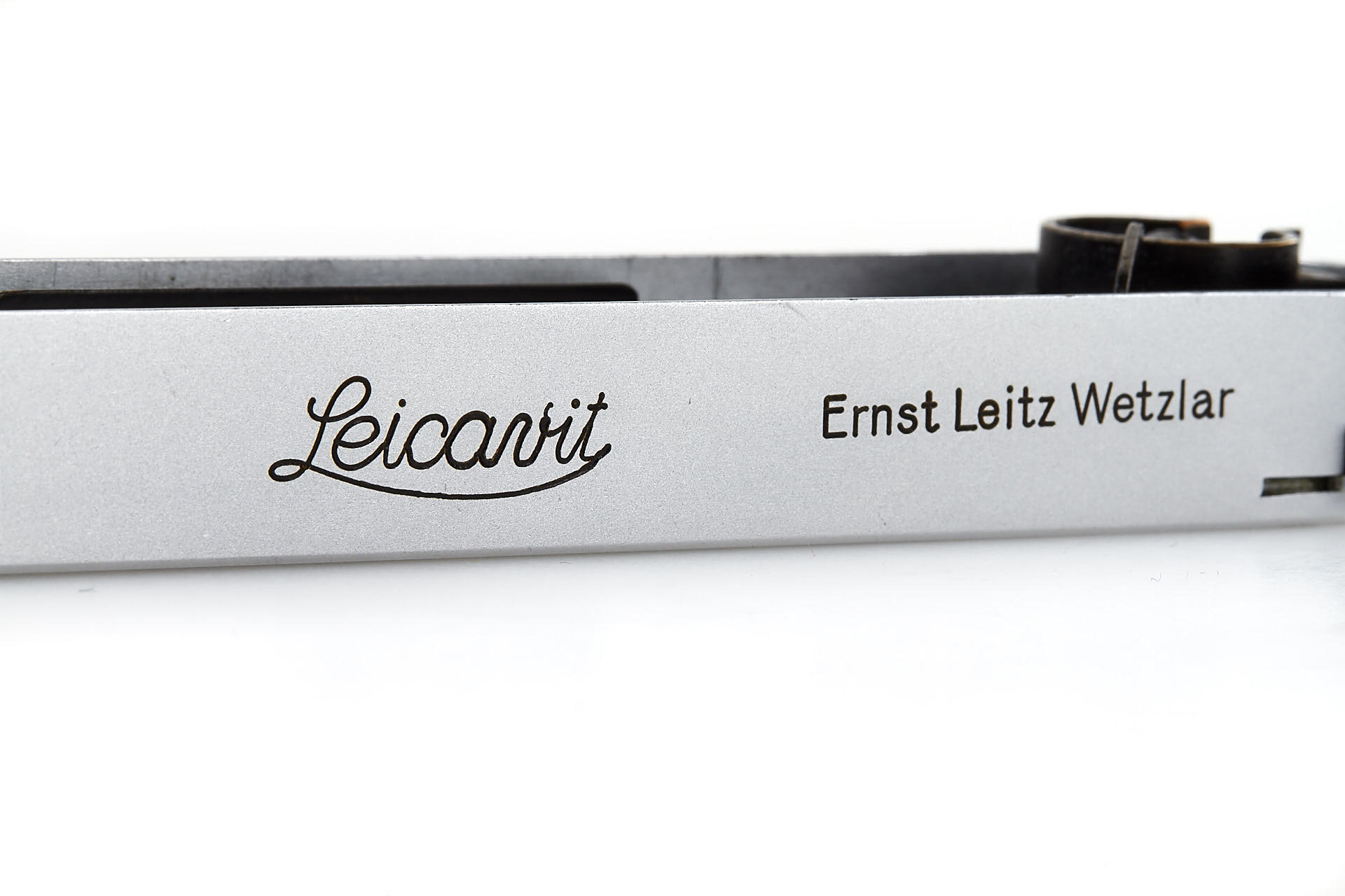 The Leicavit baseplate rapid winder was developed during the early 1950s. The example offered is a prototype, showing several differences to the pre-series models released for the press in 1951: shooting mode switch engraved '1(auf)/Serie' instead of the usual 'Einzel(auf)/Serie', base plate removal lever equipped with releasing knob (a feature unseen on any other base plate accessories), different engraving style on the front etc., it is in very good condition and working order, an unique opportunity for every Leica collector!