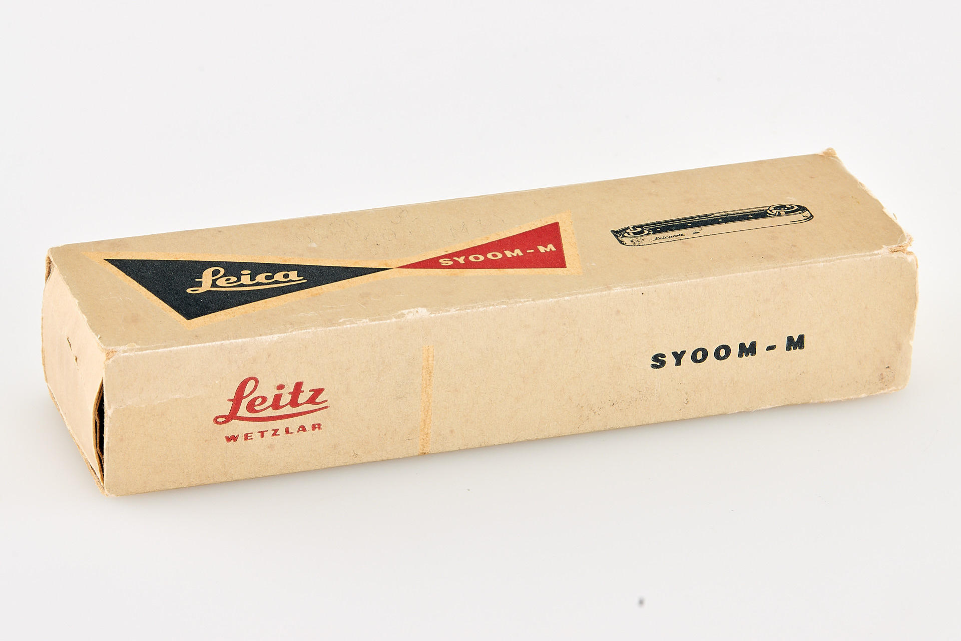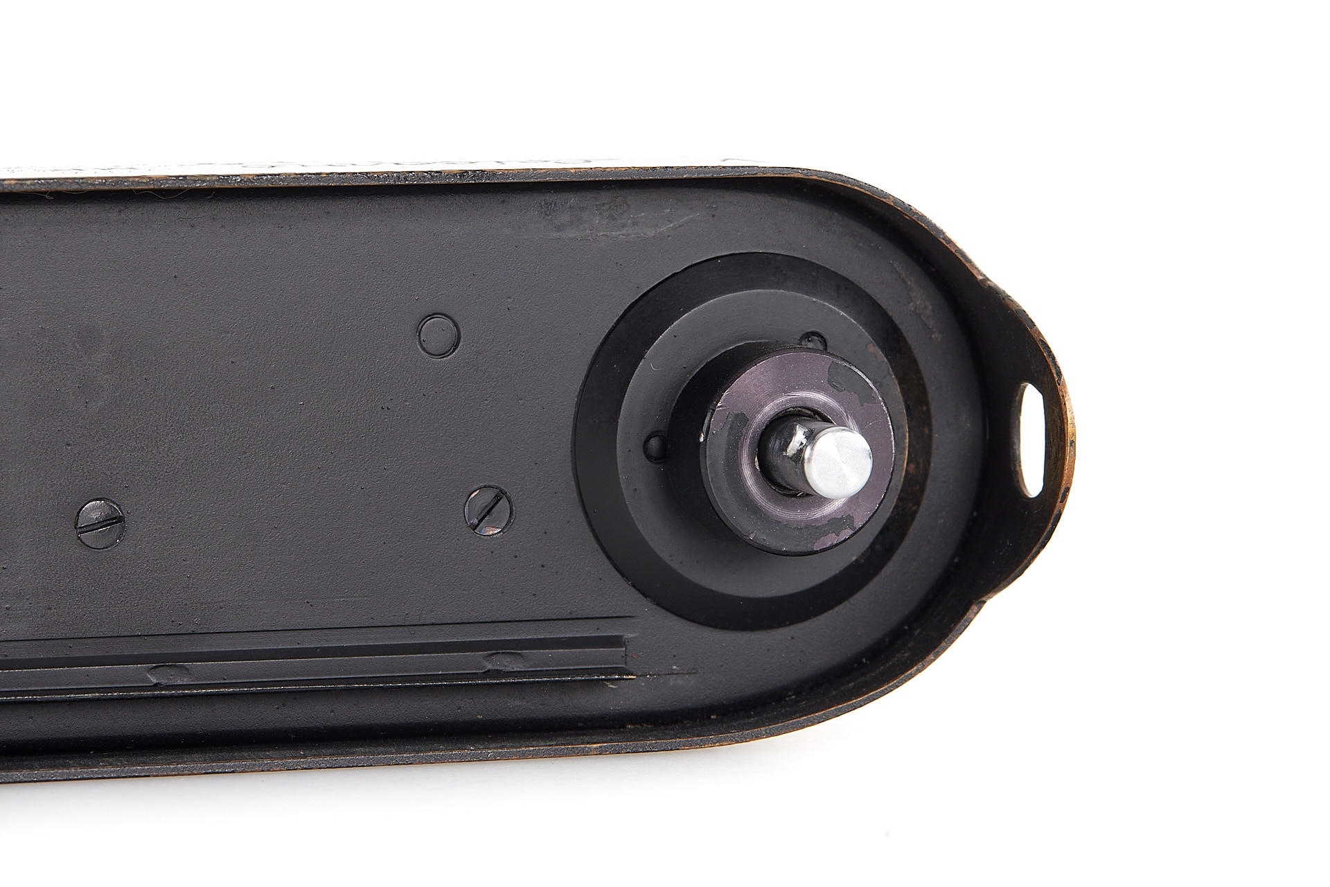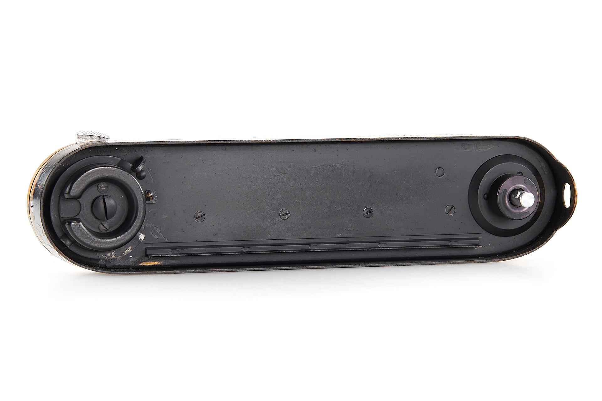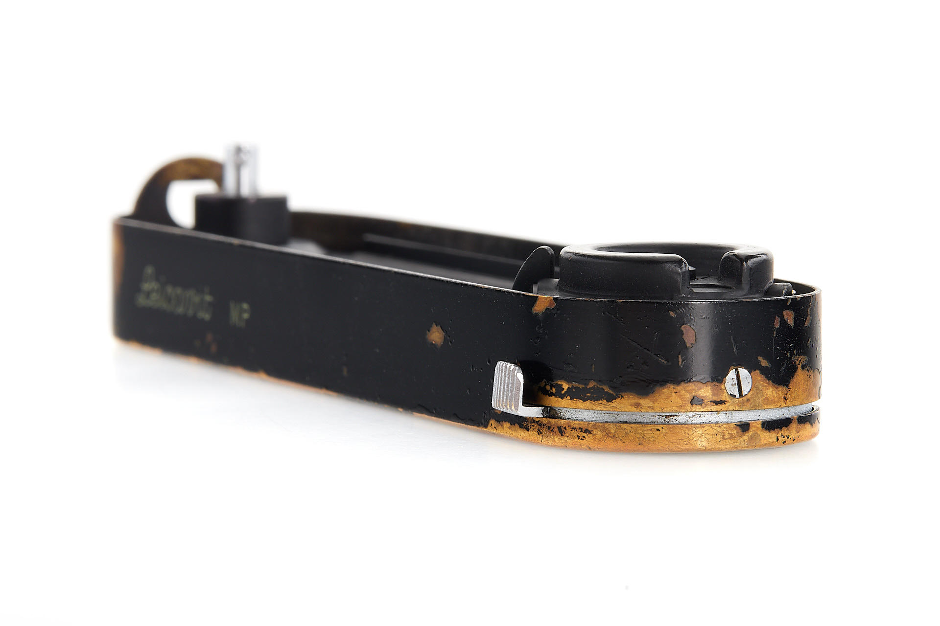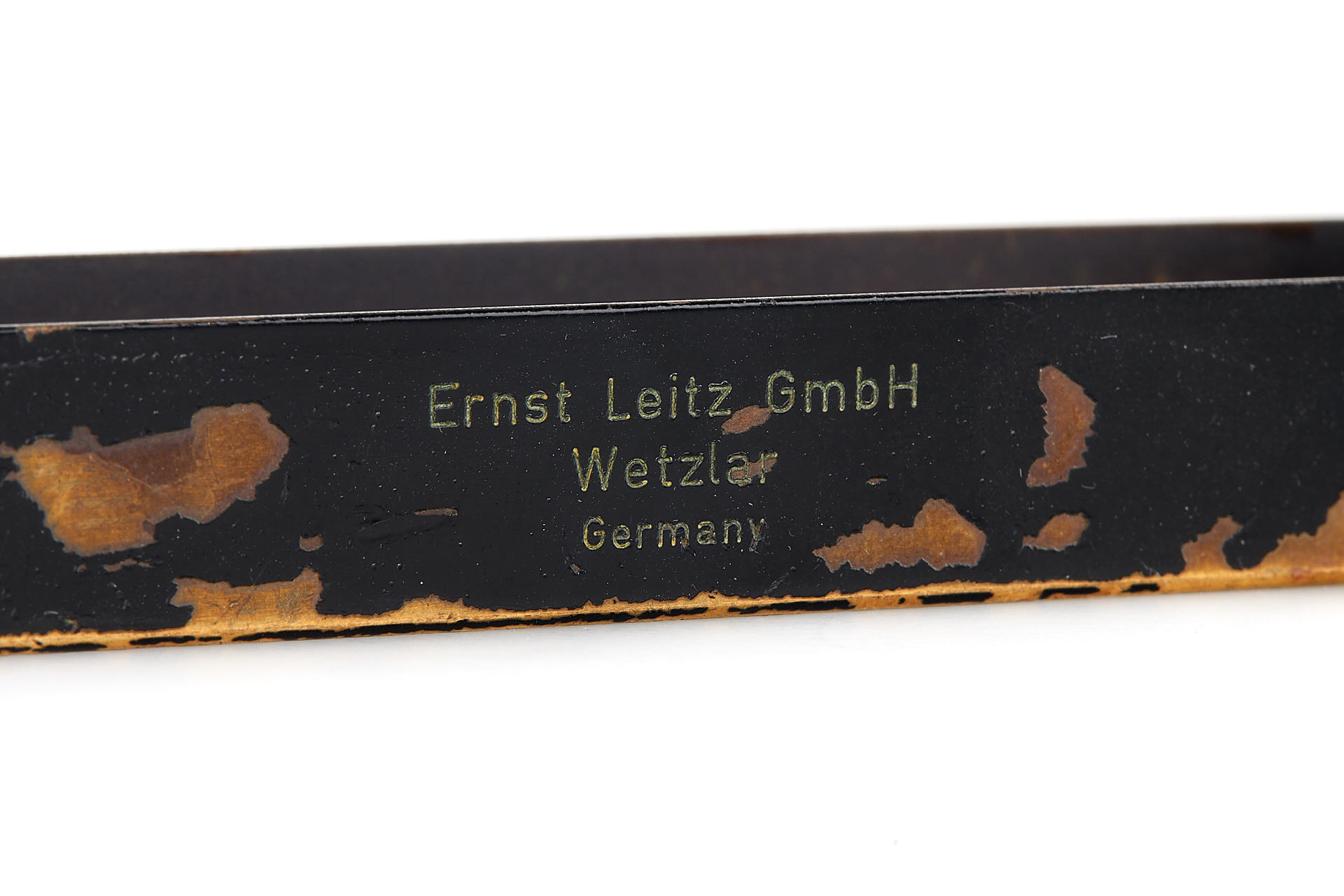 sought-after, the first version Leicavit MP in the black paint finish, in good working condition with a beautiful patina of use and small bubbles appearing in paint, with maker's box and including a German Leica MP brochure from 1956, a perfect opportunity for someone looking to complete a black paint MP or M2 outfit