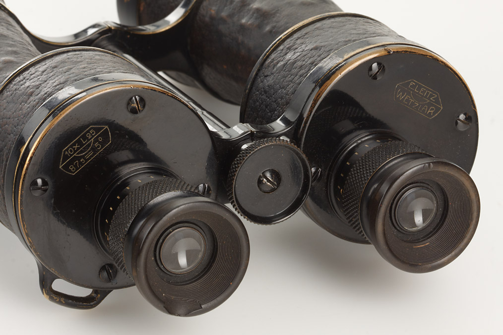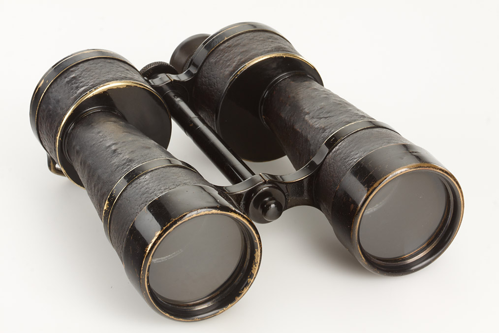 military binoculars, Sichtfeld 87.5m/1000m, 5°, brass, black paint finish, clean optics