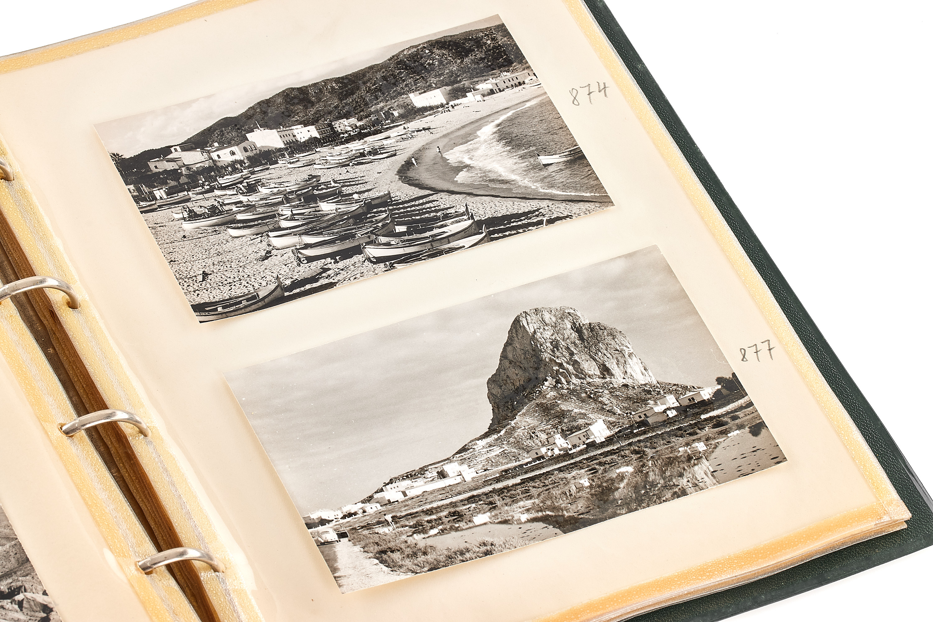 A collection of over 160 high-quality vintage prints, used by the Leitz marketing department in the 1930s for various publications, brochures, and advertising materials. Print sizes range from 8×13 cm to 10×15 cm, featuring various motifs. All prints are mounted on original Leitz paper and housed in a vintage folder.