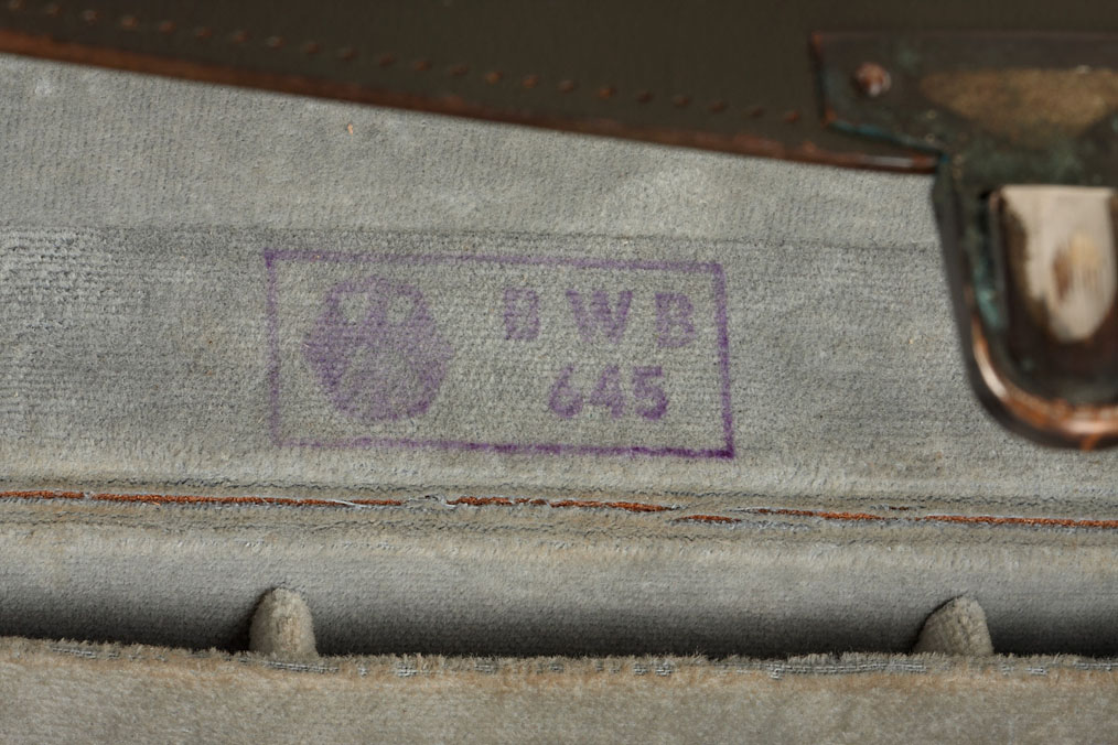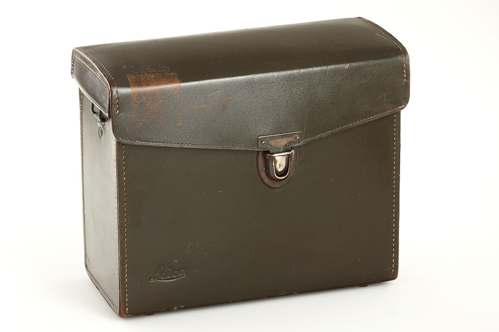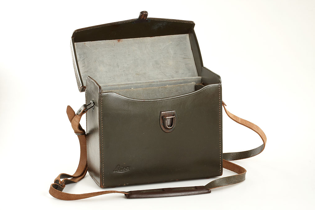 very rare small green outfit case for camera with two lenses and some filters, marked: Bundeseigentum 12-133-4278 on rear and BWB 645 inside, in good condition