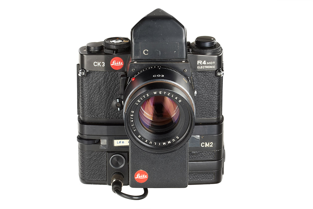 Leitz has been the first in the world to develop an auto-focus prototype with the Correphot in 1976, adapted to the Leicaflex SL2 and presented to the Photokina. A secondary mirror deviated a part of rays to a mobile pattern (mechanic system !) for an electronic evaluation of the MAP. Correfot means "maximal 'correlation' between two elementary light rays passing by the extreme edges of the ward of the lens and stemming of a same point of the subject. This unique and historically very important collection of 5 cameras demonstrate these developments between 1976 and 1982: (1) SL2 CK1 with attached control unit for auto-focus, (2) SL2 CK1 with attached control unit for auto-focus, (3) Leica (SL2) prototype, (4) R4 MOT prototype with special CORREFOT prism - quite similar to the Nikon F3 AF (Nikon has repurchased to Leitz rights of utilization of the system Correfot), (5) R4 MOT CK3 - the most complete camera with auto-focus prototype lens Summilux 1.4/50mm (unnumbered) and CM2 control unit - all these camera were also used for demonstration during Photokina 1976 - 1980, the collection includes a note by Walter Bletz (Leica electronic development department) to Klaus Dieter Schaefer (Head of construction department) regarding the development, also original color slides showing the cameras on display at Photokina