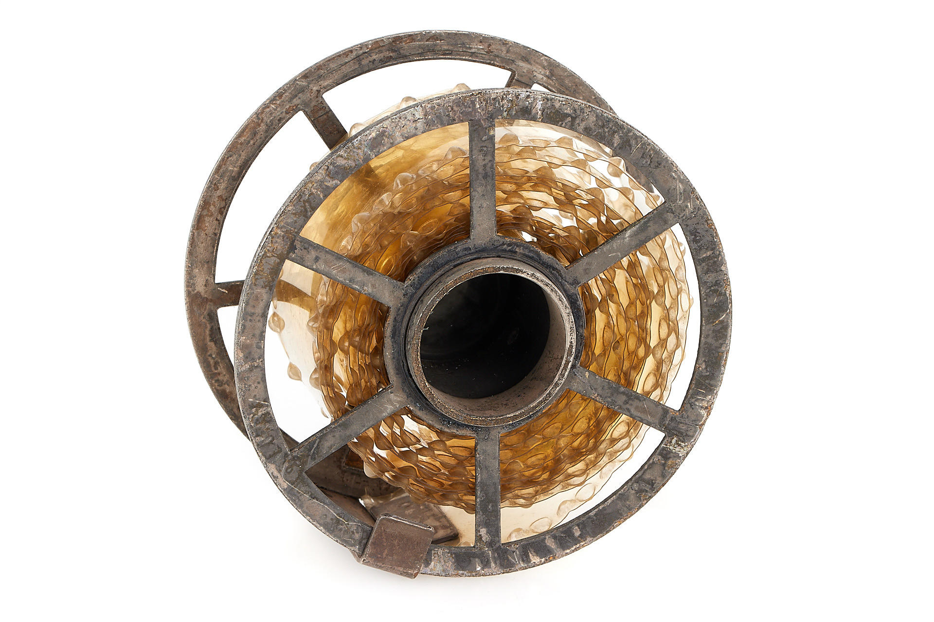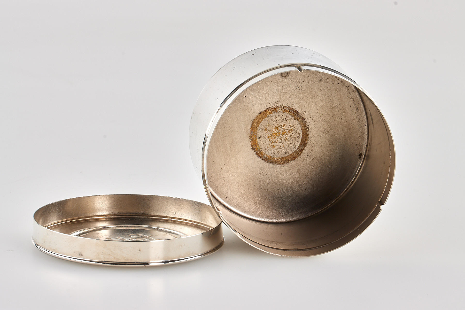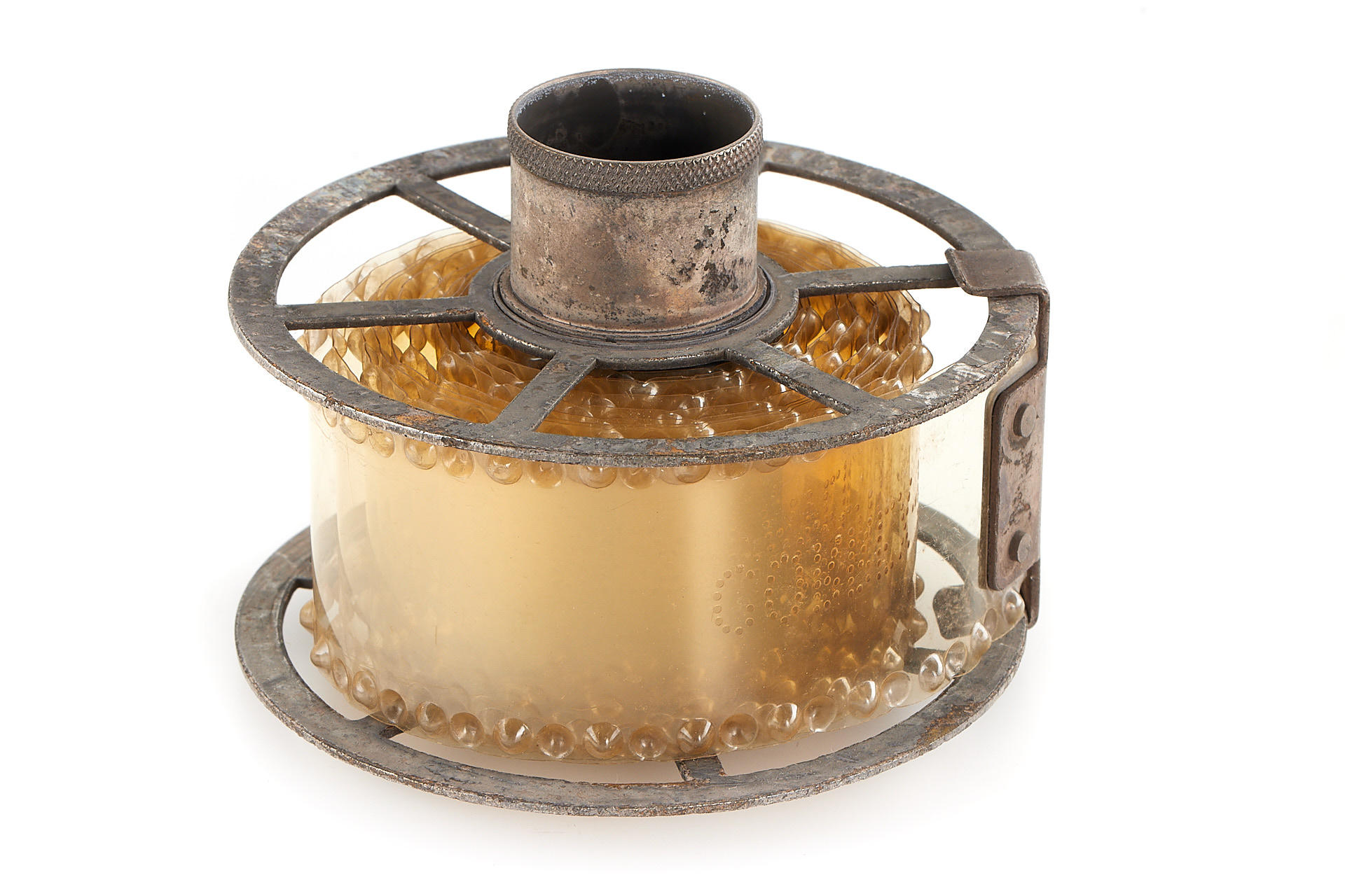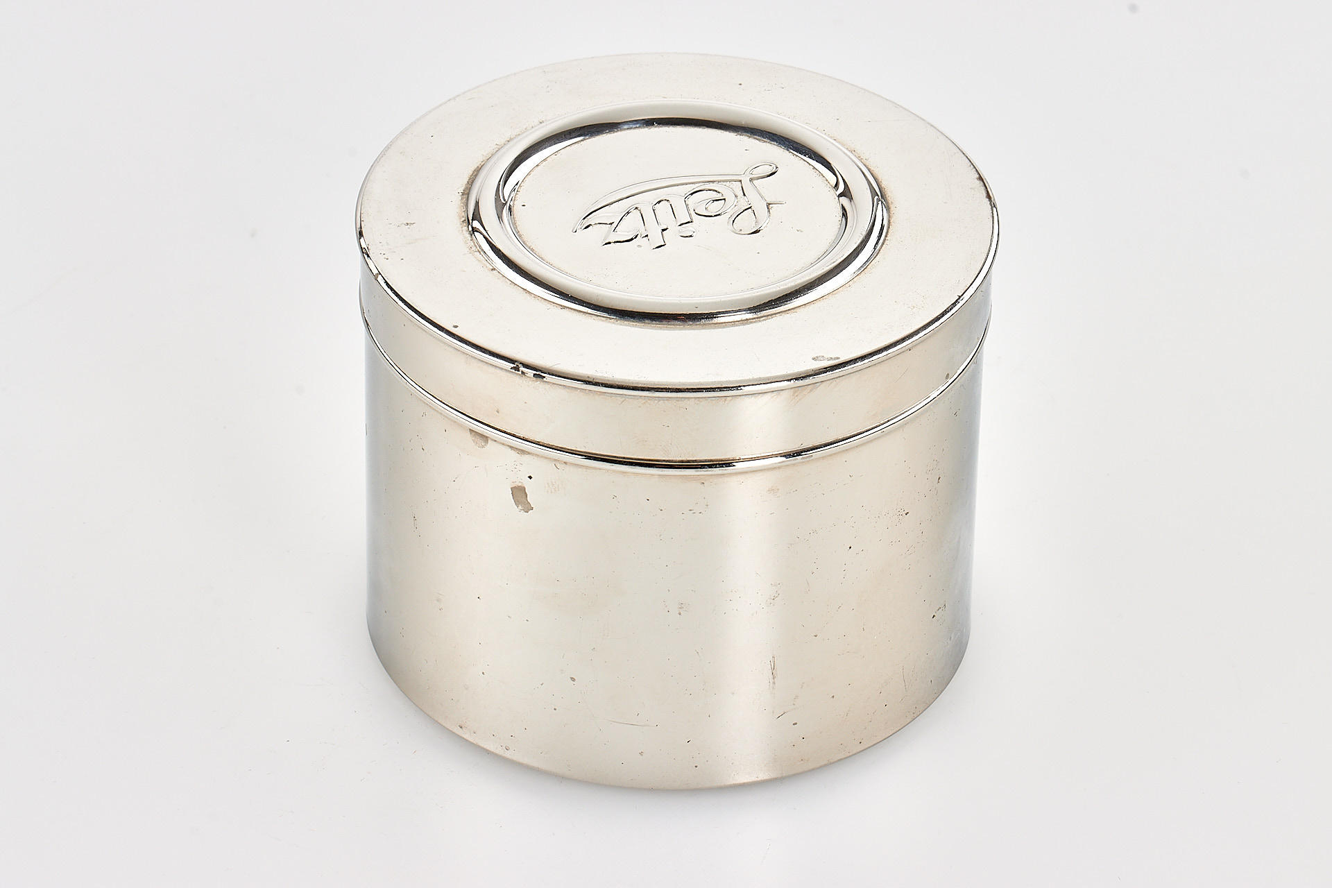 rare and early developing tank for 35mm film, nickel finish, in good condition, complete with reel