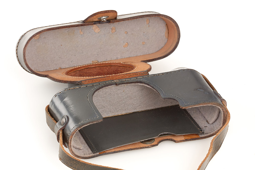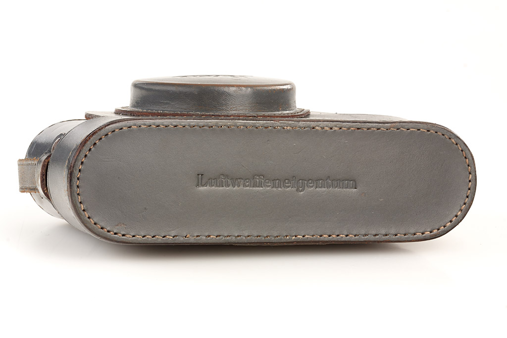 grey everready case for Leica IIIc, stamped 'Luftwaffeneigentum'